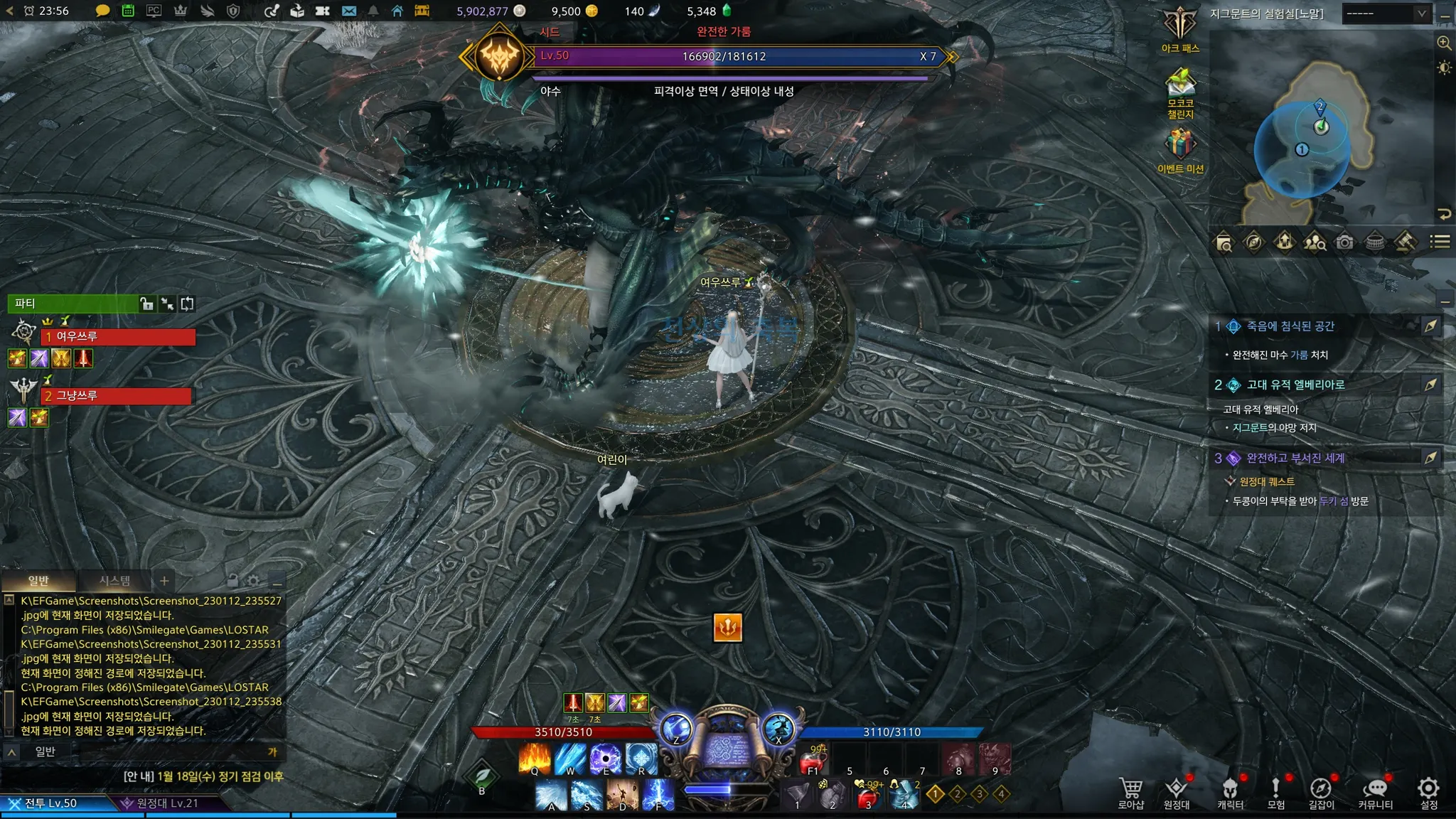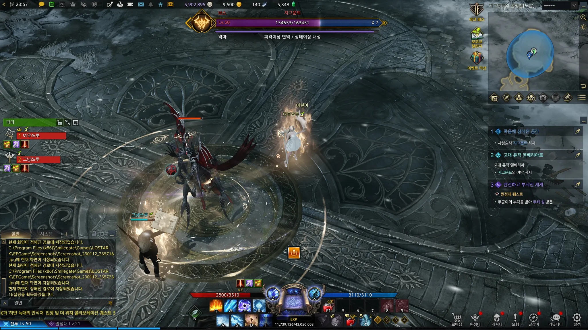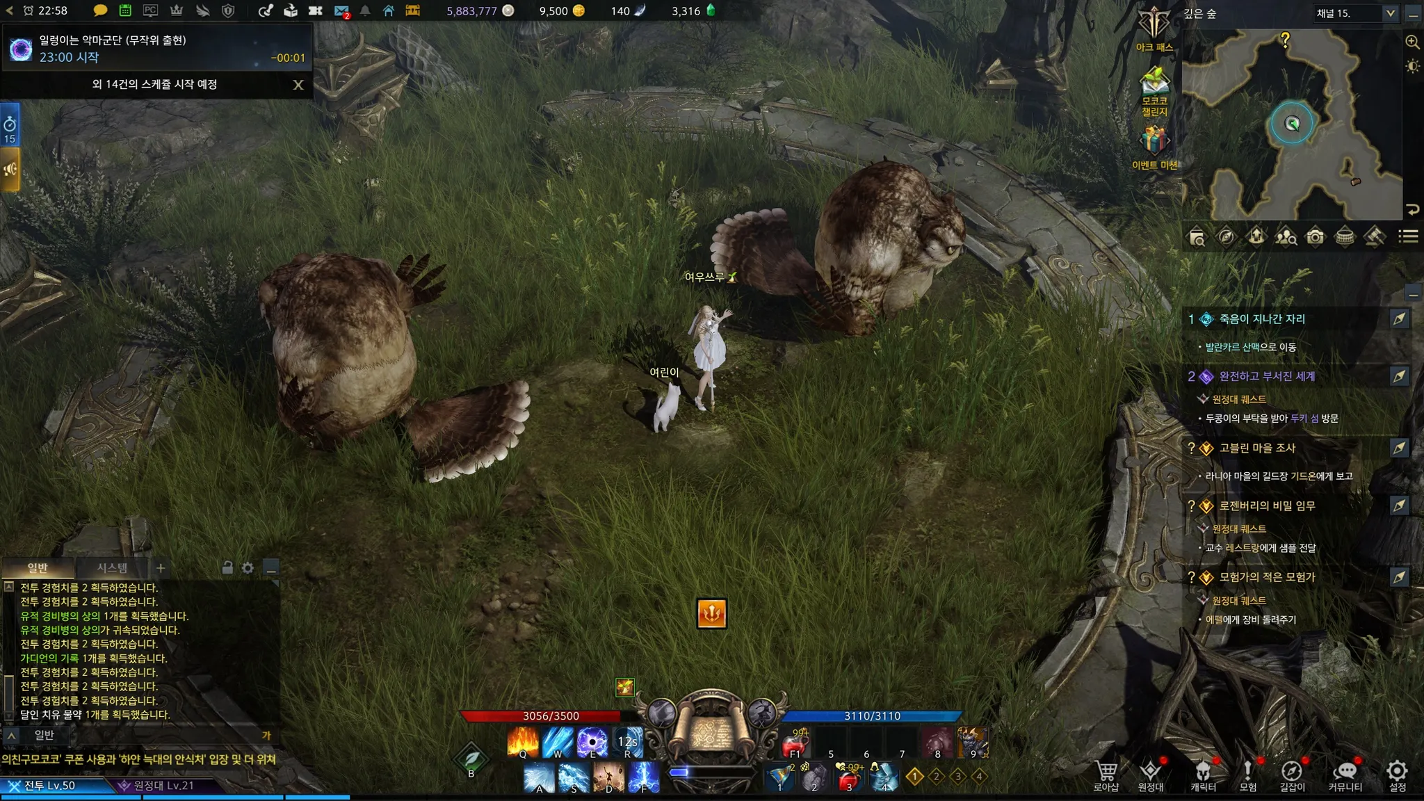 오늘의 게임기록 * 파르나 숲  발란카르 산맥 * 지그문트 처치 * 에버그레이스 만남 * 베른 북부 끝 * 쇄빙선 바크스툼 얻음 * 첫 각인 * 첫 카오스 던전 * 전투 Lv.50.28 * 아이템 Lv.460