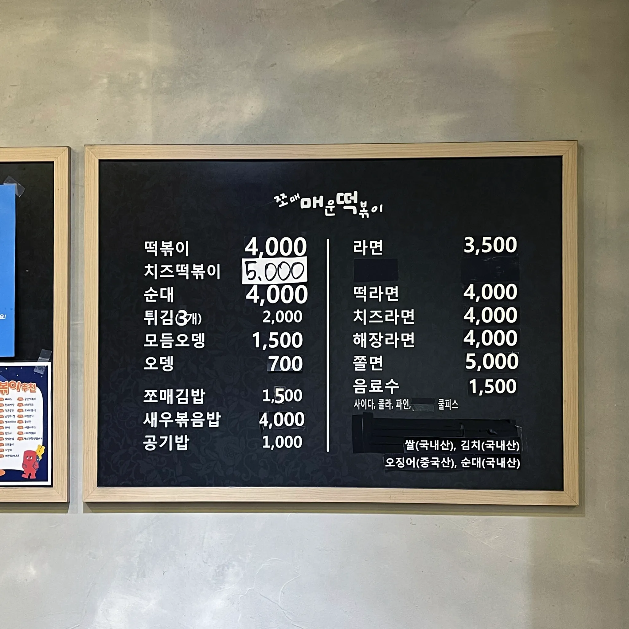 예전과 비교해서 메뉴 변경은 없었다. 가격만 조금조금 오른 듯. 하지만,, 그래도 싸. 배달 떡볶이 2만원 이상에 육박하는 요즘 시대에 정말 착한 가격.