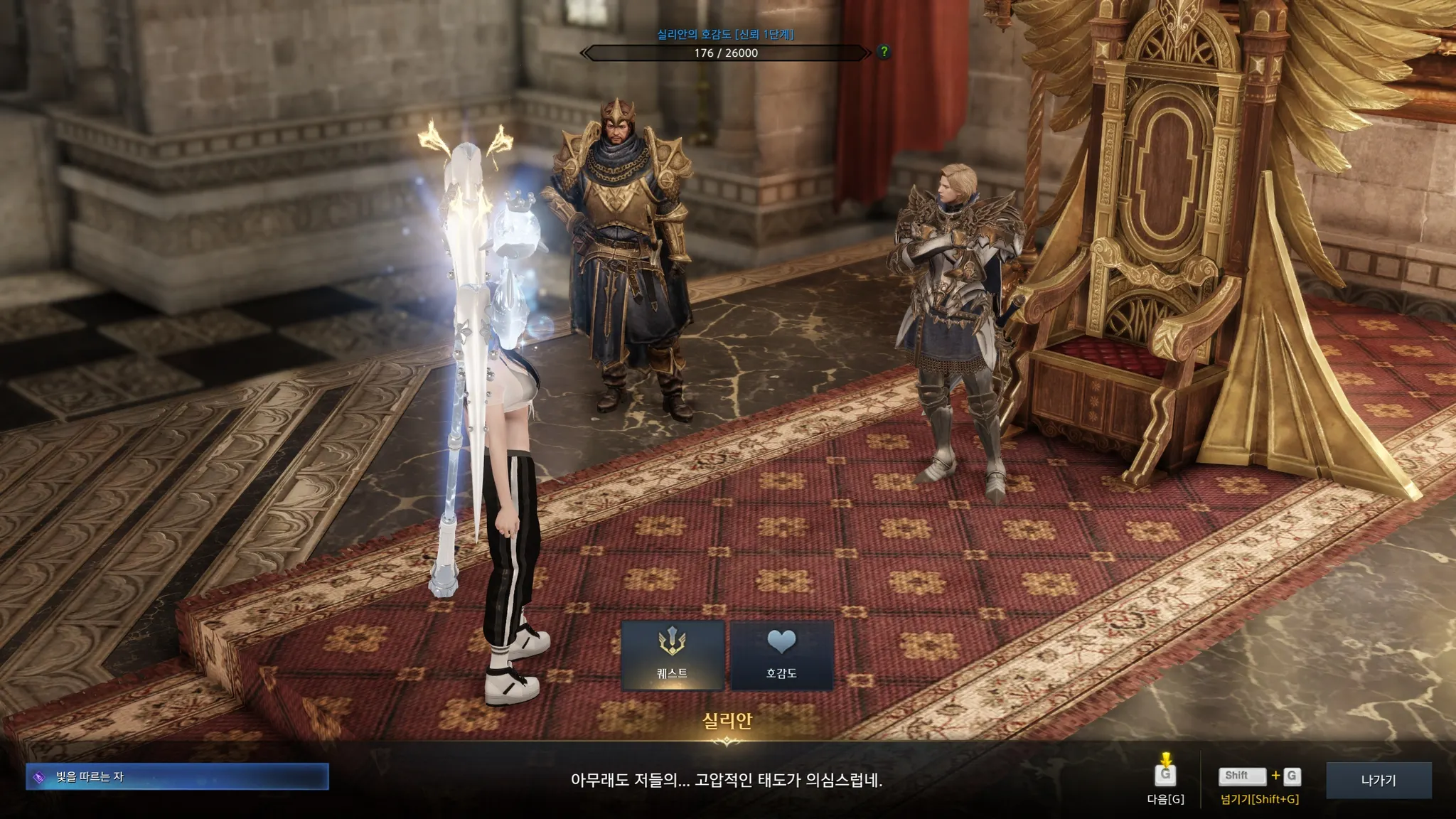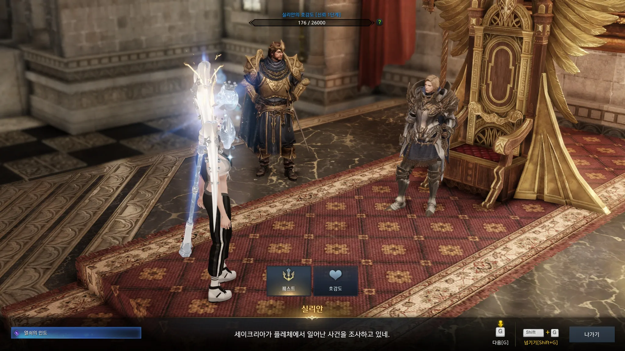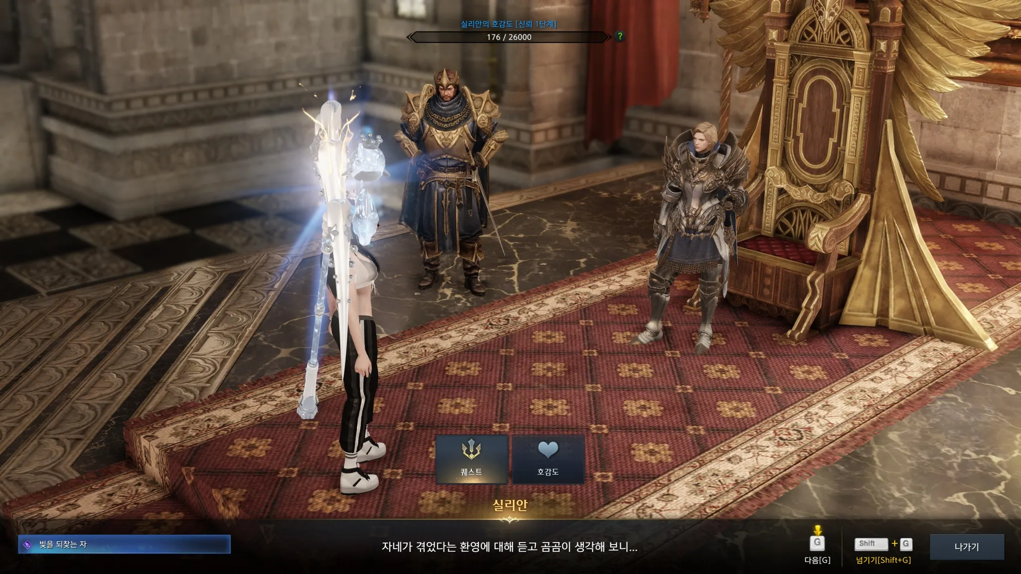 실리안이랑 이야기하던 중에 갑자기 환청이 들리고 어질어질해서 왕의 기사 침실로 쉬러갔는데!