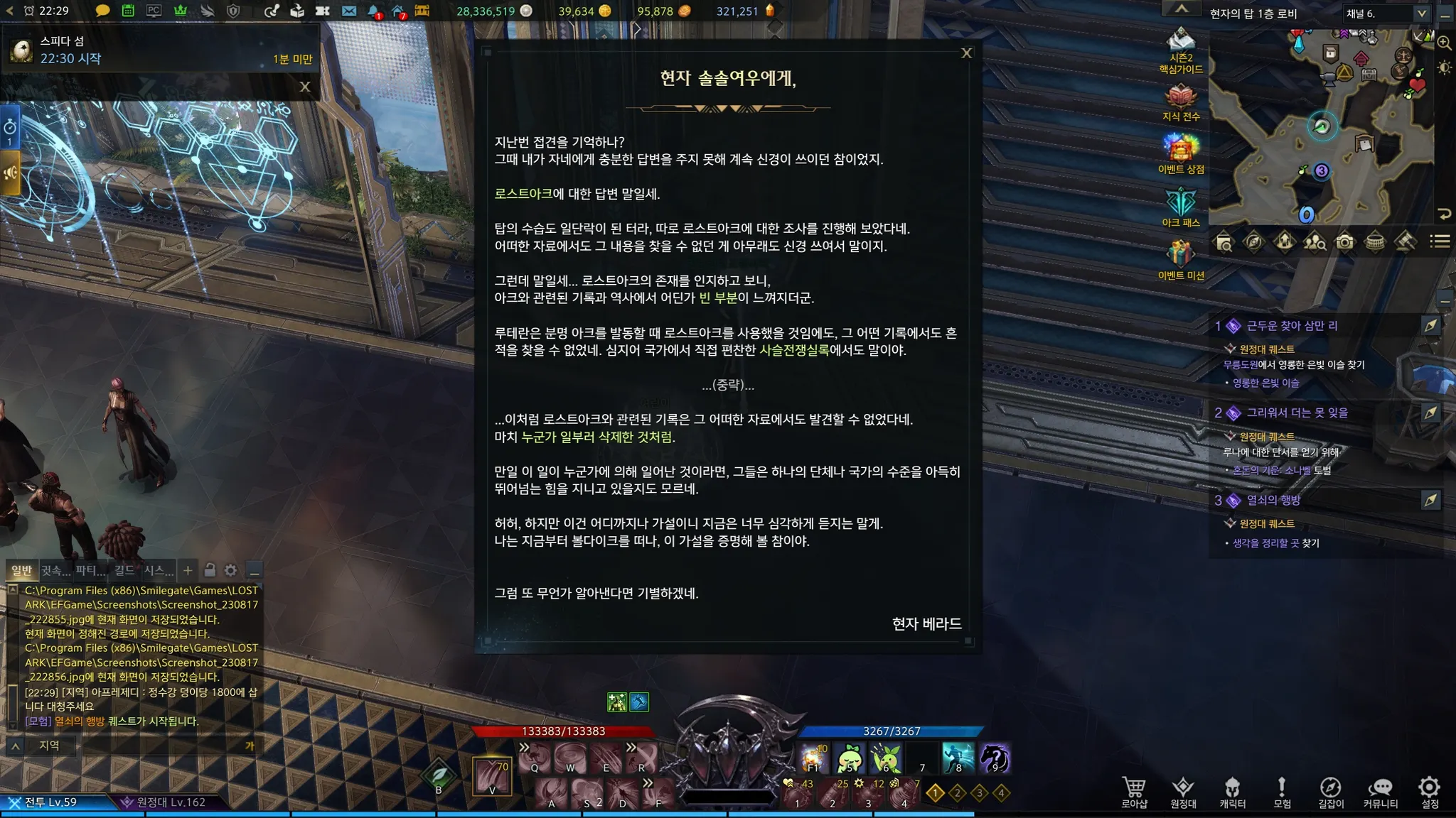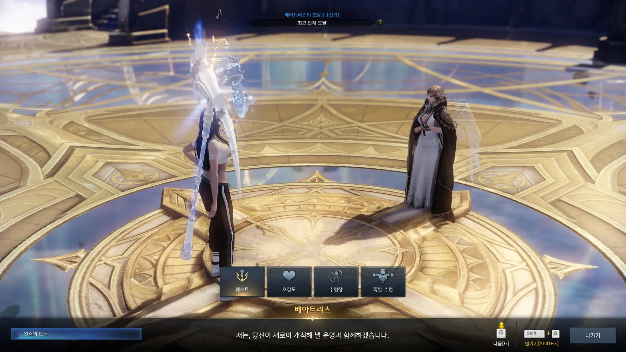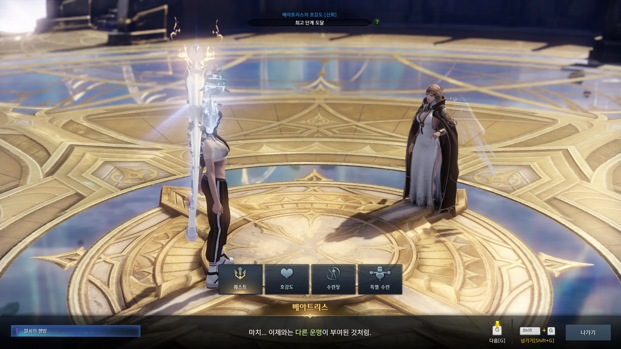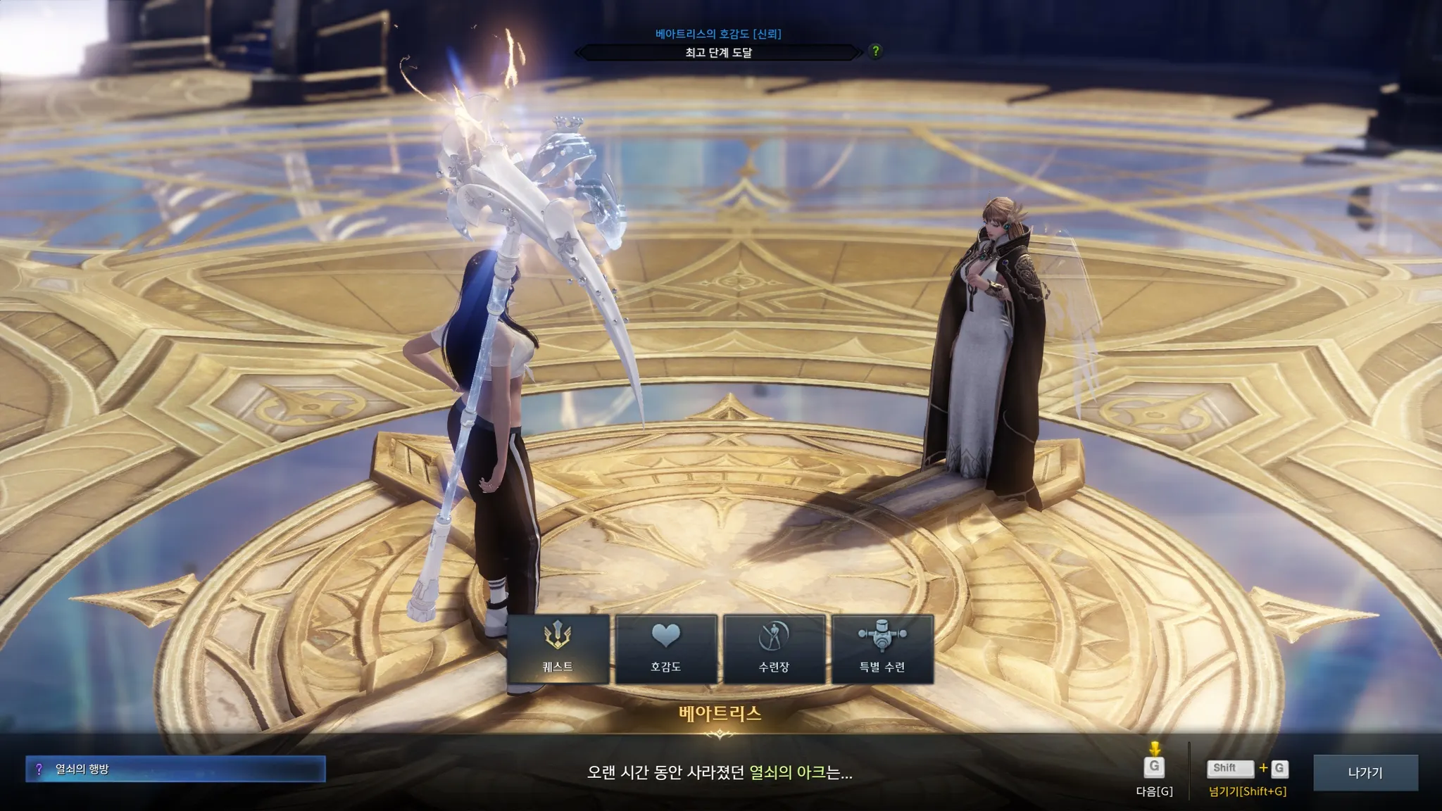 베아트리스에게 가서 움벨라에서 본 걸 전해주고 로스트아크에 대해 이야기 나누는 중. 로스트아크는 이전과는 달리 기운조차 찾기 어려워진 상태라고 한다.