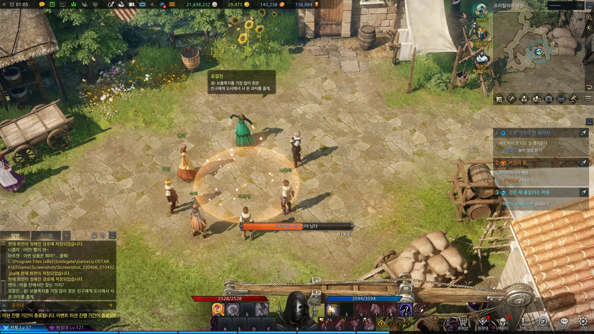 실리안이랑 같이 영혼석 하나씩 나눠들고 프리힐리아 마을 가는 중. 추억팔이하는 실리안. 처음 로아할 때 실리안이랑 같이 다닐 때는 나 진짜 완전 모코코였는데! 정말 새록새록하다.