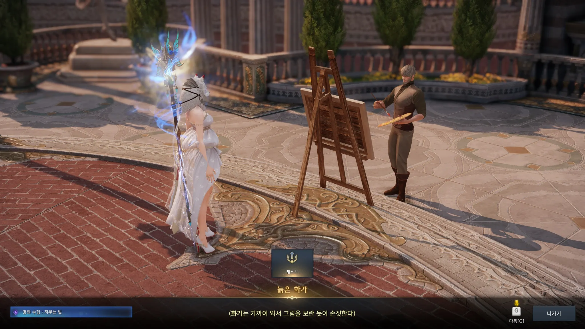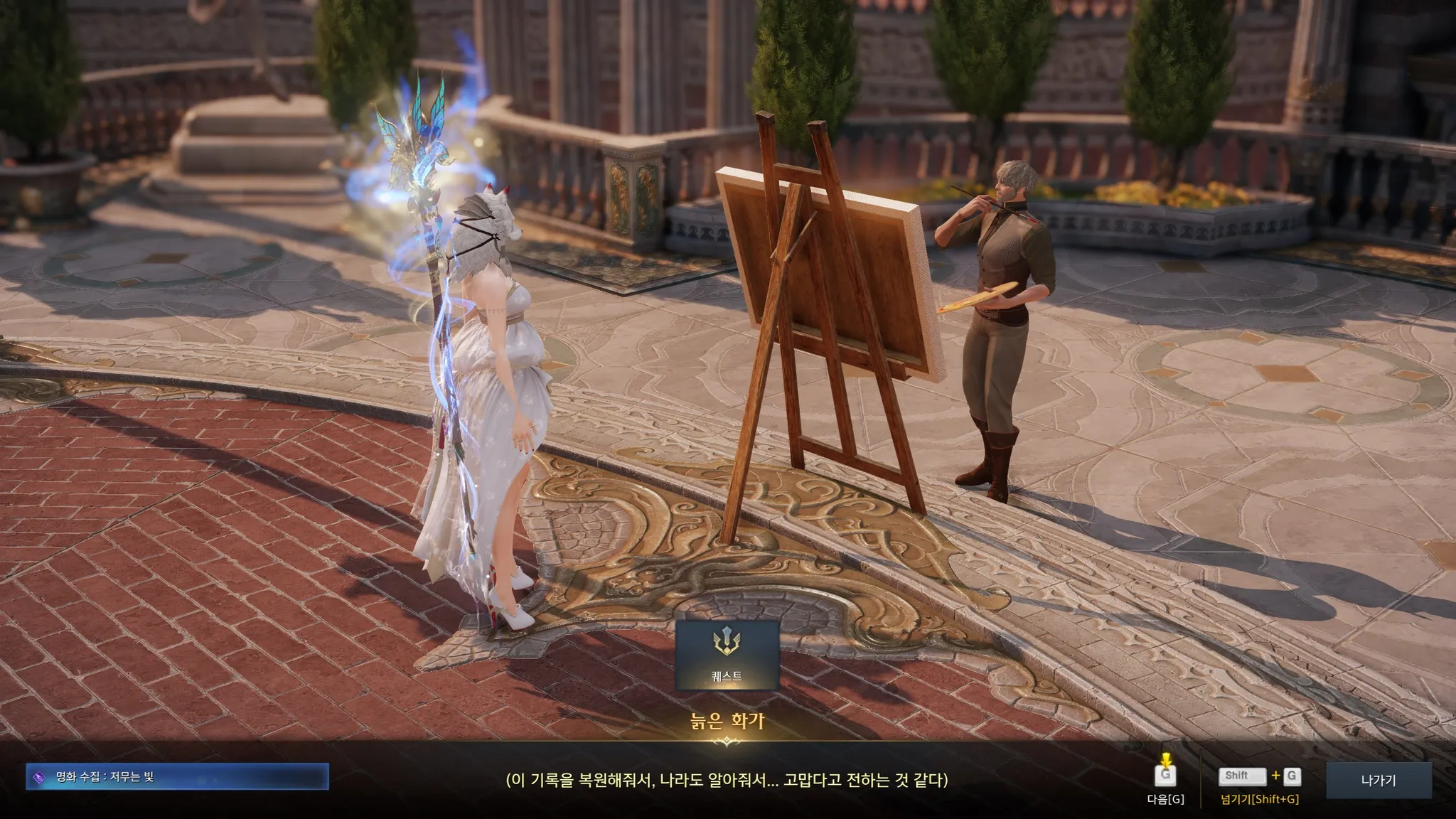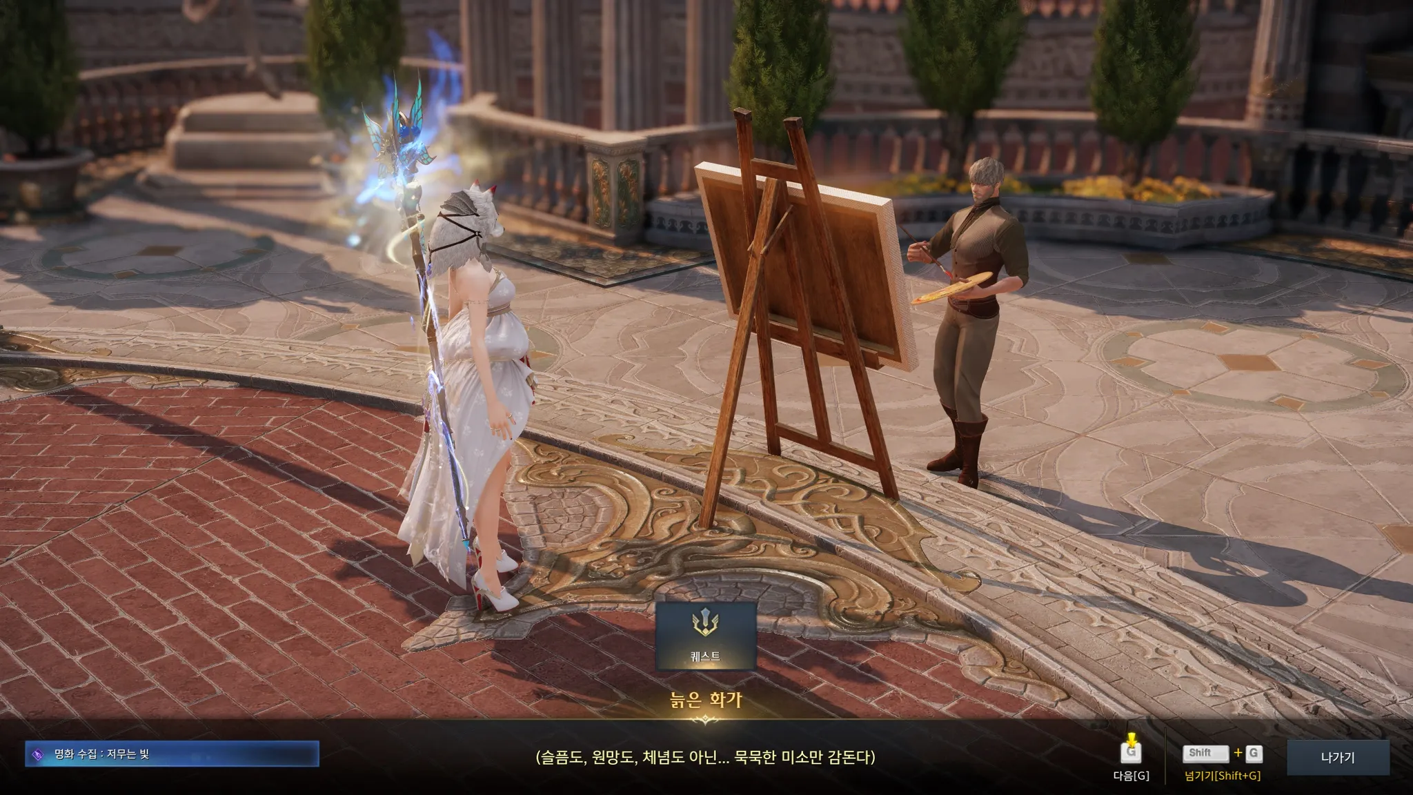플레체 메인 스토리 끝나니 여기저기에 떠 있는 노란색 느낌표들! 스토리랑 퀘스트 좋아하는 나에게는 너무 반가운 노란색 느낌표ㅎㅎㅎㅎ 과거에 세이크리아에게 혀가 잘린 늙은 화가가 조금 마음에 걸렸었는데, 다행히도 관련 퀘스트가 있었다.