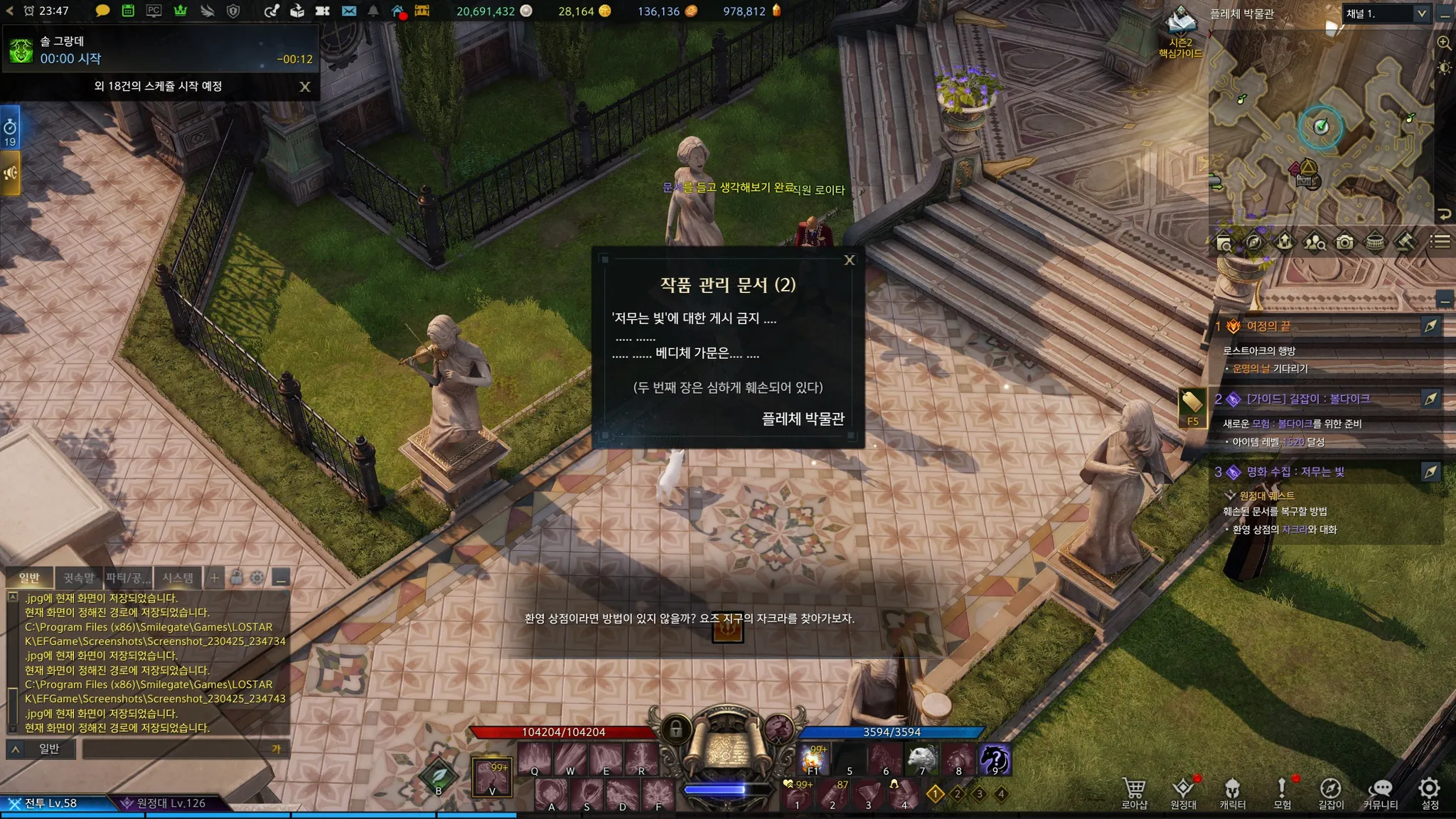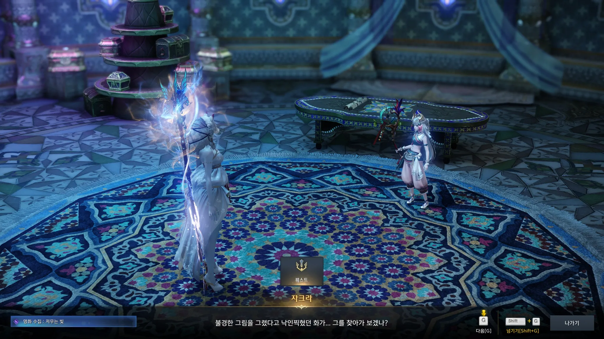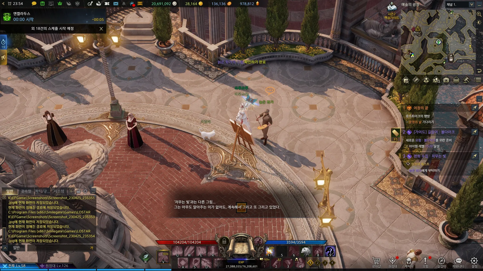 플레체 메인 스토리 끝나니 여기저기에 떠 있는 노란색 느낌표들! 스토리랑 퀘스트 좋아하는 나에게는 너무 반가운 노란색 느낌표ㅎㅎㅎㅎ 과거에 세이크리아에게 혀가 잘린 늙은 화가가 조금 마음에 걸렸었는데, 다행히도 관련 퀘스트가 있었다.