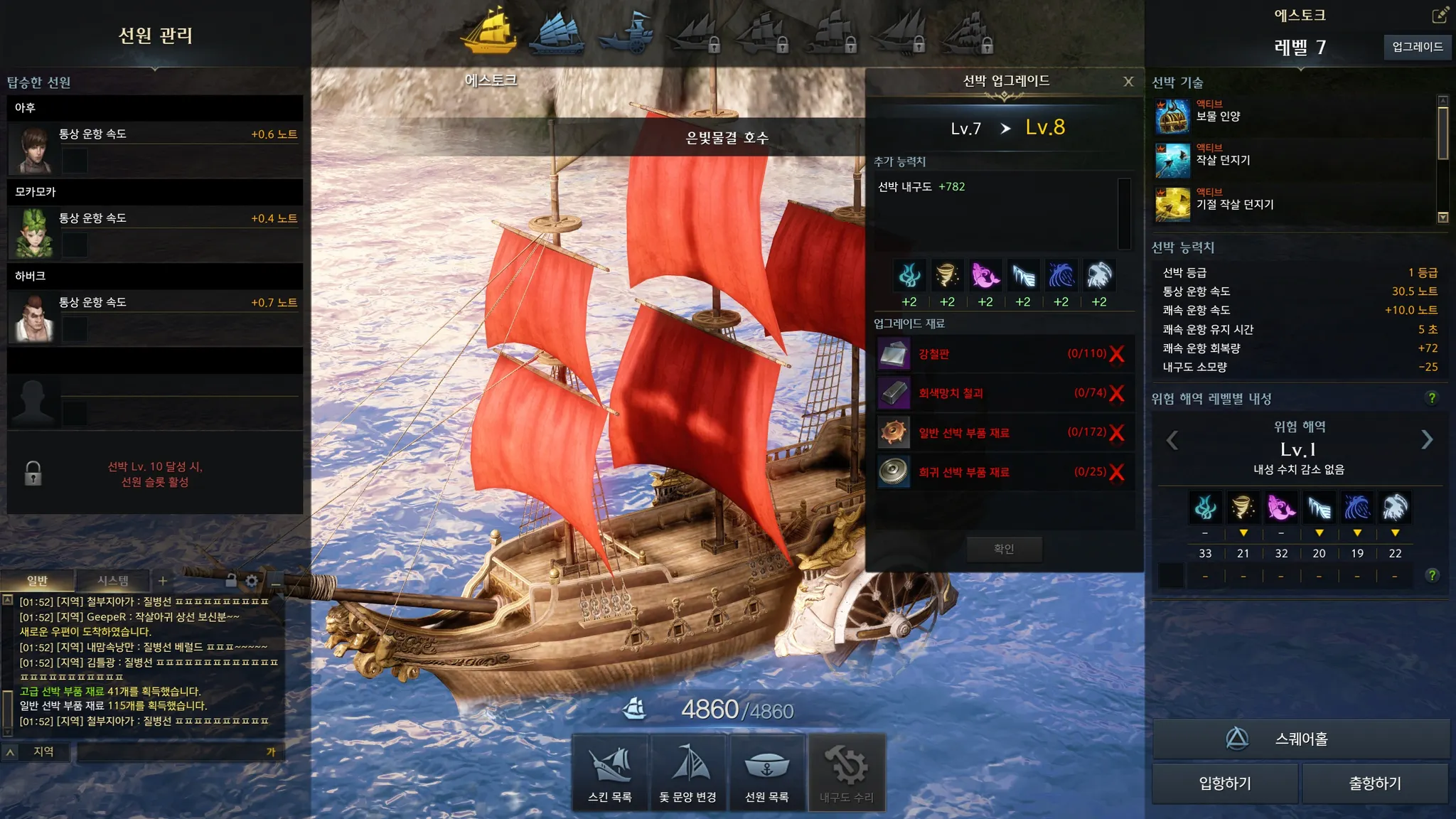 그리고 마찬가지로 미뤄놓았던 선박 업그레이드도 같이 함! 짝꿍이 노란 돈 5000원 줘서(짝꿍 최고🫶🏻) 에스토크 레벨 7 만들었다. 훠어어어얼씬 빨라진 내 배! 다음 목표는 거북이 스킨이다! 하지만 쉽지 않음. 당연함. 섬마 40개 더 모아야함ㅎ