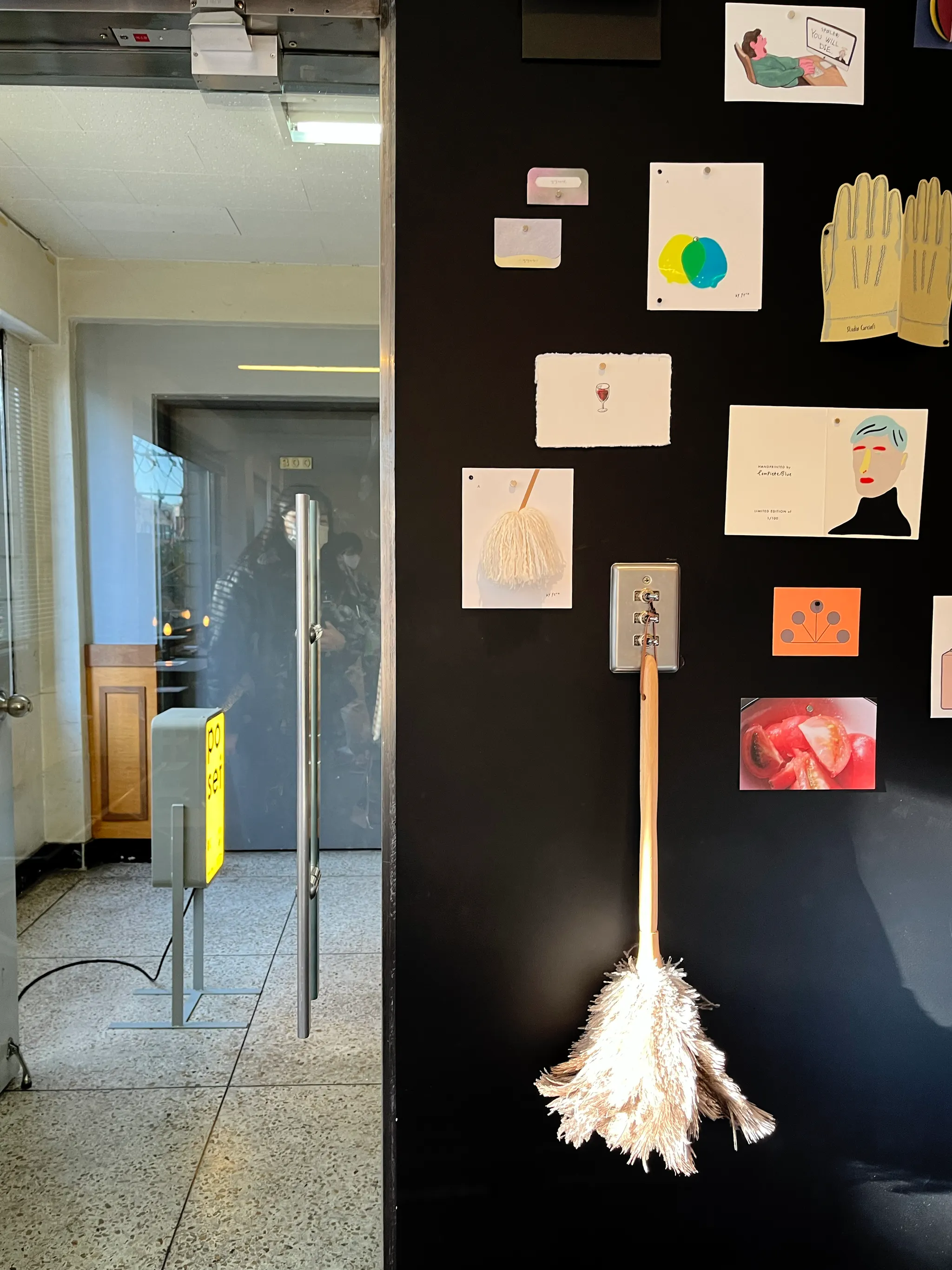 나가는 문에 있던 먼지털이와 먼지털이 위의 미니 털뭉치.