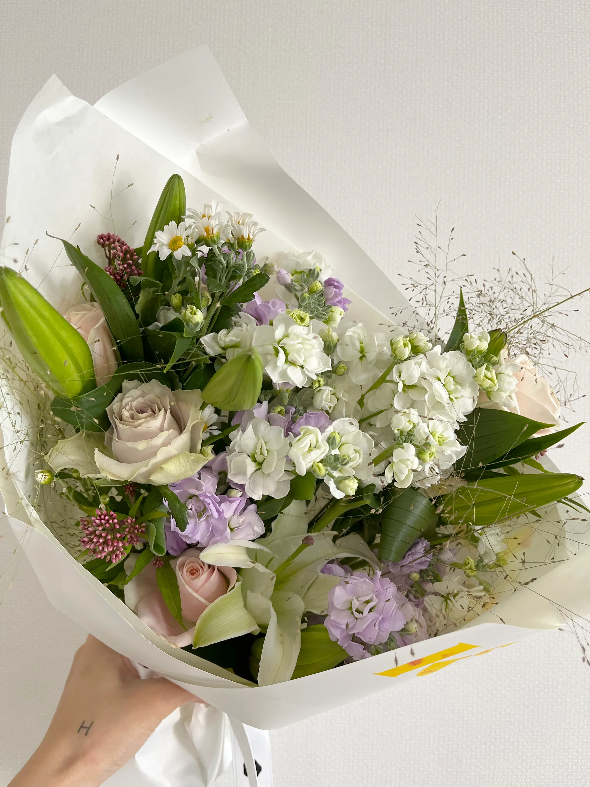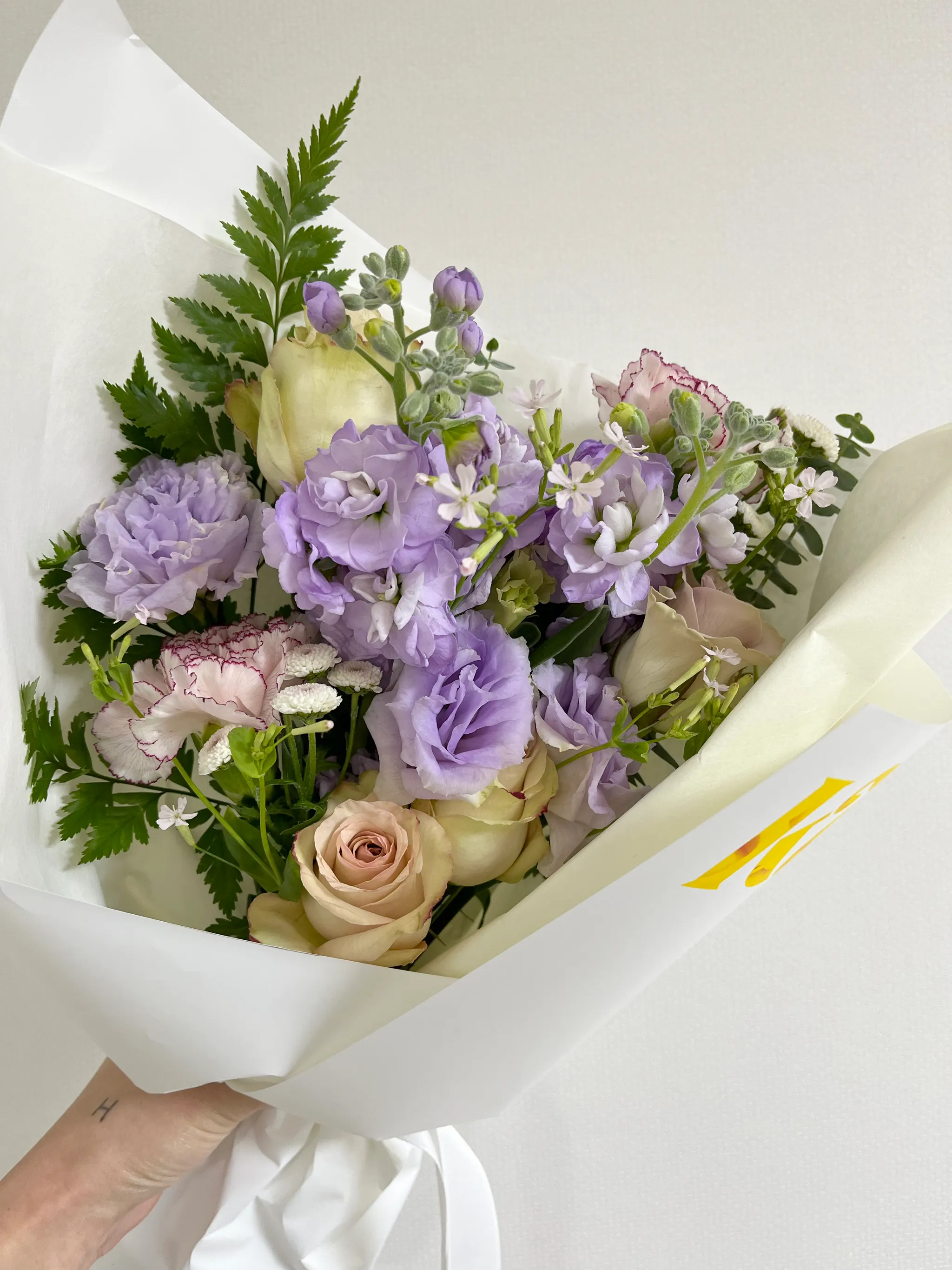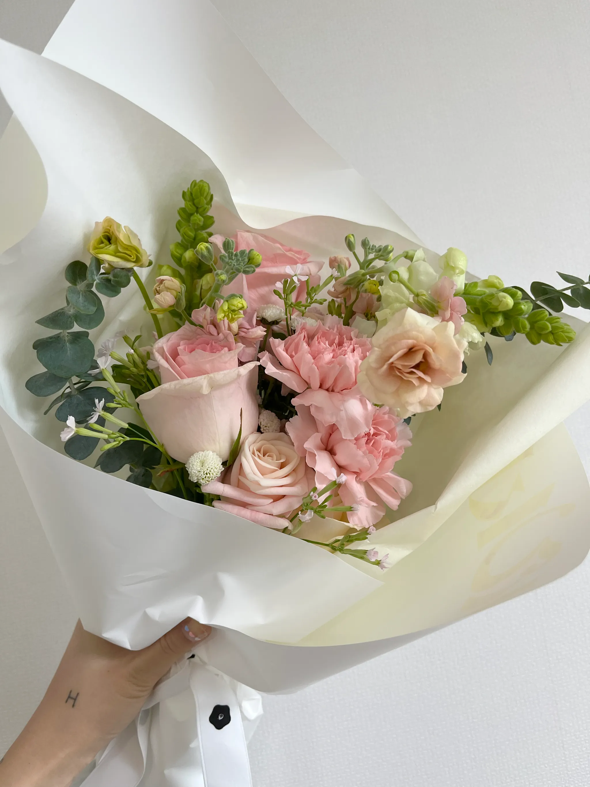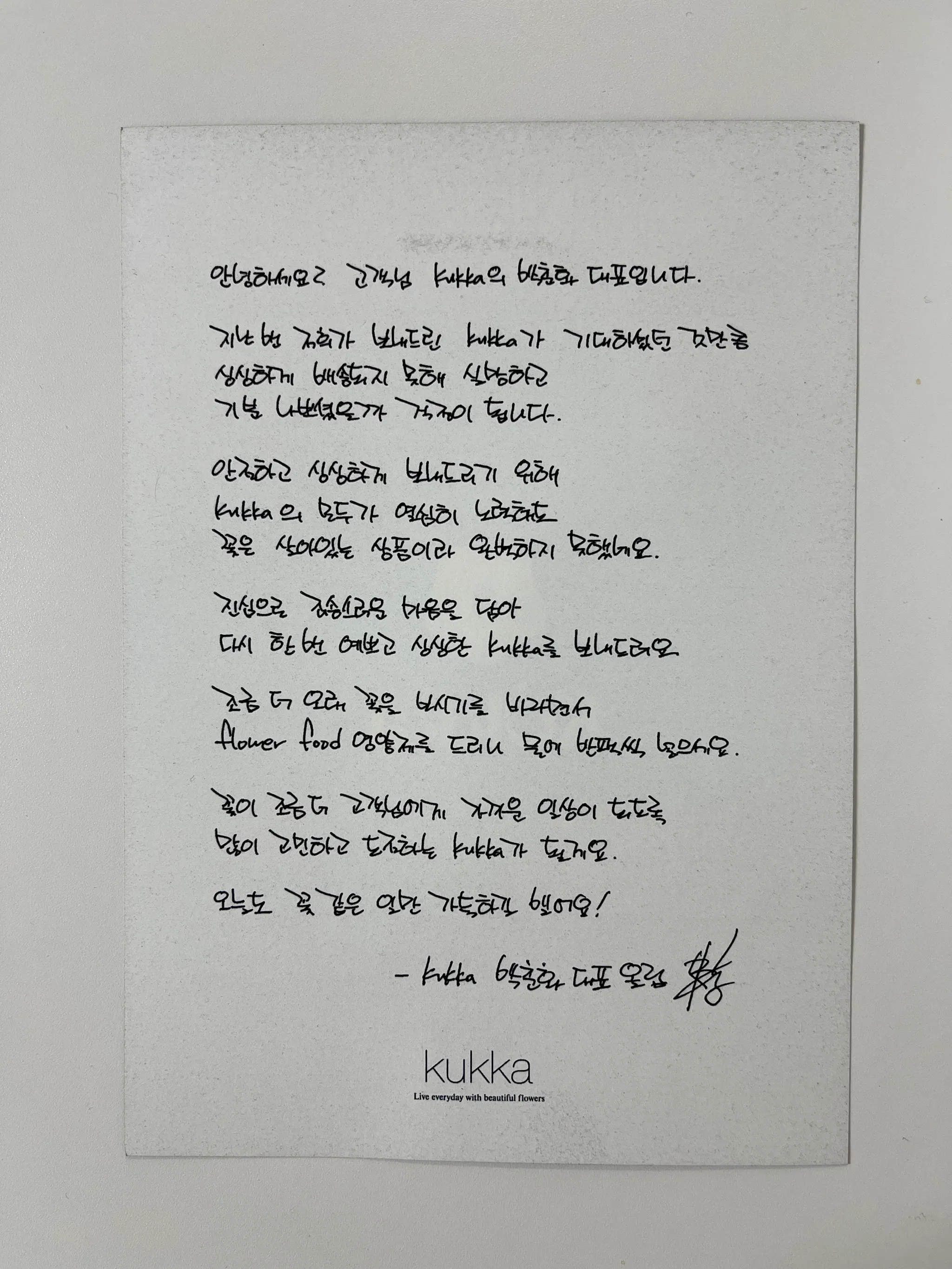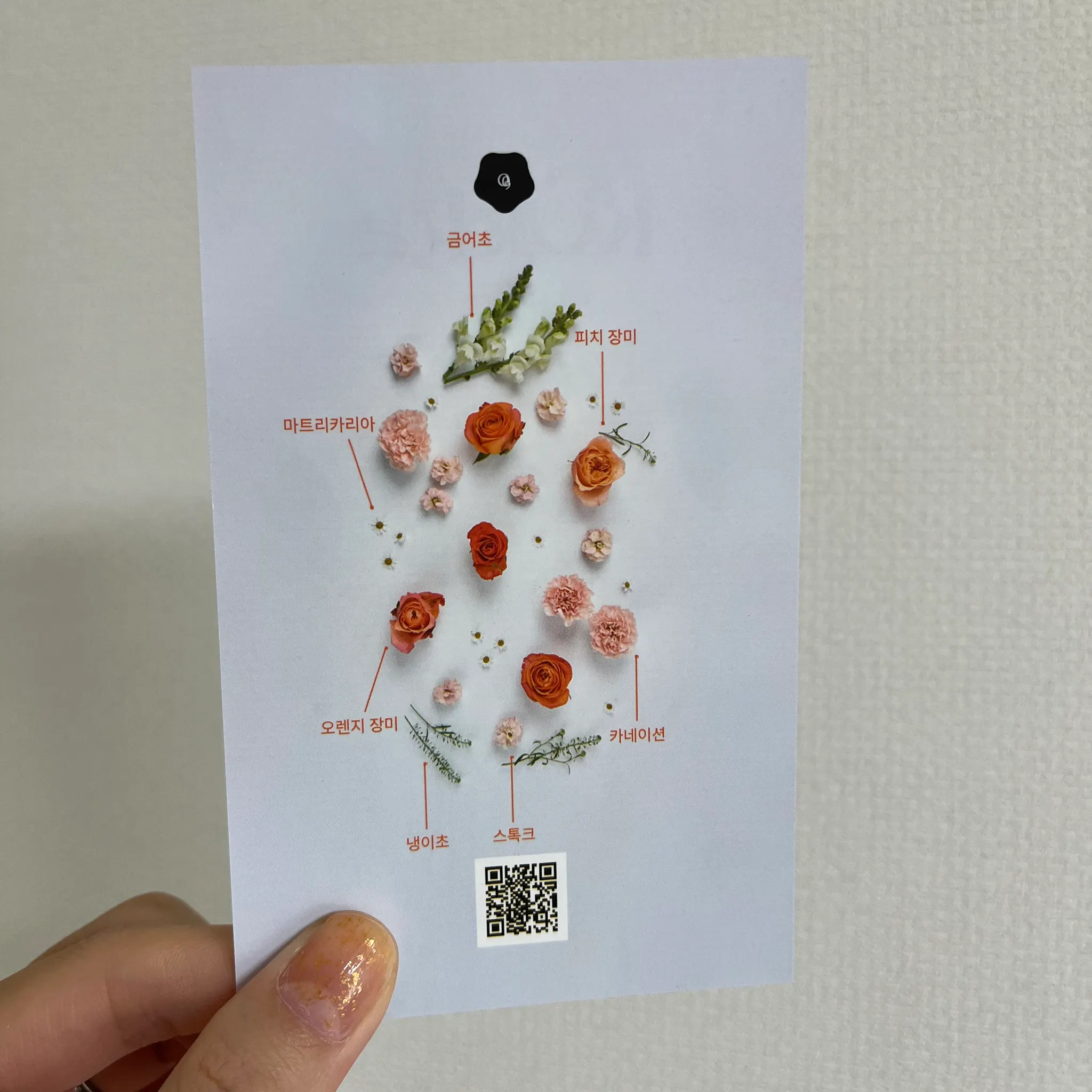 첫 꽃다발이었지만 아쉽게도 수급 이슈로 인해 원래 예정된 장미가 아닌 록산느로 바뀌었다는 사실. 어쩔 수 없는 일이긴 하지만 이렇게 안내를 해주어 서비스가 꽤 세심하다고 생각했다.
