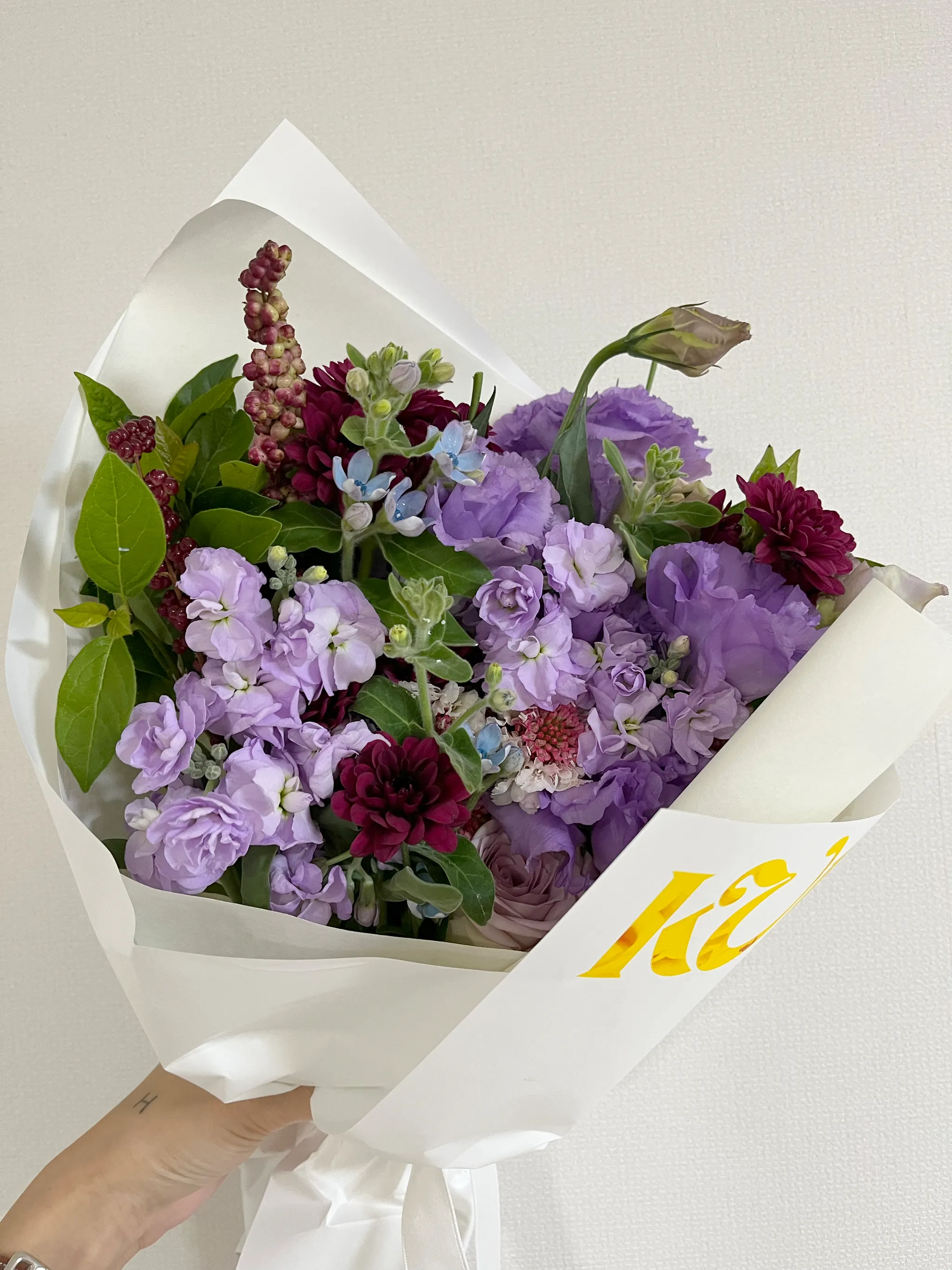 세 번째 꽃다발은 연보라색이더니 보라색 한 가득이었던 네 번째 꽃다발. 정말 너무 마음에 들었었다. 자연의 색은 정말 예쁘구나-하고 느꼈던 색들. 그리고 신기하게도 이 때 꽃다발 설명에, “아빠는 어떤 꽃을 좋아할까요?” 이런 문구가 있었는데 딱 이 꽃이 배송왔을 때 시엄마빠가 우리집에 놀러오셨음! 심지어! 시아빠 생신이었음!!! 그래서 괜히 혼자 의미부여하고 신났던 네 번째 꽃다발ㅎㅎㅎ