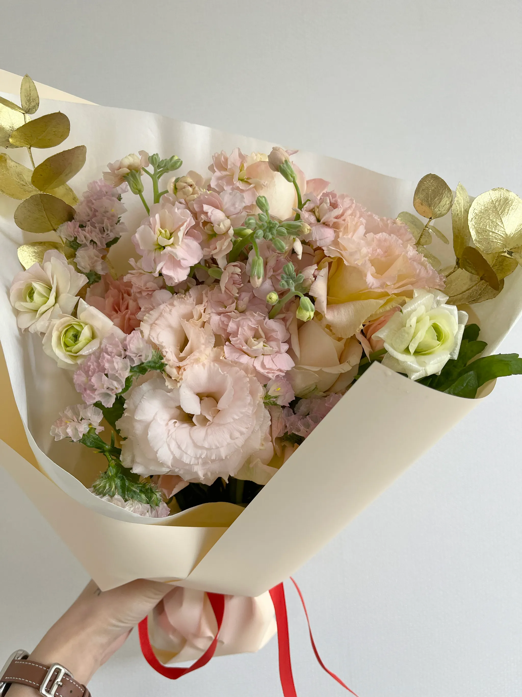 아래 사진을 보고 기대하고 있던 터라 아쉬움이 있었다. 한 가지 색상만으로도 느낌이 확 달라지는 꽃다발의 세계. 그리고 심지어 아래 사진에 보이는 분홍색 미니장미도 없었음,, 꽃다발 자체도 조금 덜 풍성하고,, 조금 띠용스러웠던게 사실.