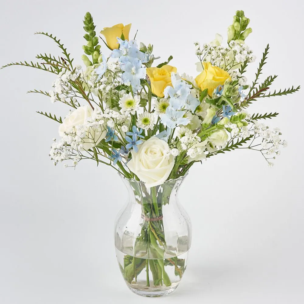 어떻게 보면 뻔할 수도 있는 색상 조합에 델피늄의 하늘색 빛깔이 더해져 더 풍부하게 느껴졌었던 아홉 번째 꽃다발. 큼직한 장미들 사이에 언뜻언뜻 보이는 하늘색이 너무 예뻐보였다. 한겨울에도 이렇게 꽃을 볼 수 있다니! 괜히 기분이 좋아졌다.