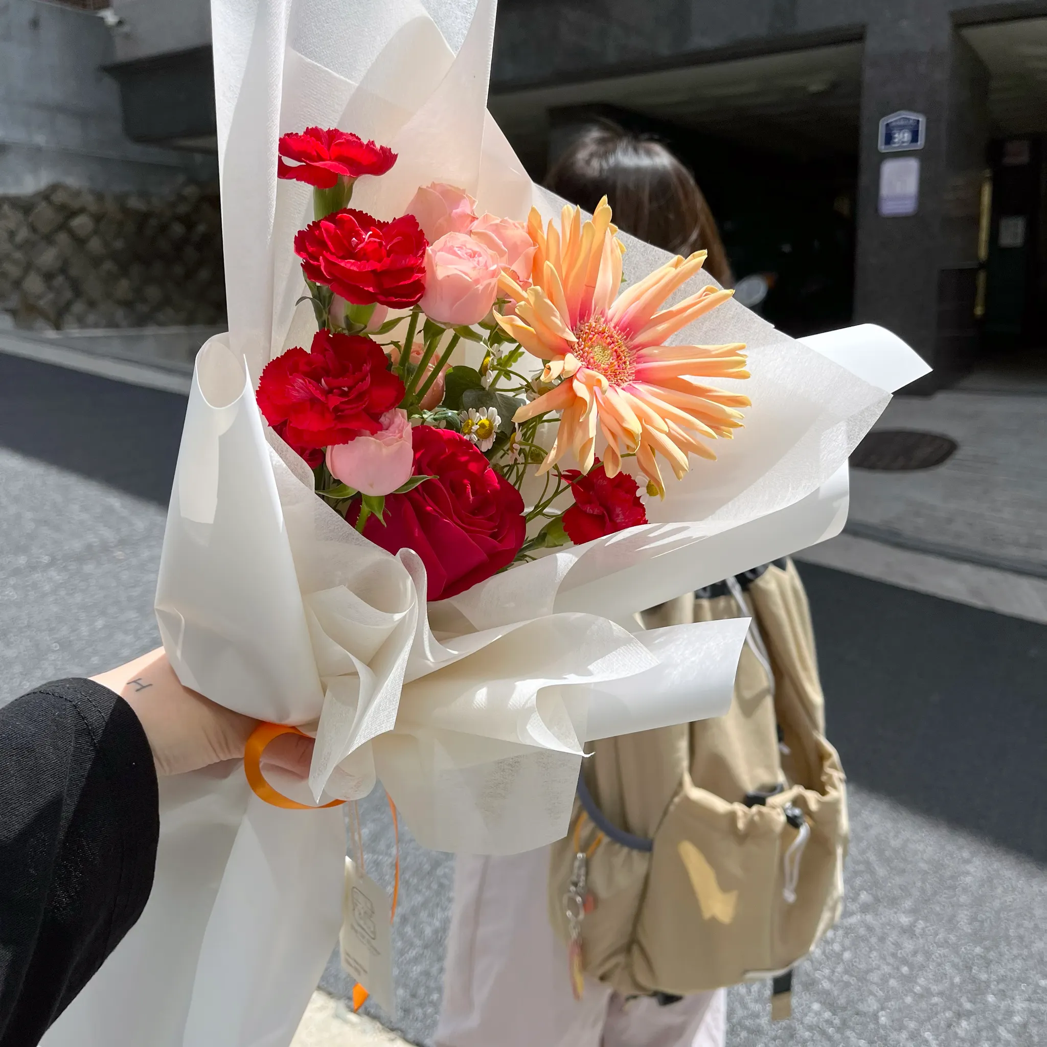 우리집에 처음 놀러오는 후섭이. 신혼집 놀러온다고 자기처럼 예쁜 꽃다발을 들고 왔다. 보자마자 너무 감동🥹