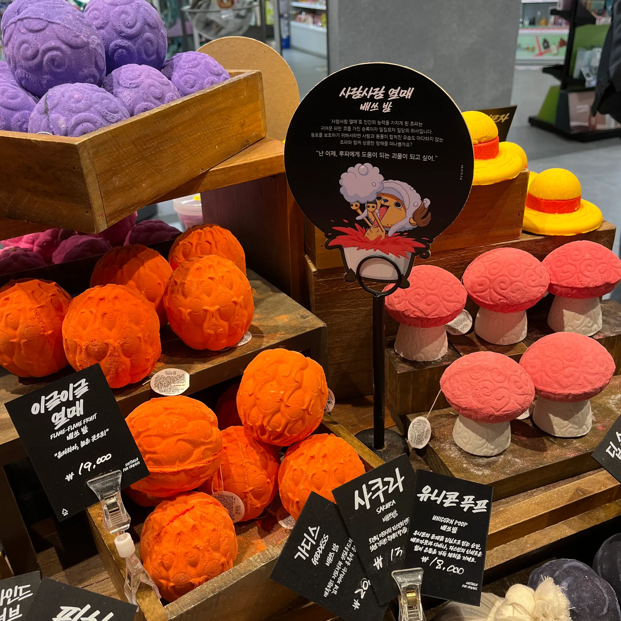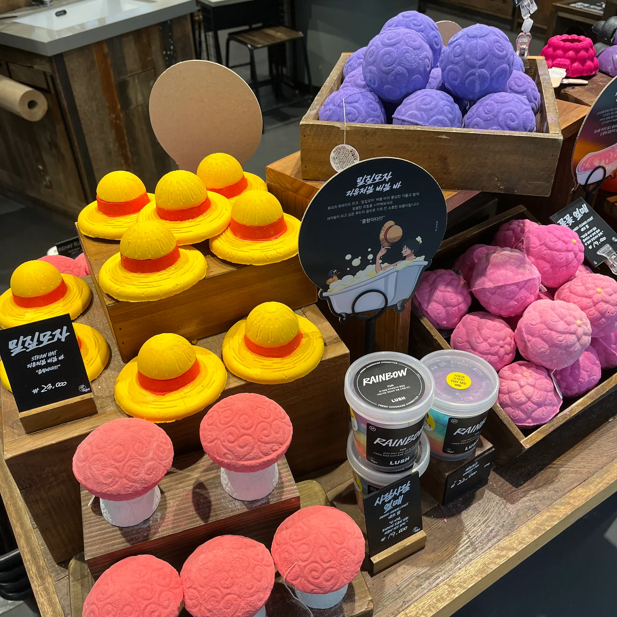 짝꿍이랑 리바이스 청바지(물론 나의 것) 사고 타임스트림 구경하다가 만난 밀짚모자!!!!! 러쉬에서 원피스랑 콜라보하나보다. 사람사람 열매도 있고,