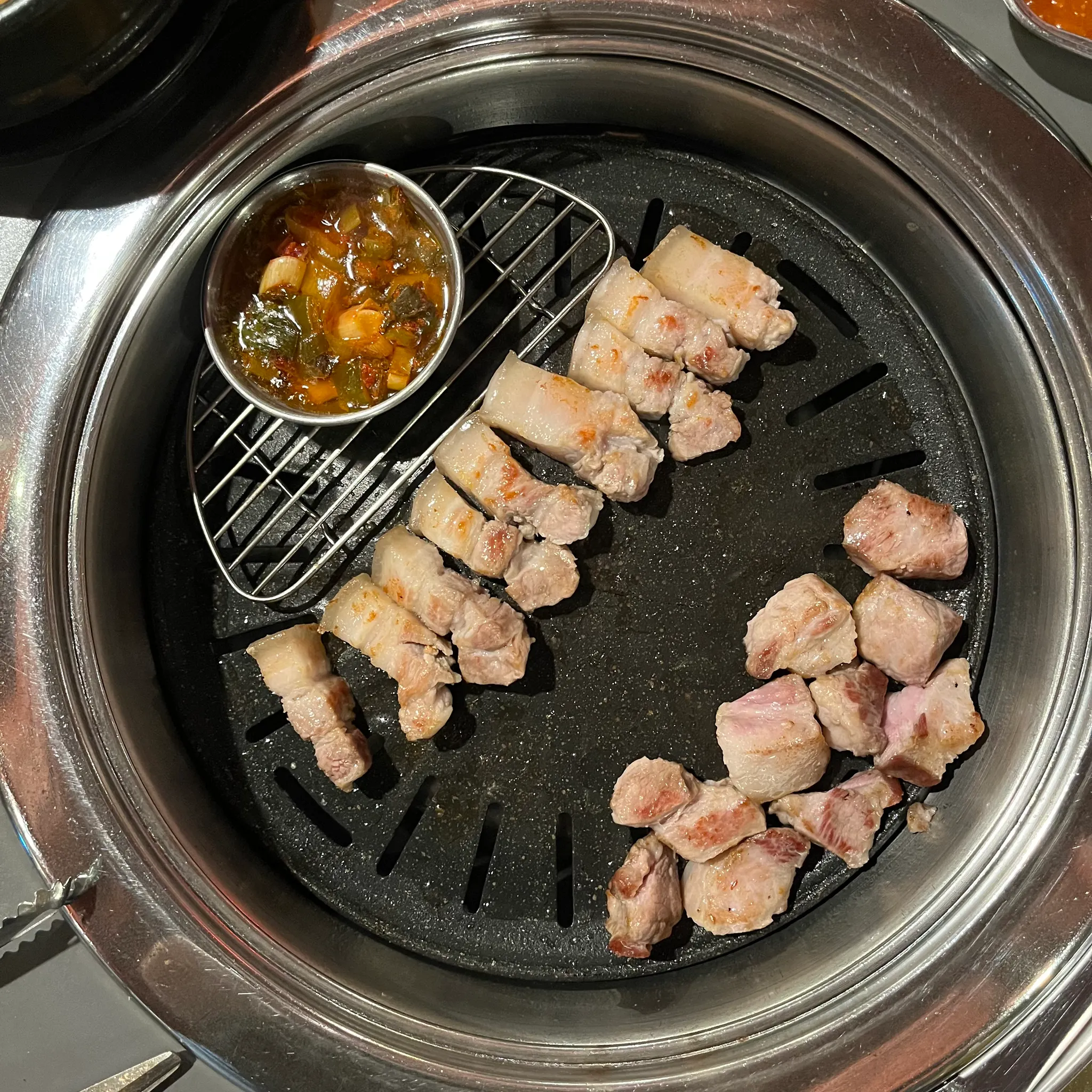 이 집 고기가 대통령상 수상한 고기라는데, 정말 맛잇게 먹었다. 먹어본 돼지고기 중에 TOP3 안에 들 듯! 순종 듀록 목살이랑 순종 듀록 오겹살을 먹었는데 정말,, 찐임