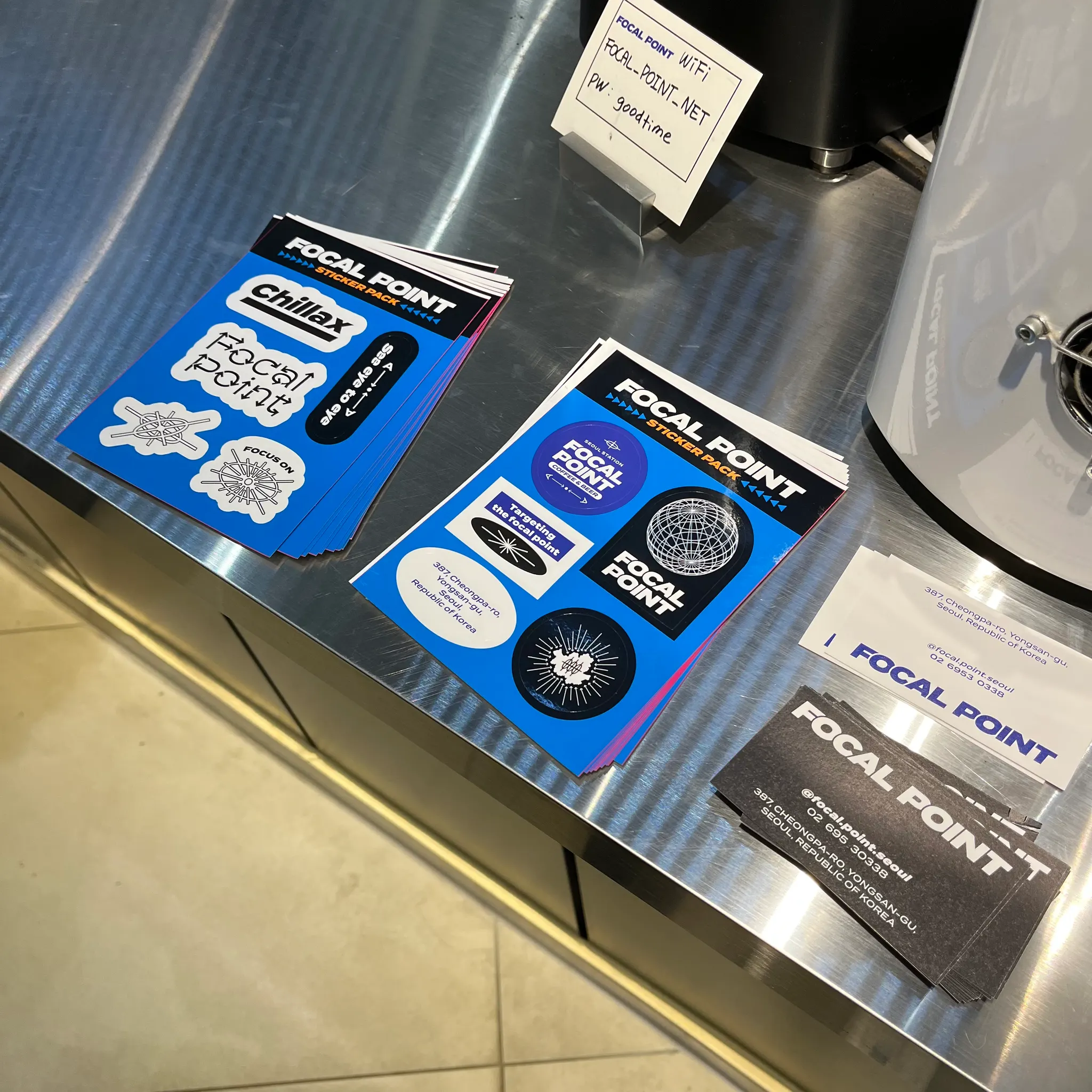 계산대 앞에는 자유롭게 가져갈 수 있는 포컬포인트 스티커와 명함이 있었다.
