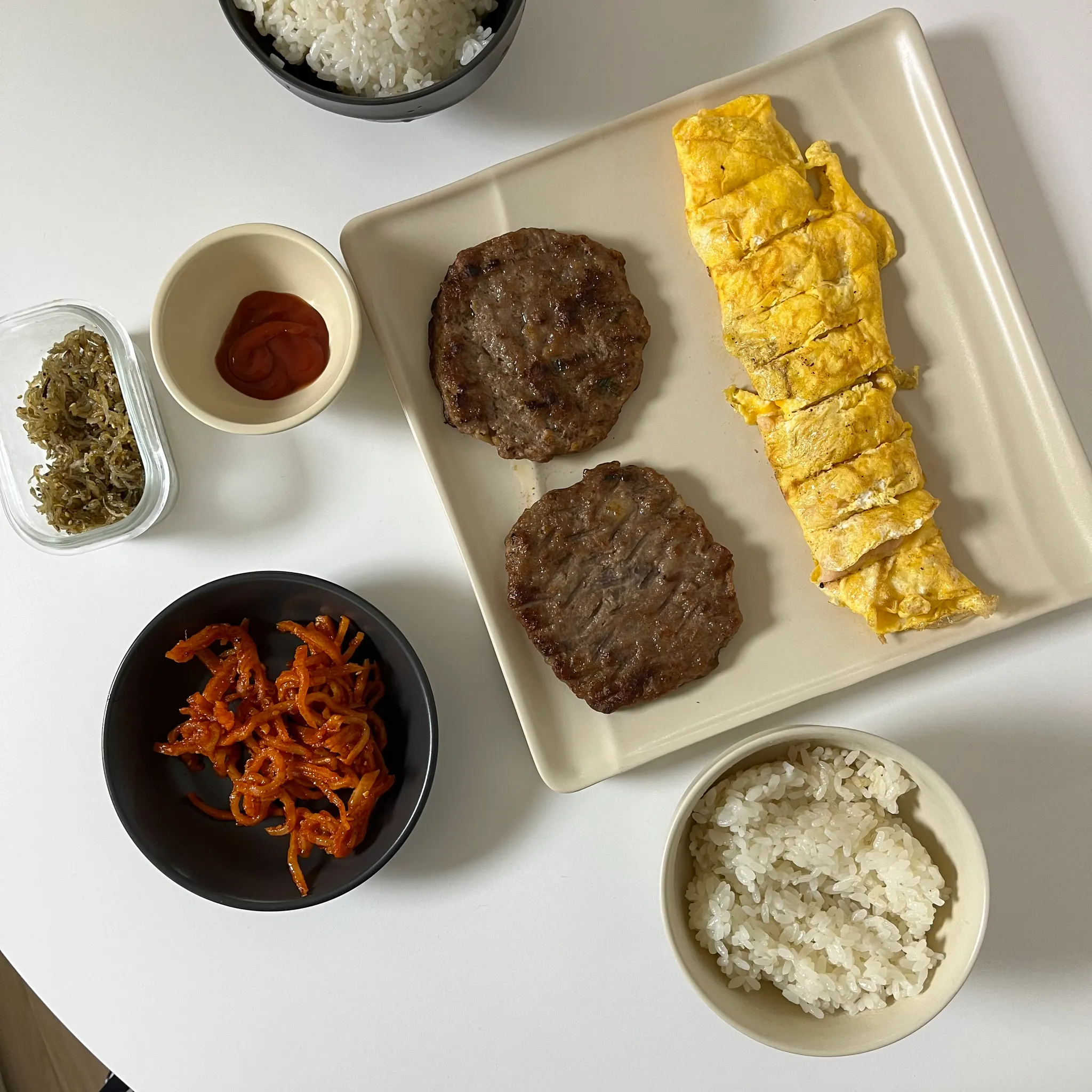 비비고 남도 떡갈비 처음 사먹어봤는데 조리하기도 완전 간편하고 맛있어서 합격! 그리고 계란말이 안에 칼레스 넣어봤는데 맛이 훨씬 더 풍부해지고 맛있었다.