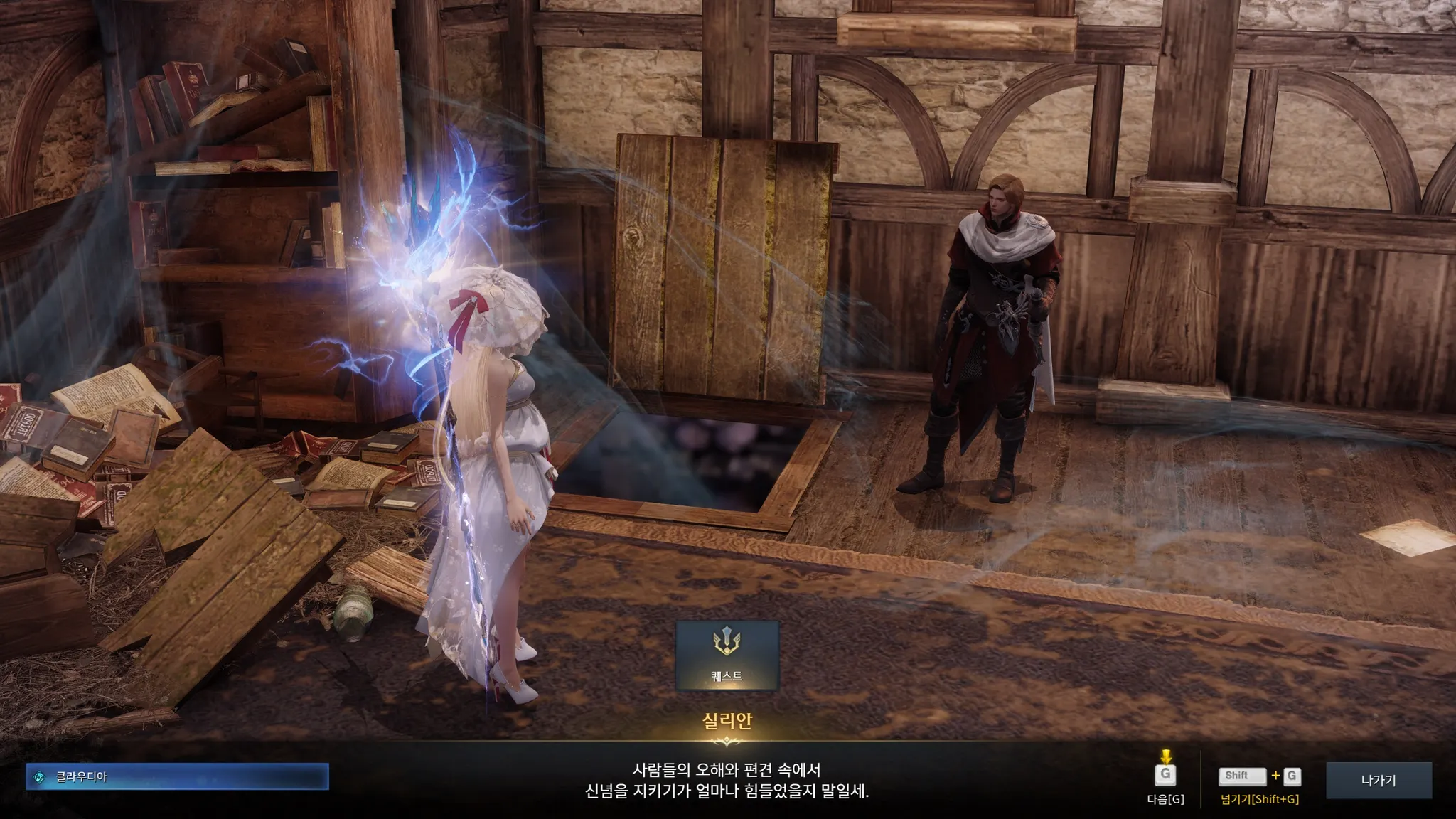 실리안에게 클라우디아가 세이크리아의 사제였다는 사실을 알려주는 중.