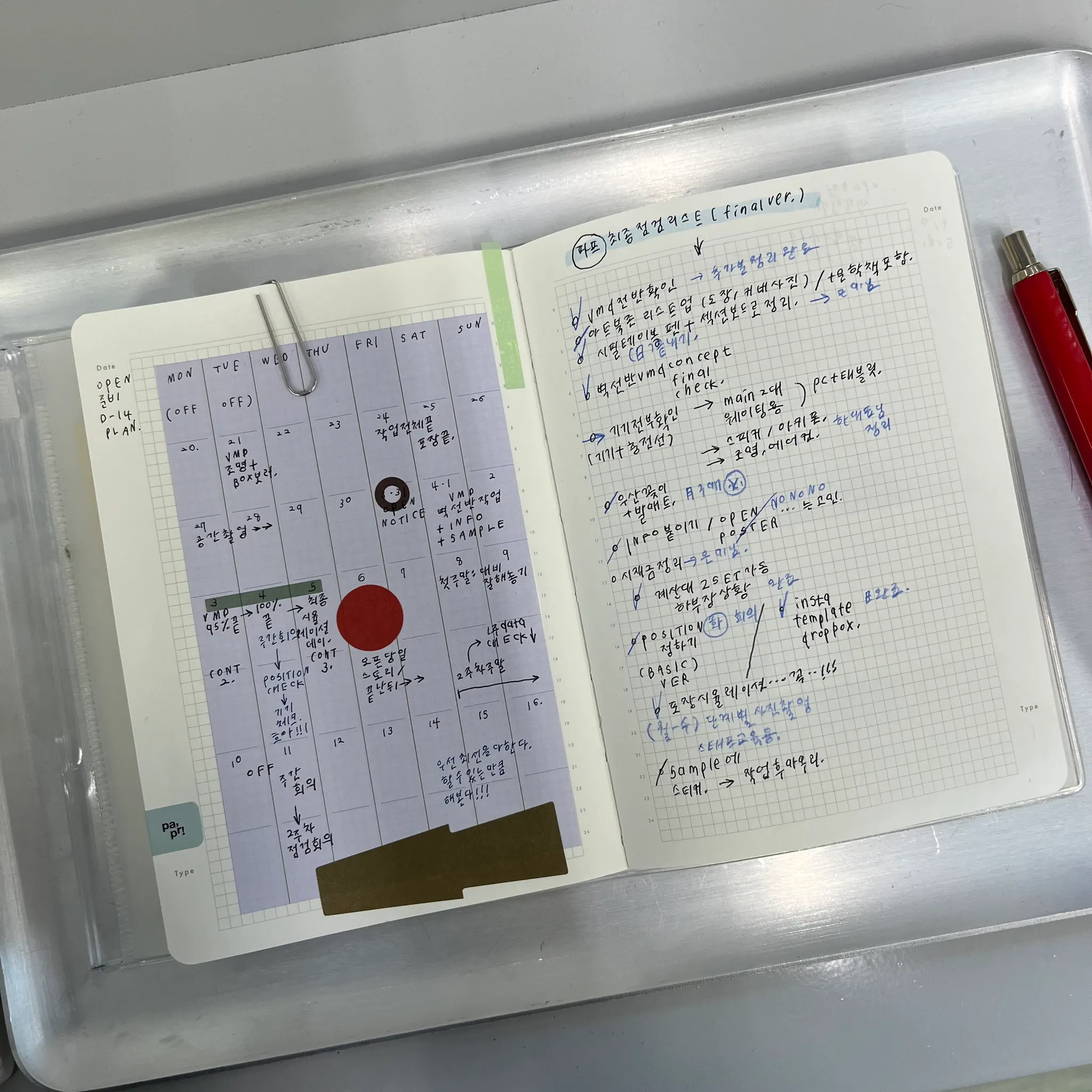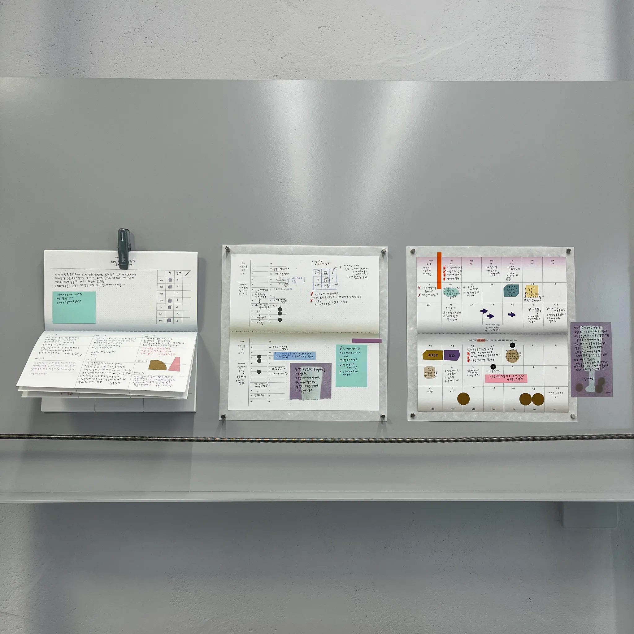 그리고 옆에는 스페이스 다이어리와 또 다른 메모패드들. 스페이스 다이어리도 내지 활용 예시 구경하는 재미가 쏠쏠해서 영상으로 담고 싶었는데, 혼자인 나는,, 손이 부족했고,,,,