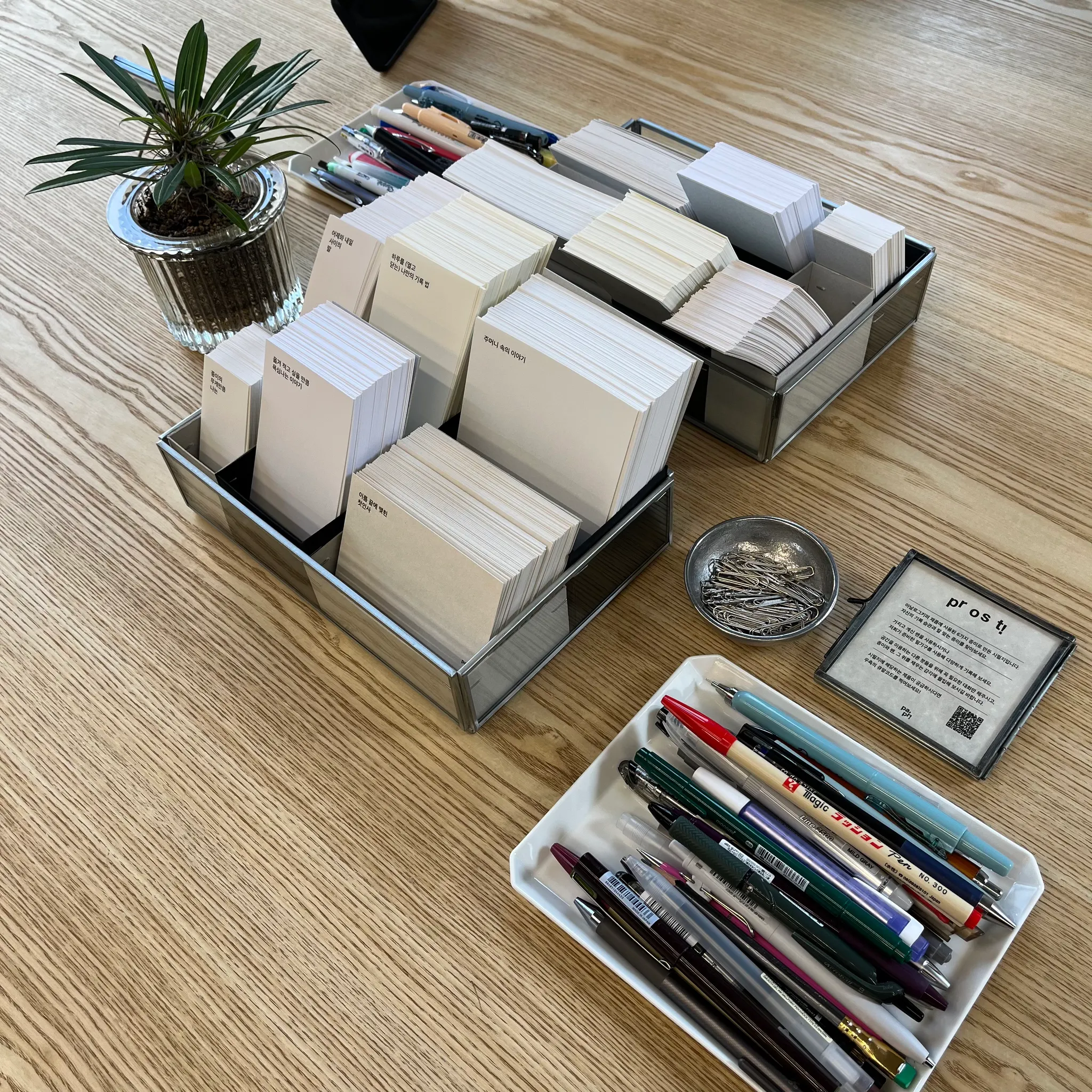 그리고 쓰는 공간 옆쪽에는 편지가게 글월을 연상시키는 곳이 있었다. 여기는 카드 세트들. 파피어 프로스트에서 소개하는 여러 나라의 각기 다른 사이즈의 총 여덟 가지의 봉투들이 있었다.