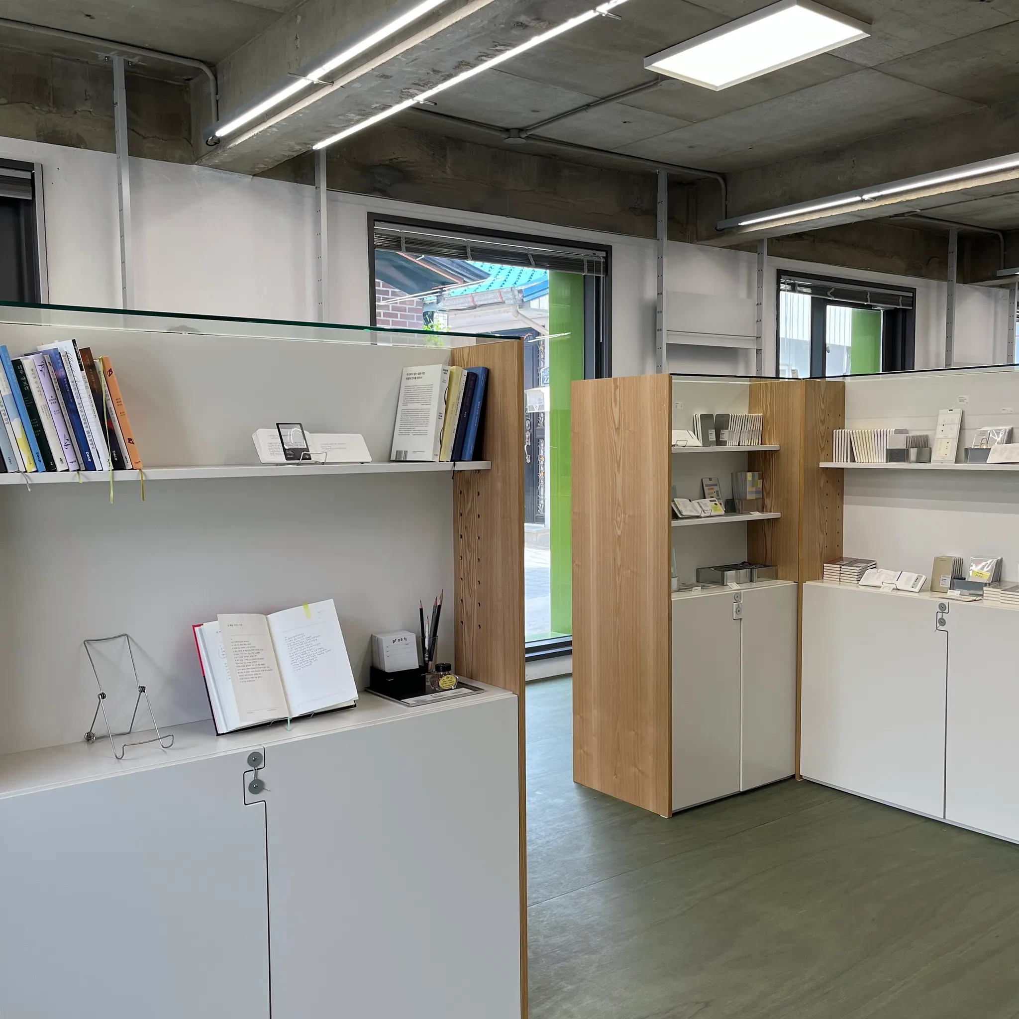 파피어 프로스트 papier prost의 파피어 papier는 독일어로 종이, 그리고 prost는 마찬가지로 독일어로 건배를 뜻. 기록하는 순간 내 안에 짠!하고 울려 퍼지는 경쾌한 감각을 의미한다고 한다. 아늑한 서촌 한 켠에 자리잡고 있는 아날로그 키퍼의 오프라인 공간, 파피어 프로스트. 아날로그 키퍼 제품 대부분을 직접 보고 구매할 수 있다고 한다.