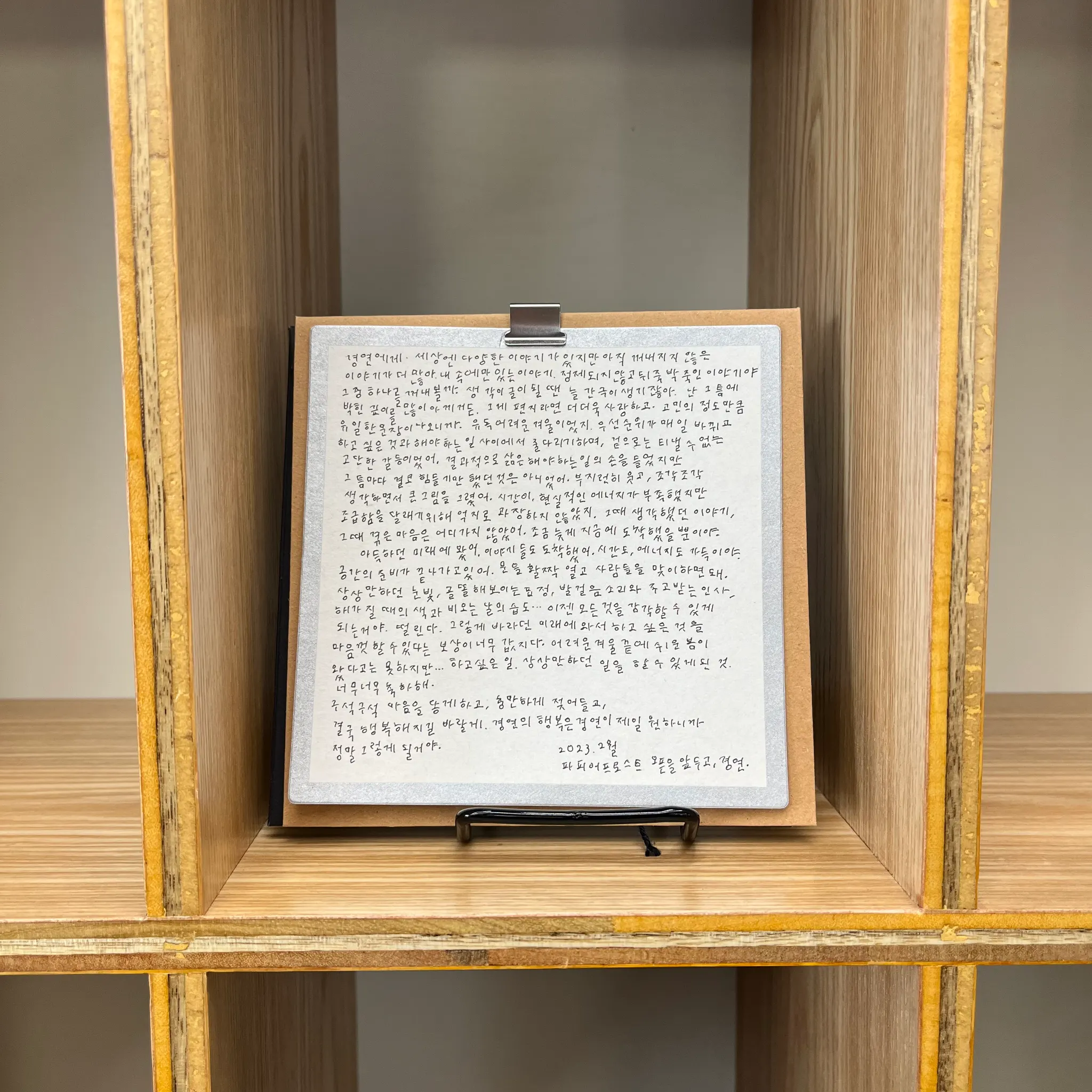경연님이 경연님한테 쓴 편지였다. 파피어 프로스트 오픈을 한 달 내지는 두 달 정도 앞두고 썼던 듯한 편지. 문장 하나하나가 따뜻했다.