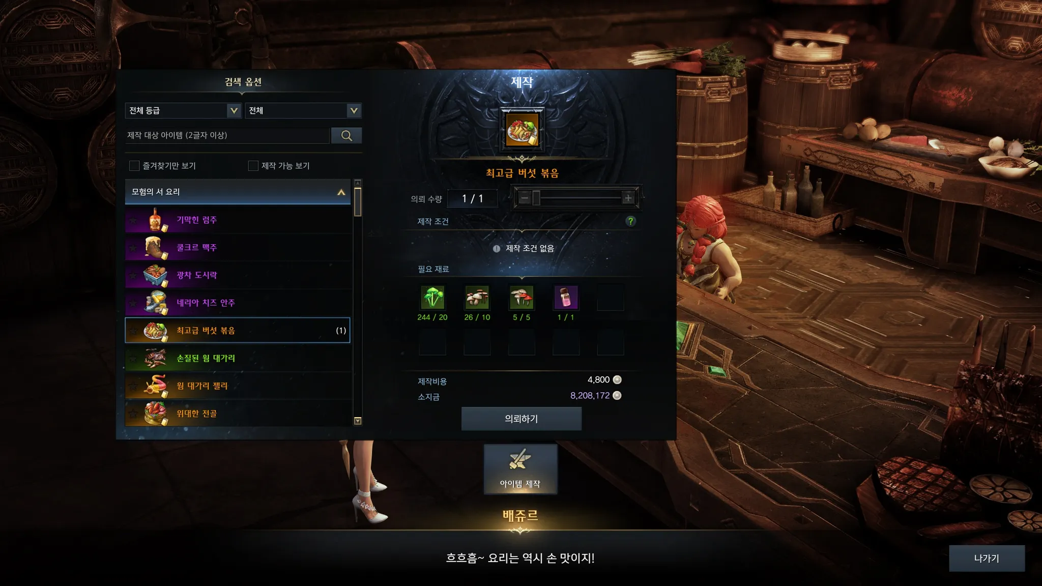 카단 찾으러 가기 전, 잠시 욘으로. 모험의 서 보스도 체크하고 요리 재료도 얻기 위해 티파니를 잡아야 한다. 근데 쟤 이름 도대체 왜 티파니인지?ㅋㅋㅋㅋㅋㅋㅋㅋㅋㅋㅋ 대체 왜 티파니지?하면서 웃음만 나옴ㅋㅋㅋㅋㅋ 그리도 다행히! 요리에 필요한 분홍 버섯 볶음 소스가 한 번에 나왔다! 이예이~!