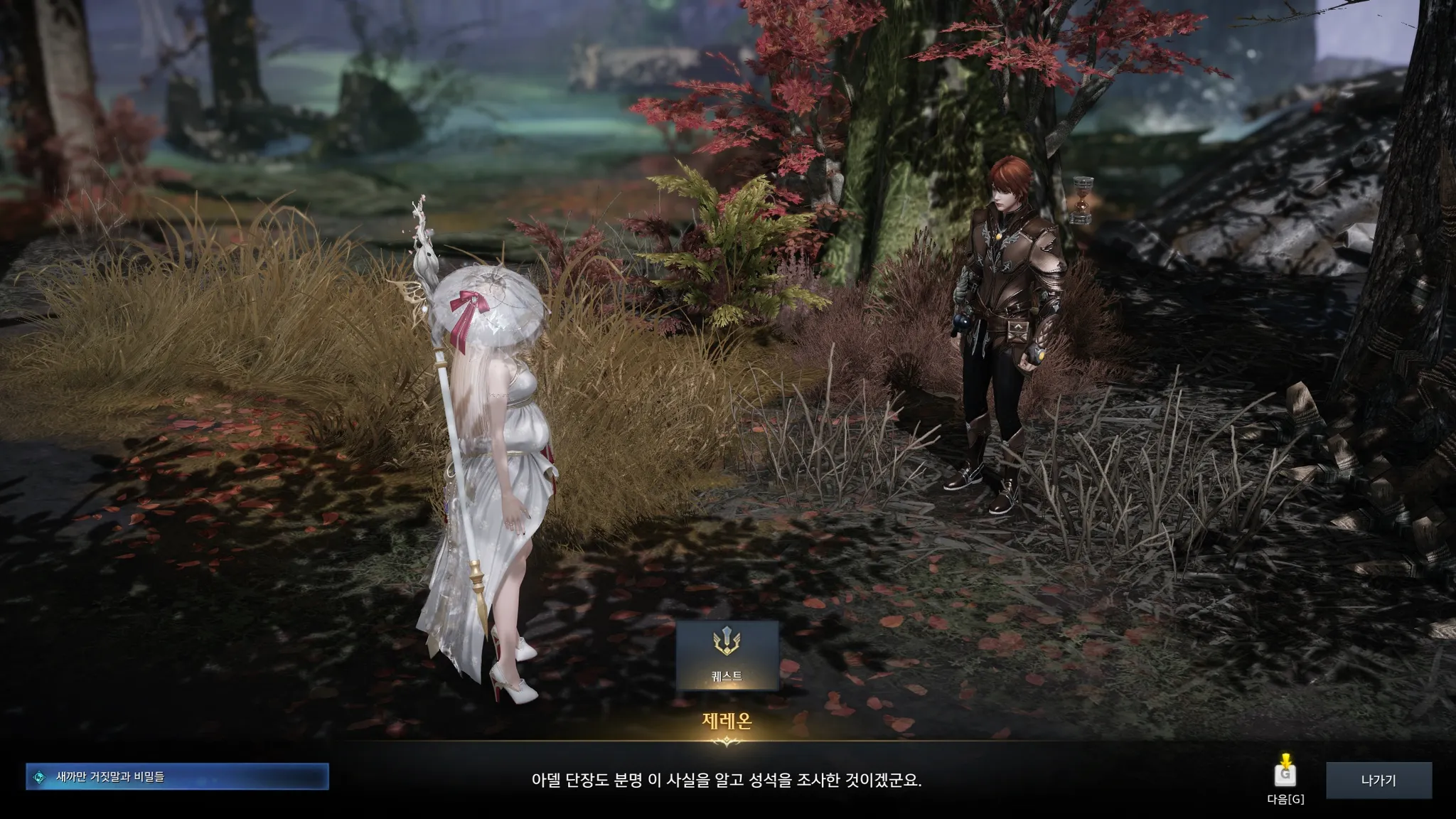 하지만 아델의 행방은 에아달린이 알려줌. 베른 남부에서 올라오는 보고들이 마음에 걸려 아델을 보내 조사하도록 한 것이었다. 베른 남부로 가서 아델과 합류해달라는 에아달린. ㅇㅋㅇㅋ