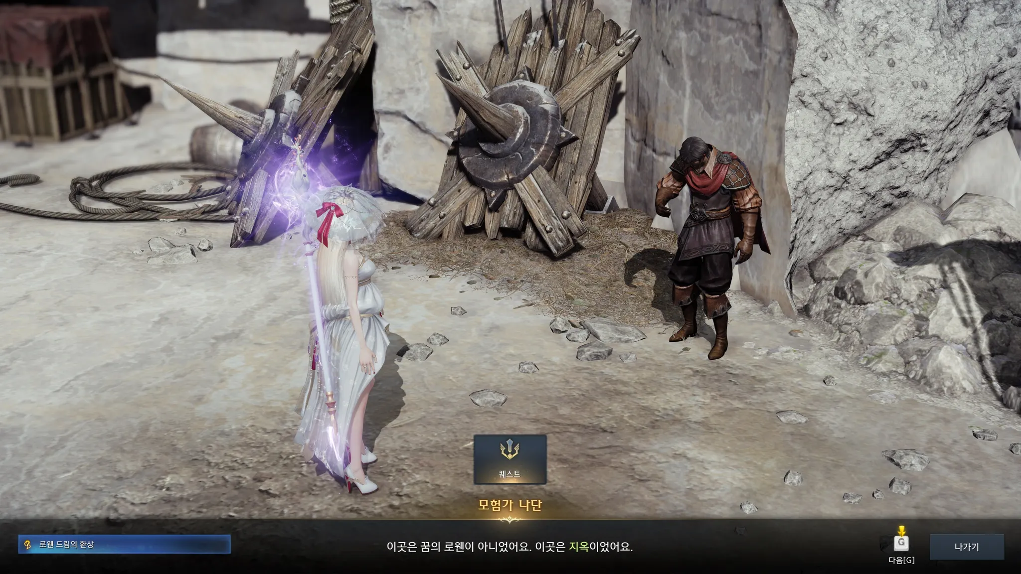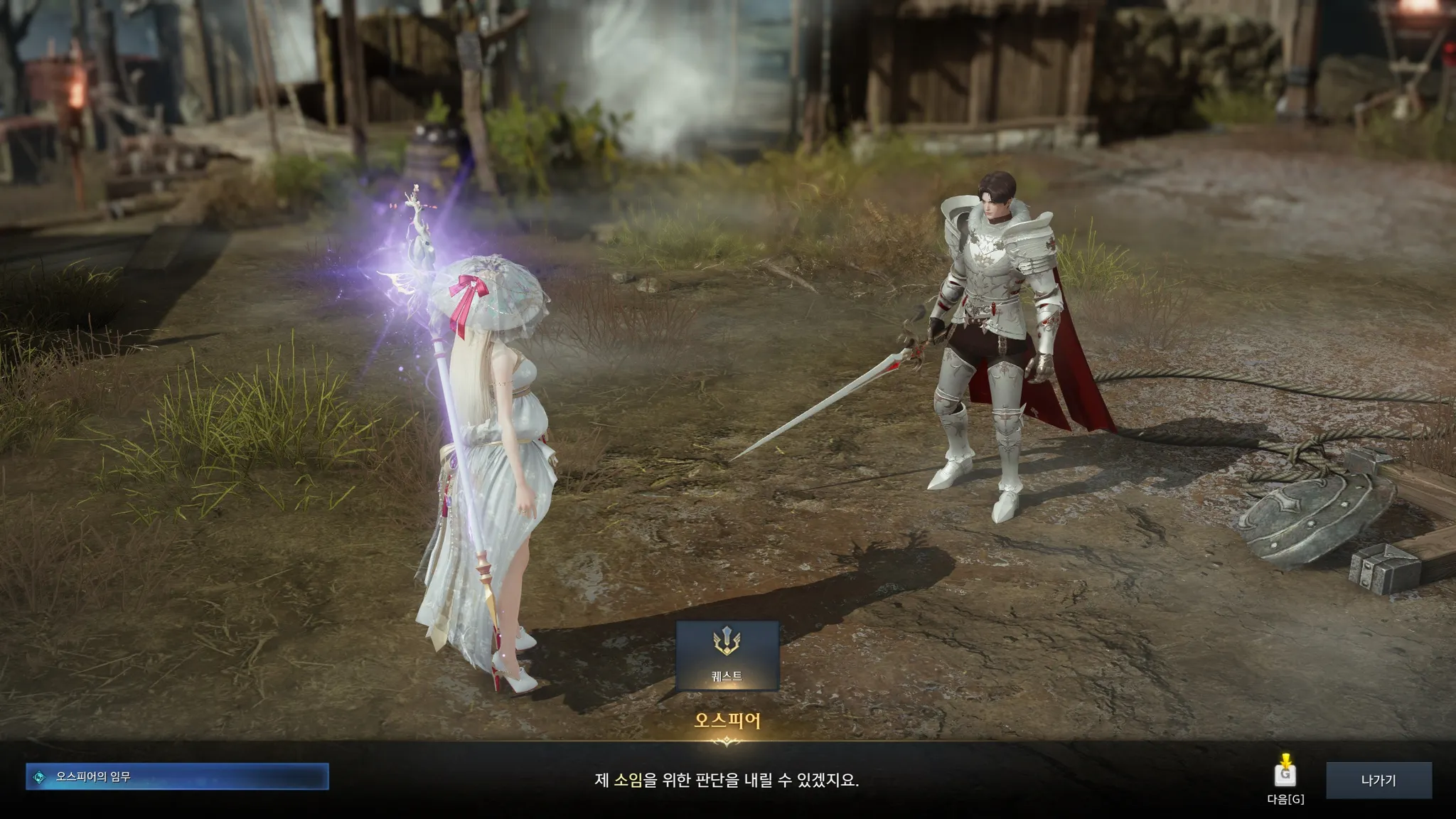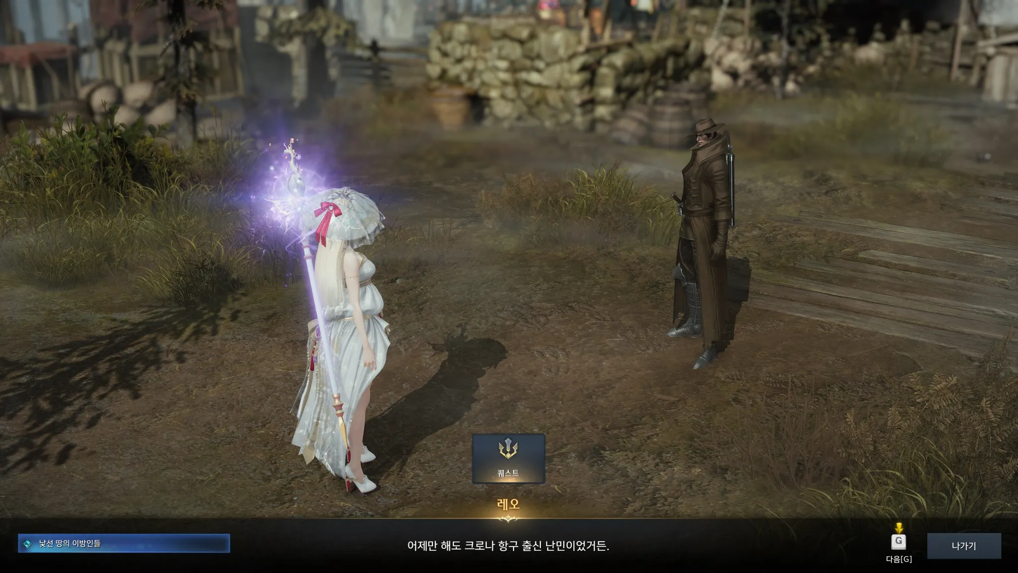 배에서 내리자마자 무기가 멋있다며 말 시키는 슈샤이어 의용군. 시리우스가 나를 여기로 보냈다는 계시가 있었다나 뭐라나? 하지만 그 옆에 누군가가 대화를 가로챘는데,