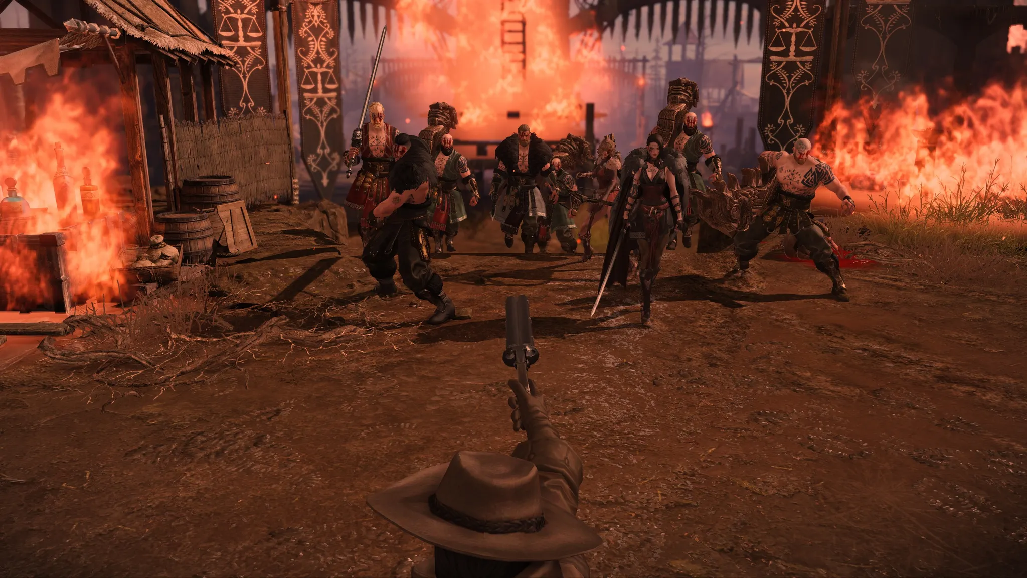 저 타투 친구들이 야만인들인가 봄. 권총 한 자루로 맞서는 레오는,, 저 자리에서 세상을 떠나게 되고