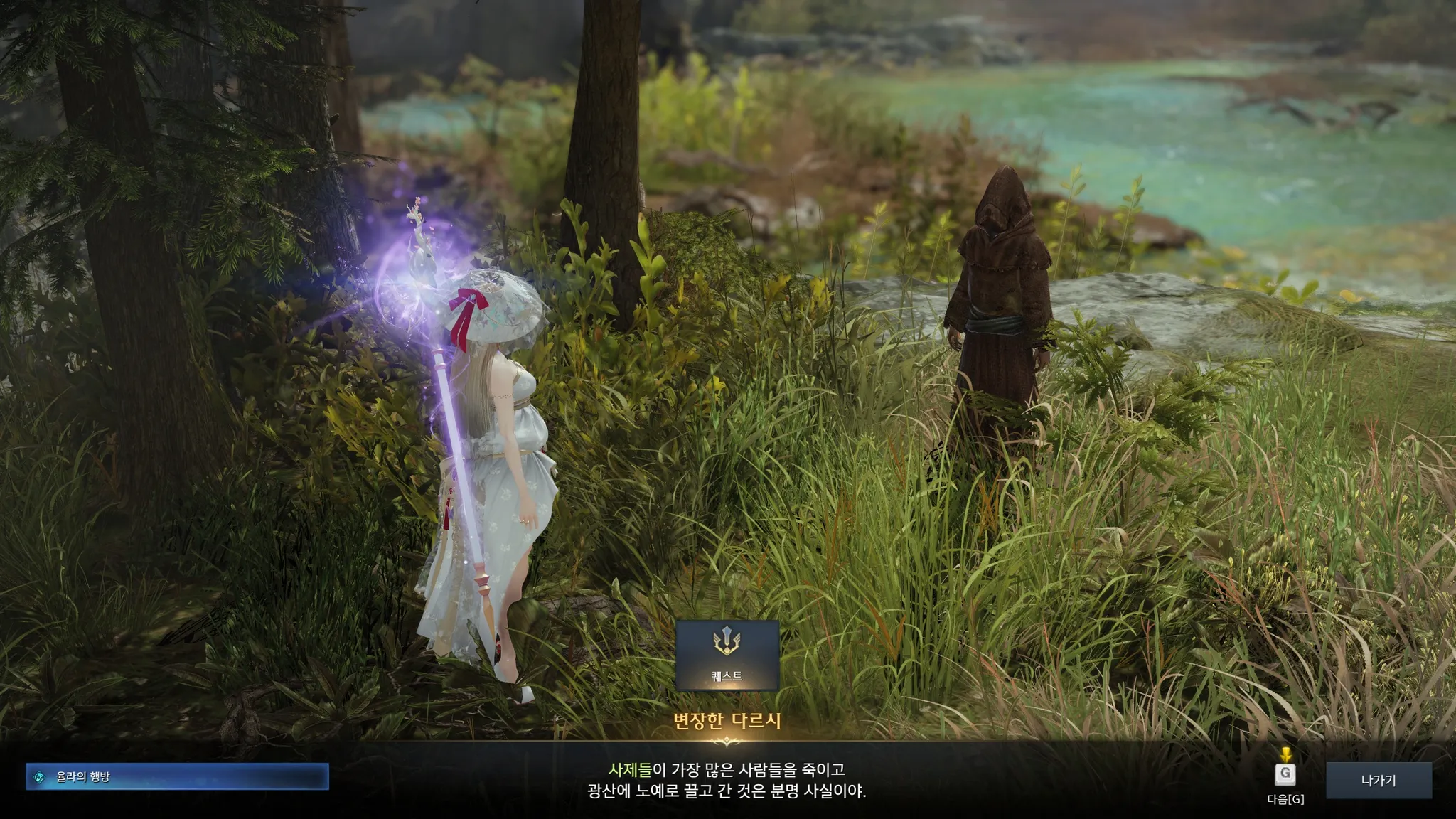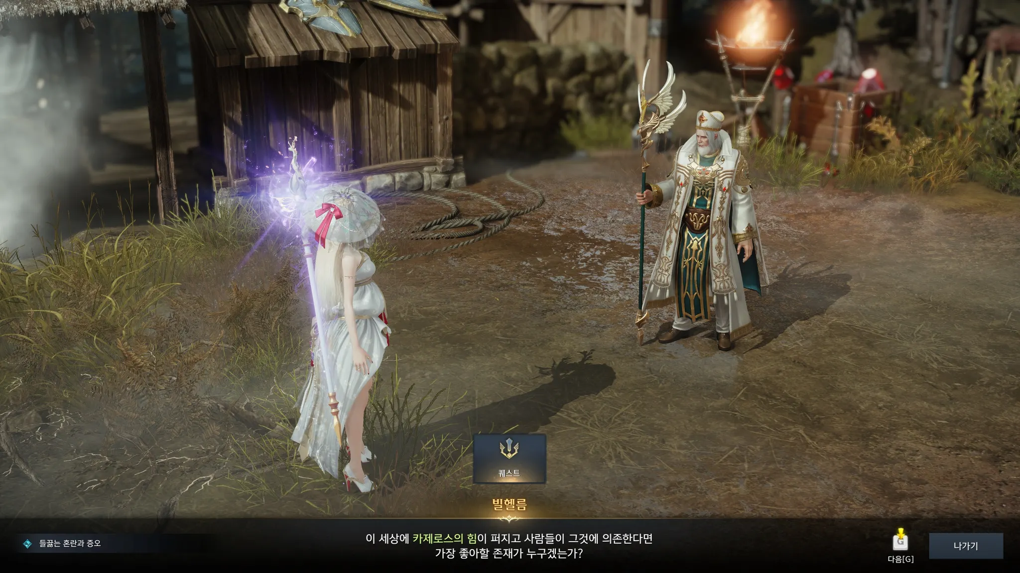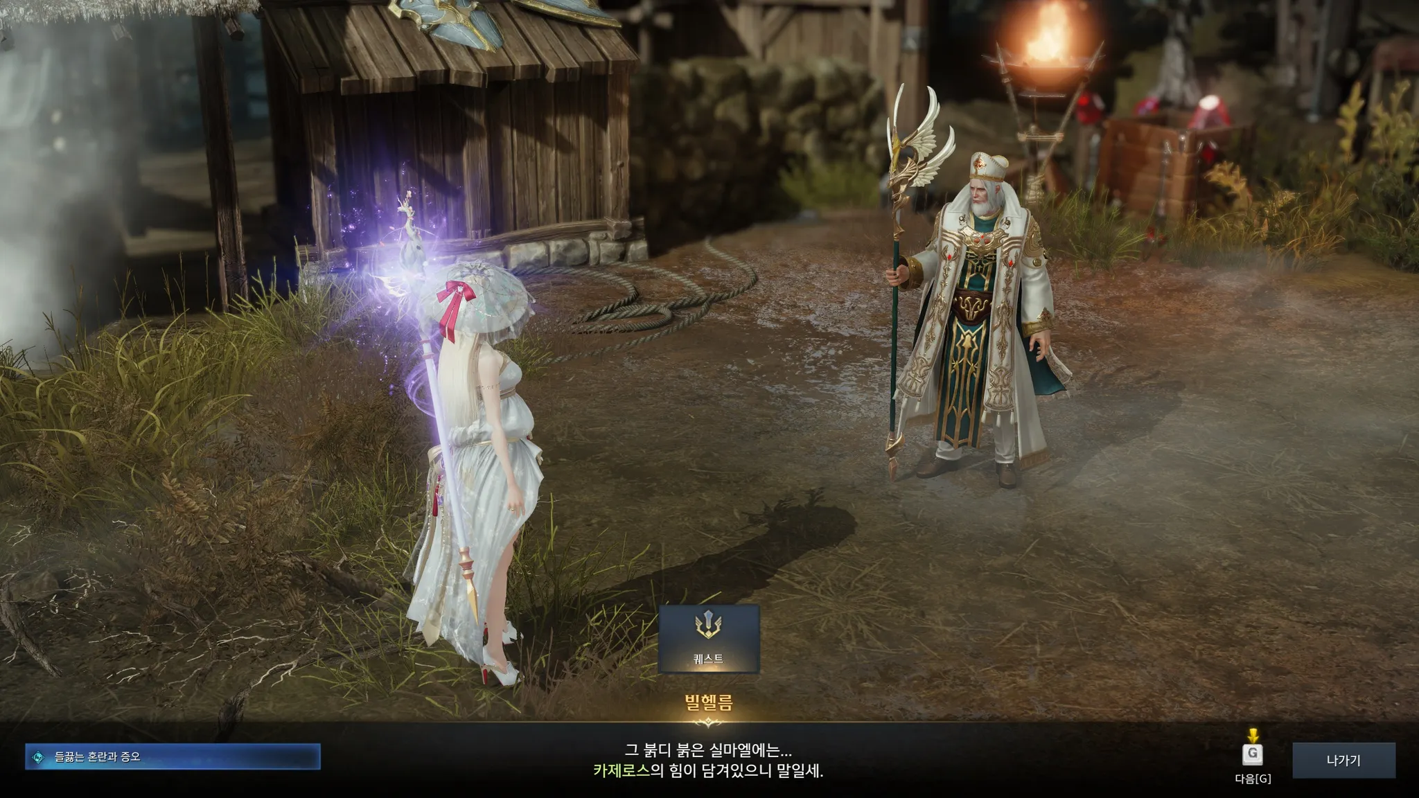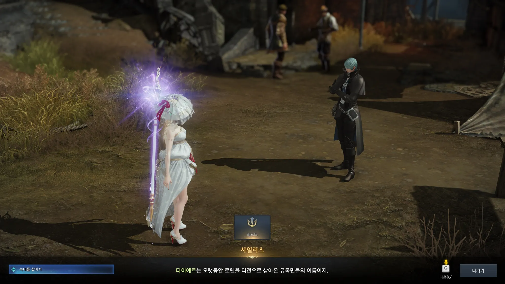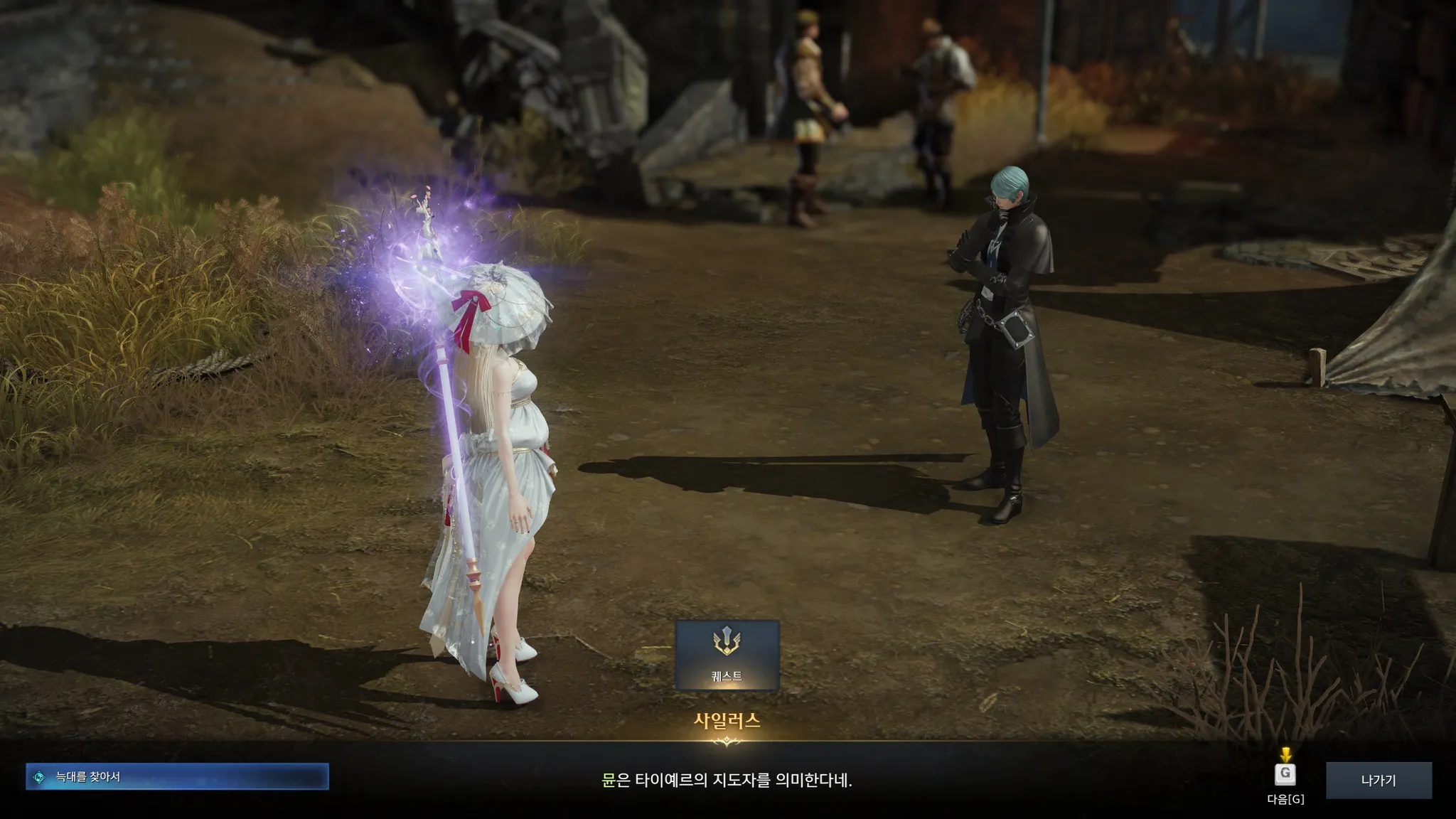 뮨을 만나고 싶다고 하니 뮨은 어디에나 있고, 어디에도 없다는 수수께끼 같은 말을 하는 족장님. 외지인들은 뮨을 절대로 찾을 수 없으나 필요하다면 뮨이 나를 찾아올 것이라고 함. 기다리는 수밖에 없다.