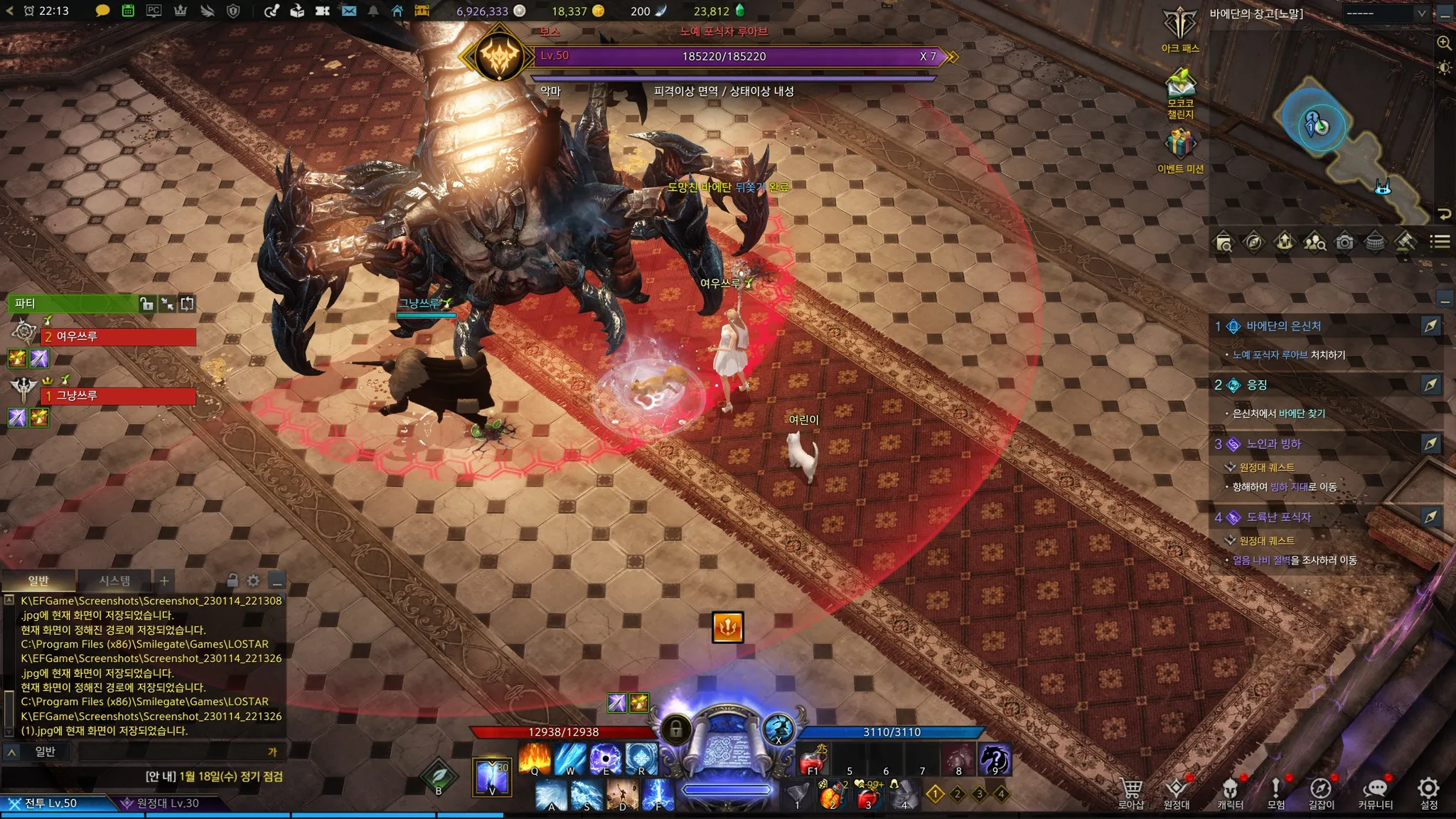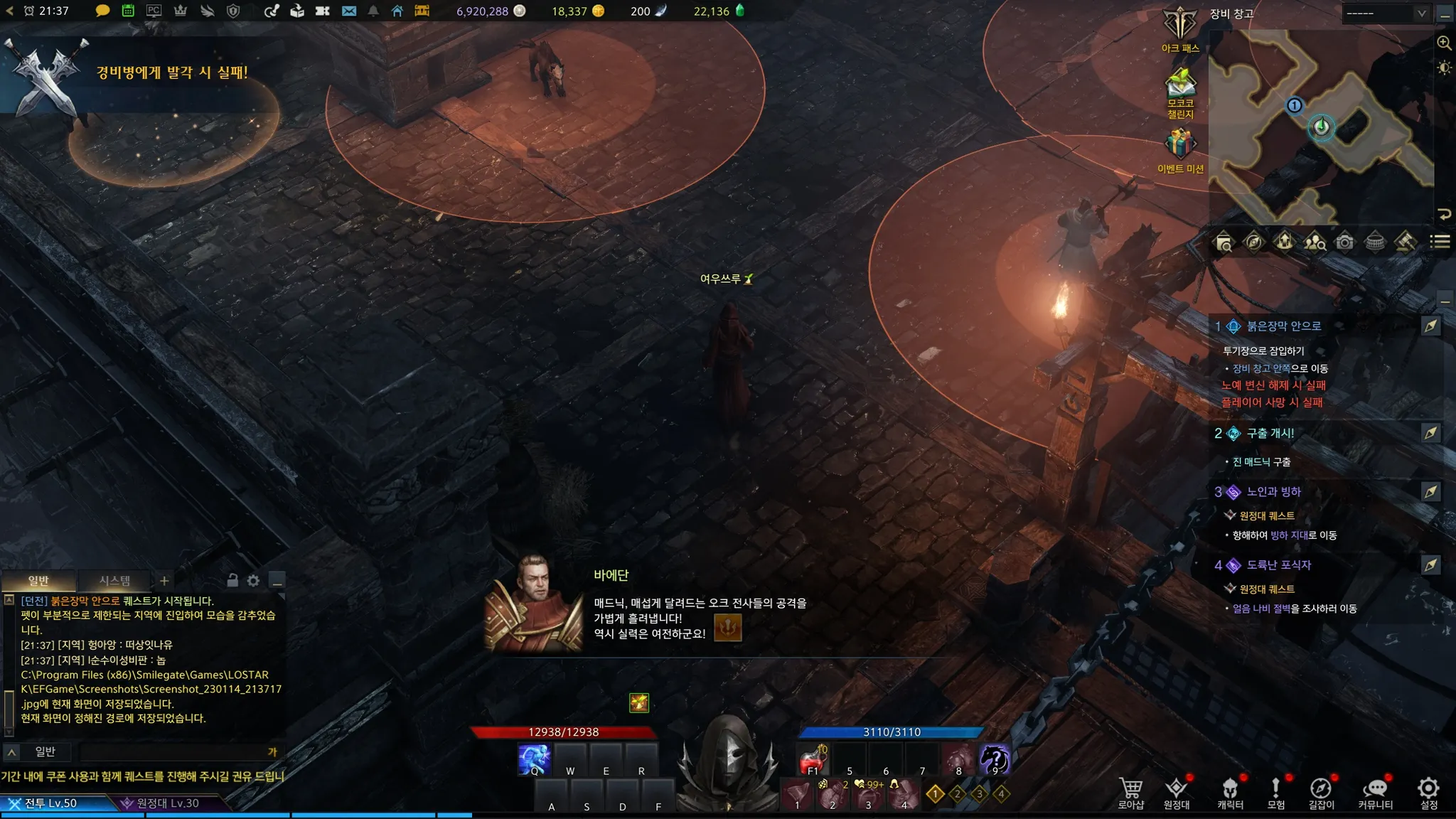 손에 땀을 쥐고 했던 퀘스트. 변장 상태면 뛰지도 못하는데, 저 빨간 원에 닿으면 죽음.. 다시 시작해야함…. 어떻게 다시 시작하는걸 아냐구요? 저도 알고싶지 않았어요