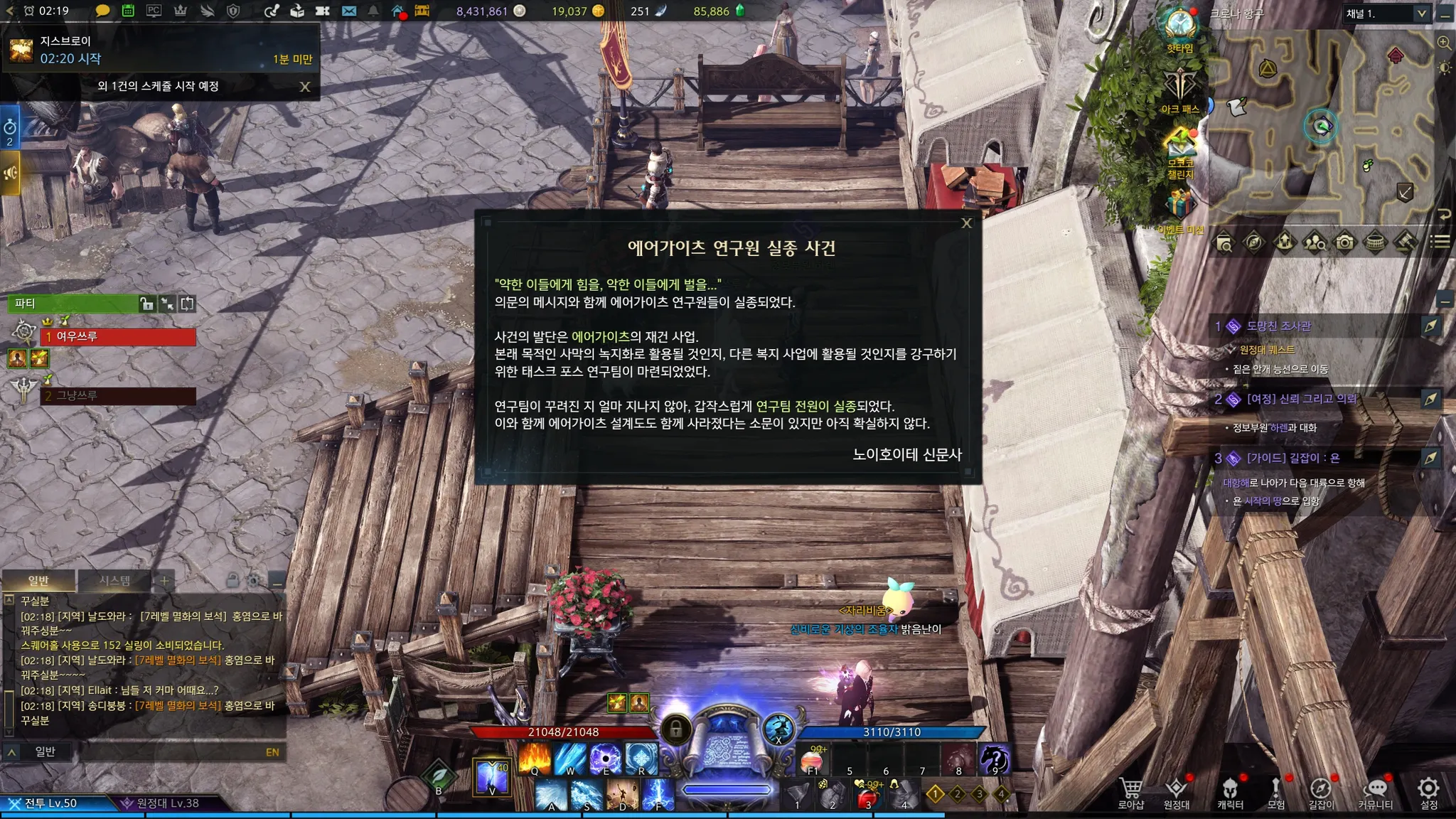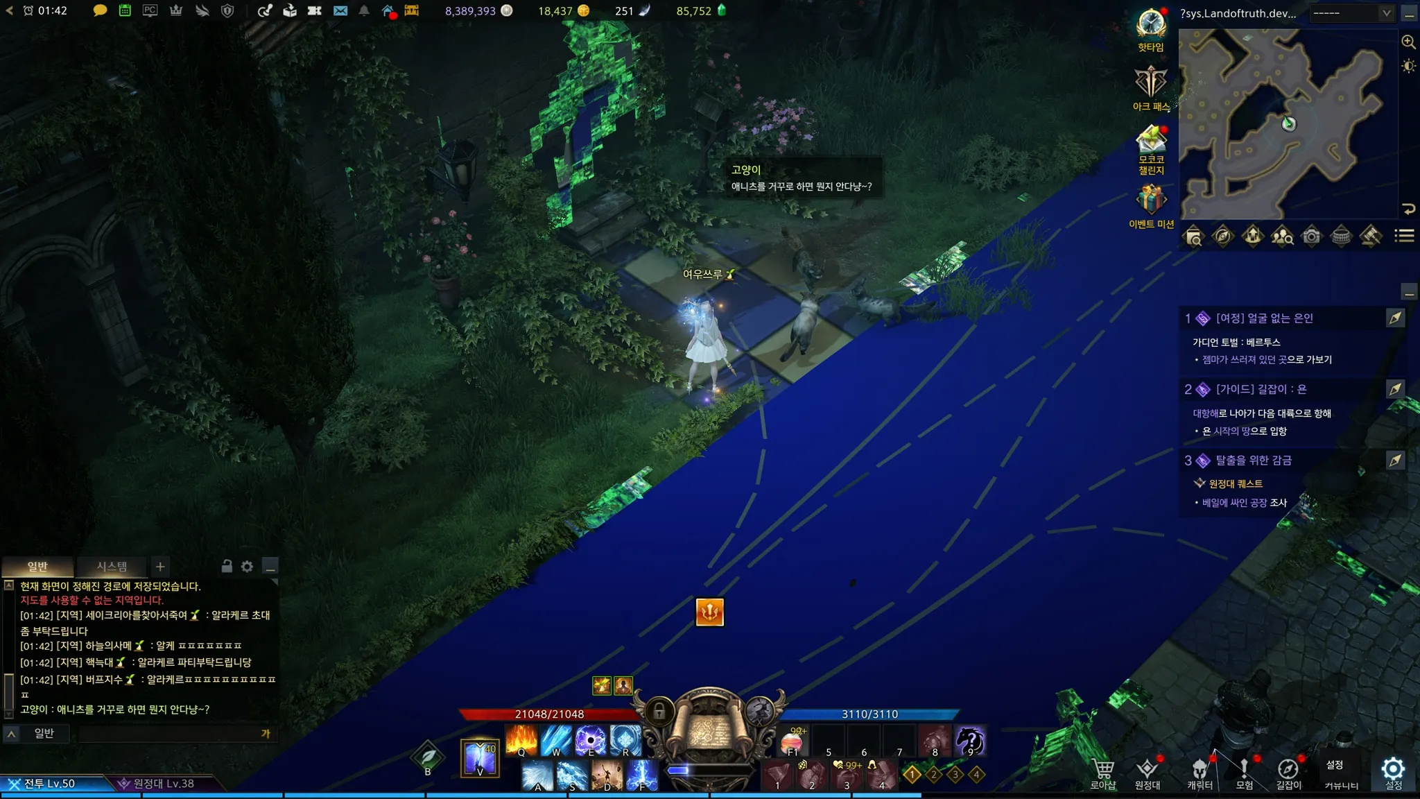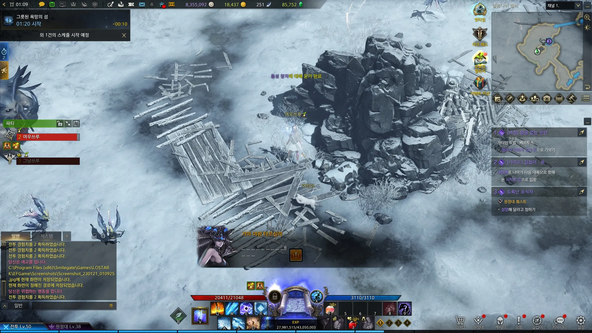 기에나 여신님한테 섬의 마음 반납하고, 오페르 할아버지한테서 /위협을 얻었다. 드디어 끊긴 퀘스트를 이어서 할 수 있게 되었다!
