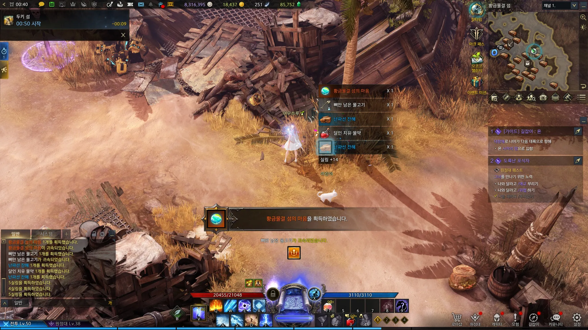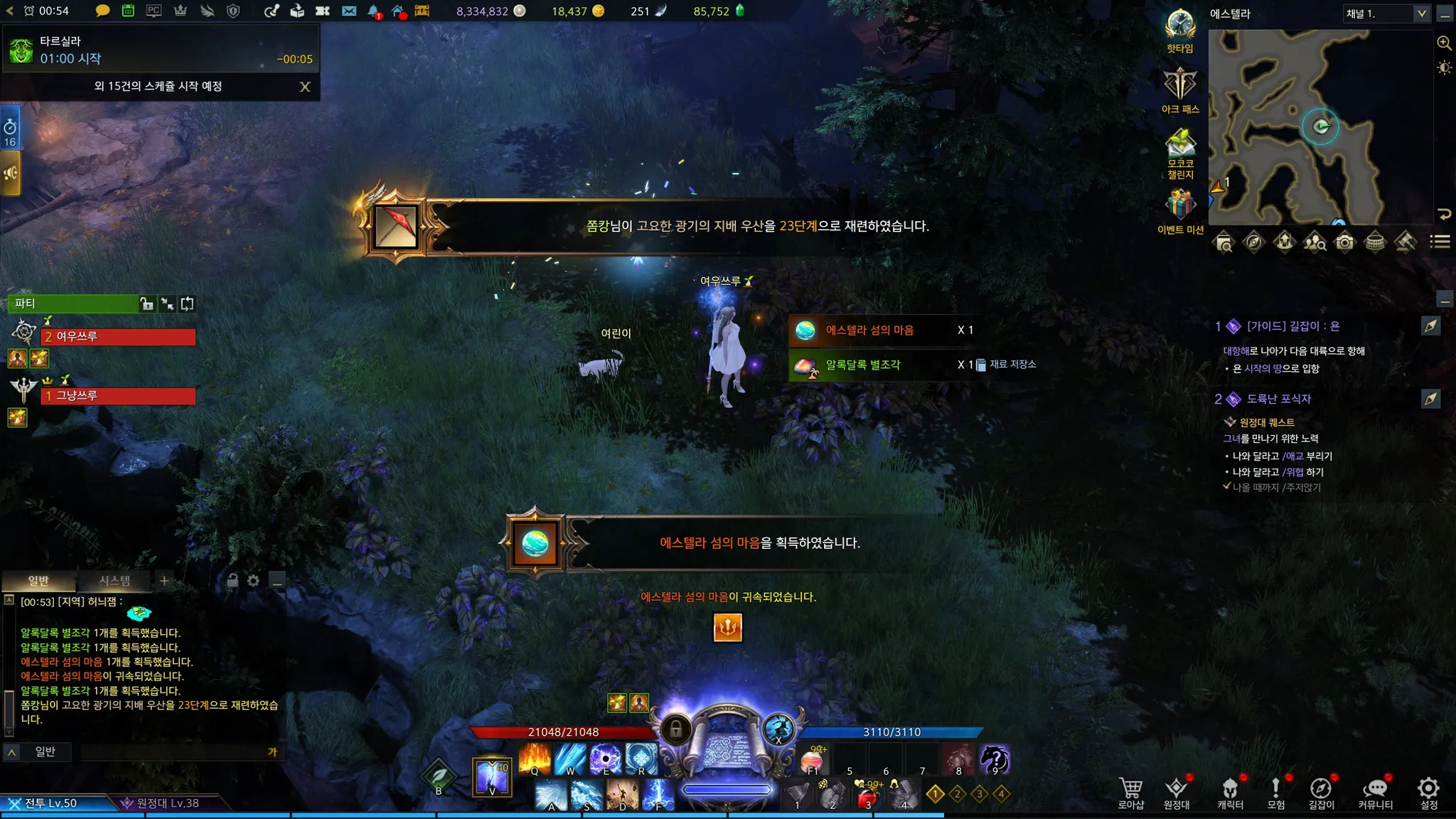 로헨델 대륙이 끝나 미뤄왔던 퀘스트 계속 진행 중. 얼음나비 고원에서 /위협을 해야하는데, 위협 감정표현은 섬의 마음 10개가 되어야 얻을 수 있었다. 그래서 멈추고 로헨델 스토리 먼저 진행했던 것. 섬의 마음이 두 개가 모자라 우선 황금물결 섬과 에스텔라에 갔다.