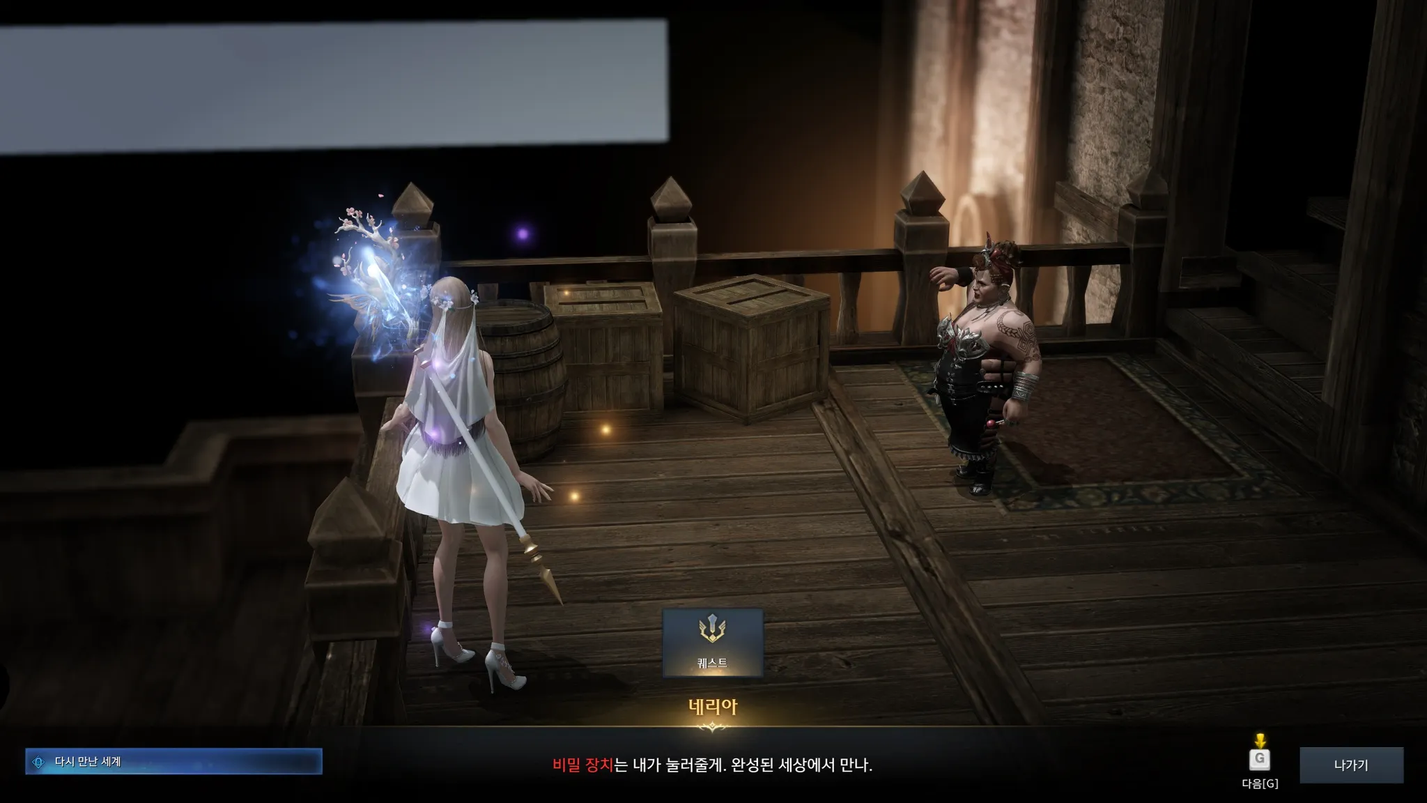 아니 이 네리아는 자기가 npc인걸 알고 있는건가????? 네리아들 다 모여있는 것도 무서웠는데 이 대사에서 또 오싹해진 나.