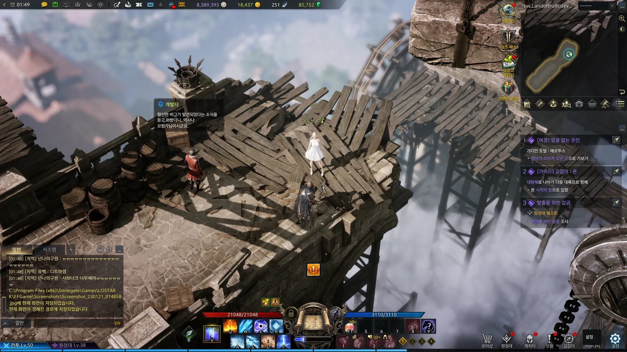 처음에 아만 구해줬던 그 장면! 오랜만에 만난 아만이 반갑기도 하고 너무 갑작스러워서 왜 이 장면이 나오지?라는 생각은 못하고 일단 아만을 구하려고 했다. 근데 갑자기.. 내 캐릭터가 아만 발로 걷어차서 떨어트리더니 환호함…. 나 이때 정말 너무너무너무 놀라서 찐으로 끼야아아아악!하고 비명지름. 정말.. 너무 놀라서 눈물고임..