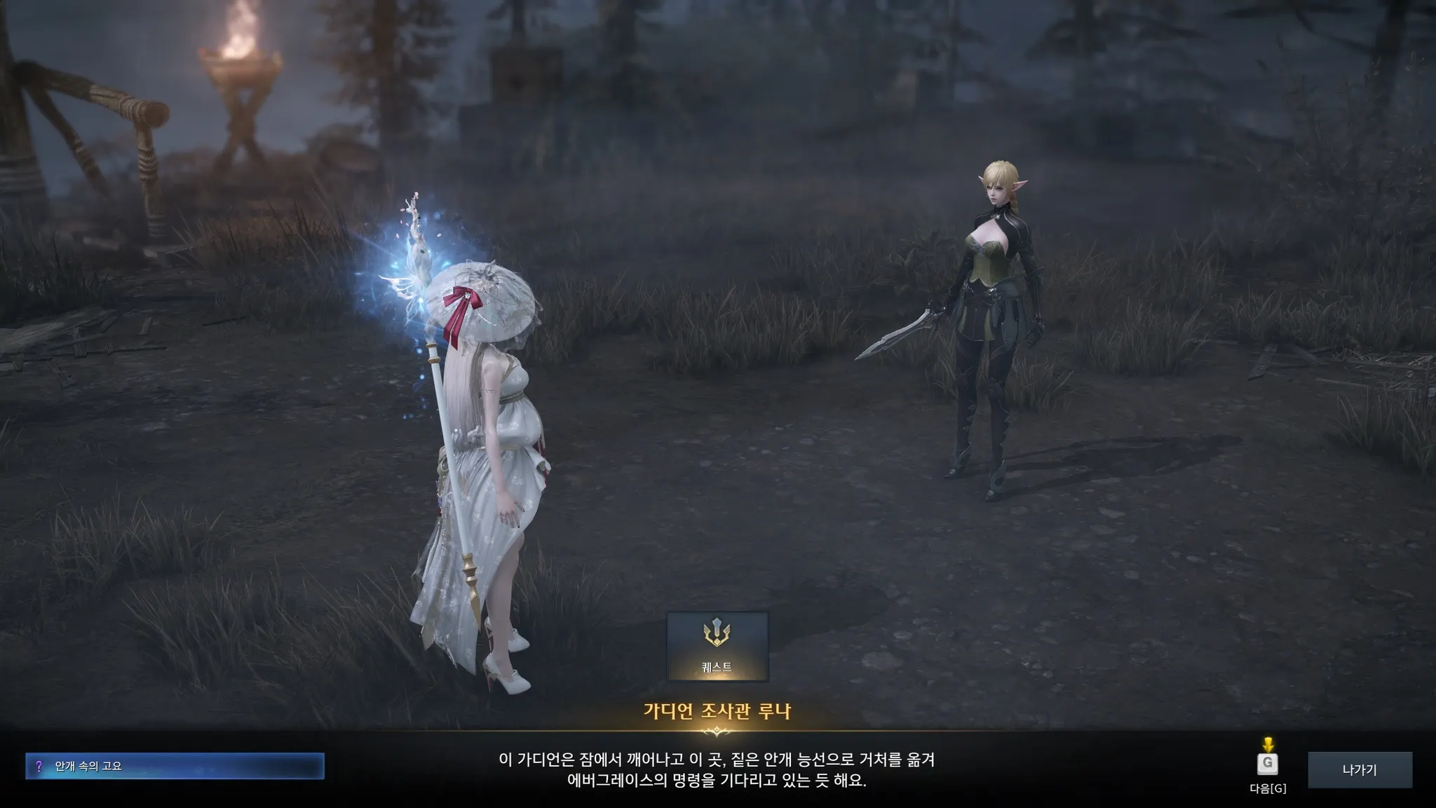 짙은 안개 능선에 가면 가디언 조사관 루나가 가디언에 대해 강의해준다.