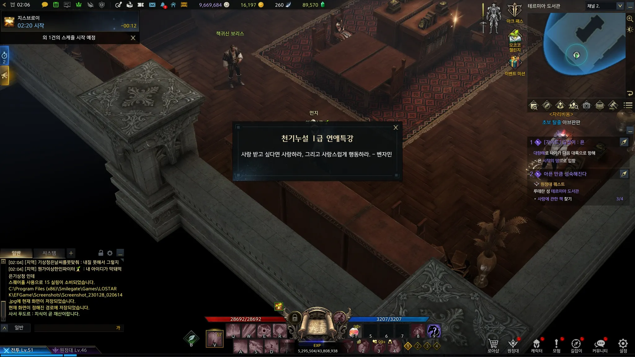 헨리를 위해 테르미아 도서관에서 사랑에 관한 책 찾는 중ㅎㅎㅎㅎㅎㅎㅎ 평소에 내가 좋아하는 말을 여기에서 보다니! 괜히 반갑고 괜히 기분이 좋다 헨리한테 책 가져다주면 퀘스트 끝! 옆을 보니 짝꿍이 거의 눈을 반만 뜨고 꾸벅꾸벅 졸고 있어섴ㅋㅋㅋㅋ 오늘은 여기에서 끝! 내일은 꼭 욘에 가보자!
