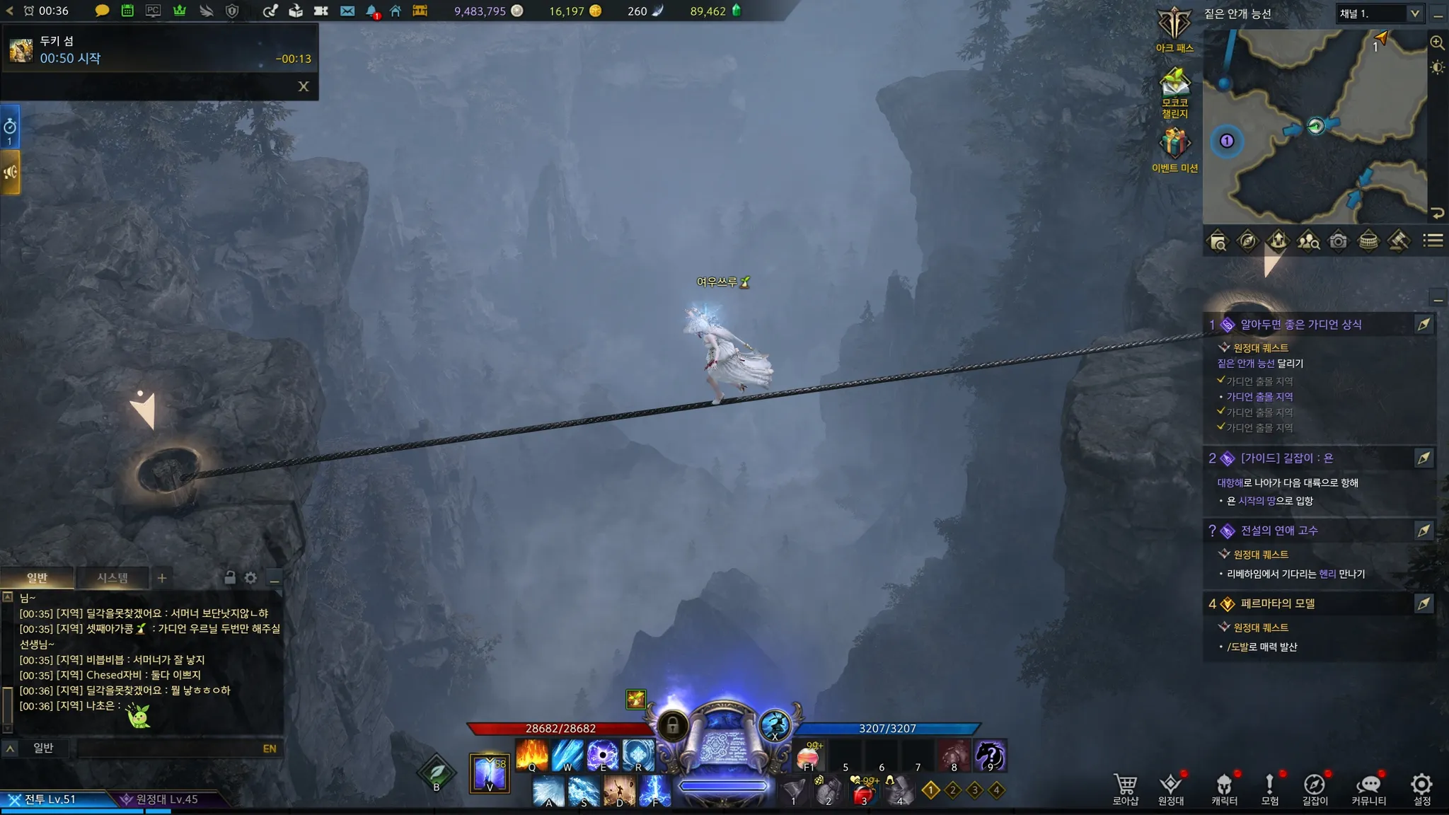 오늘 한 맵 : 짙은 안개 능선  바다의 요람 페르마타  유디르  루테란  리베하임