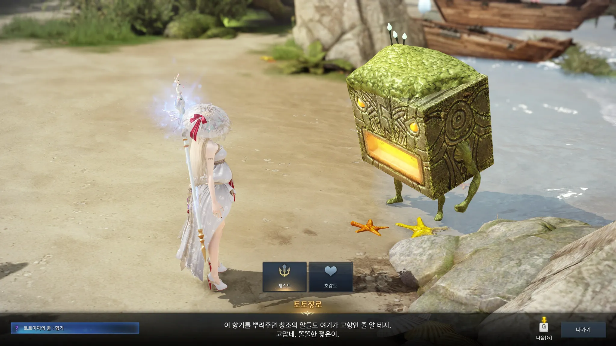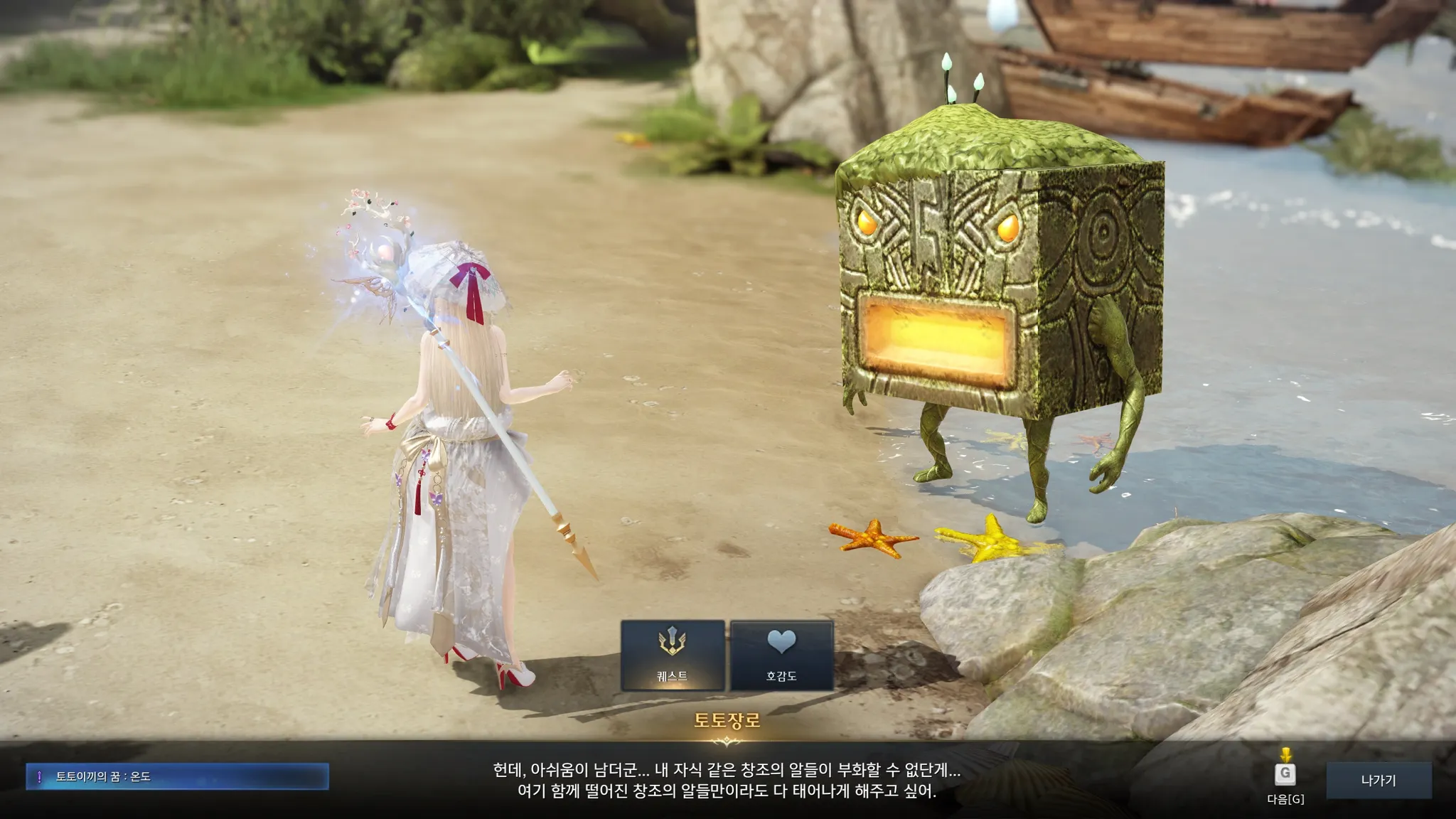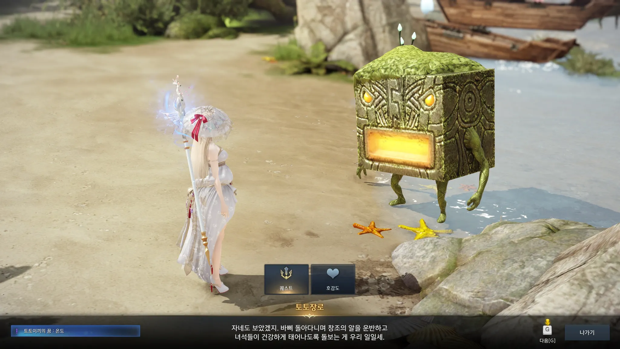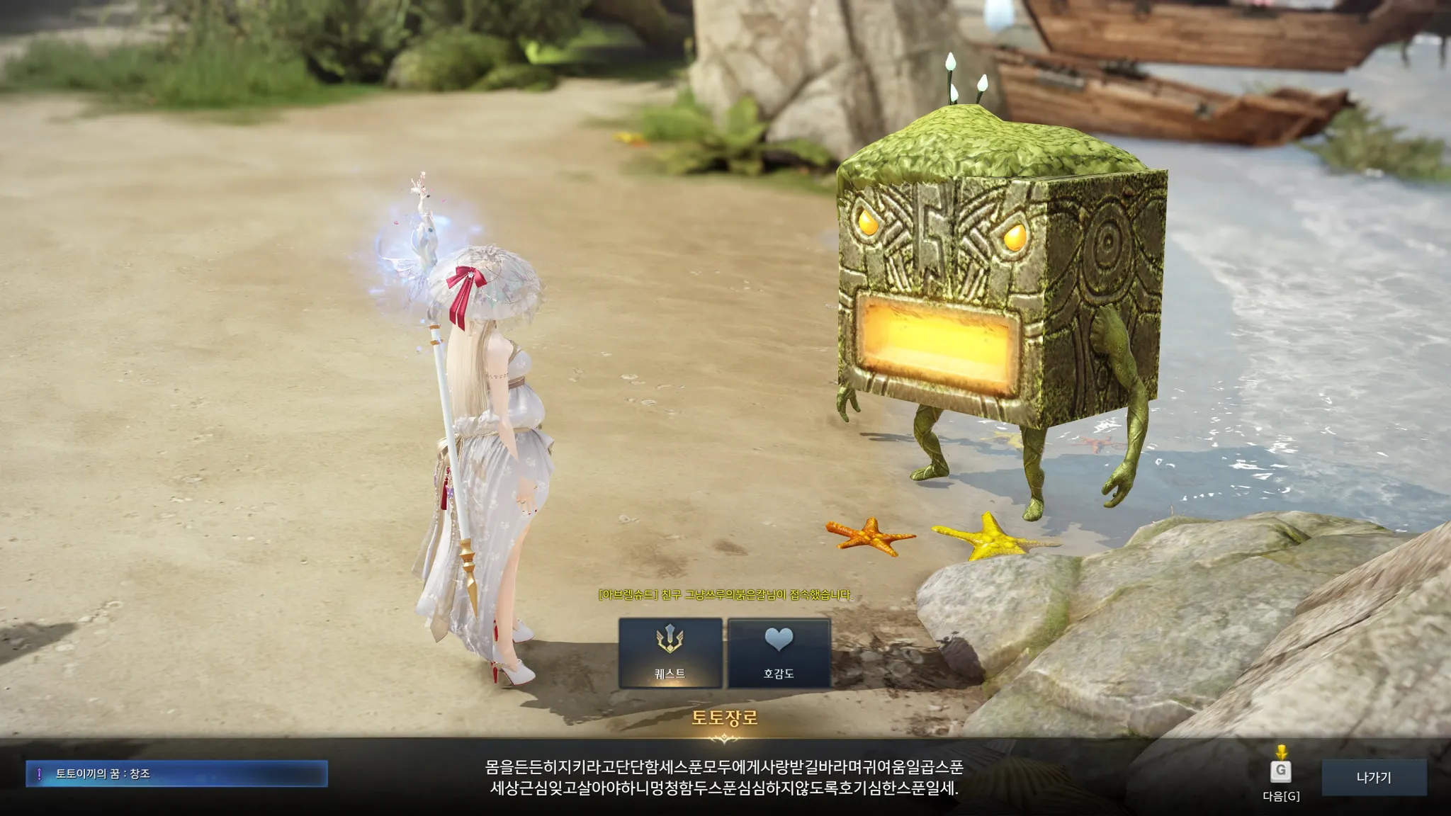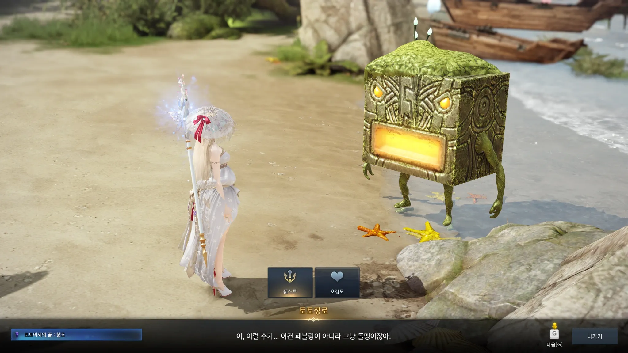 토토실버 섬에 놀러가봤는데 퀘스트가! 짠! 예전에 토토이크 대륙 마치고, 토토실버 섬 구경 왔을 때 얘네는 왜 여기에 있지?했었는데! 원래는 토토이크 몸 속에 살았었구나.