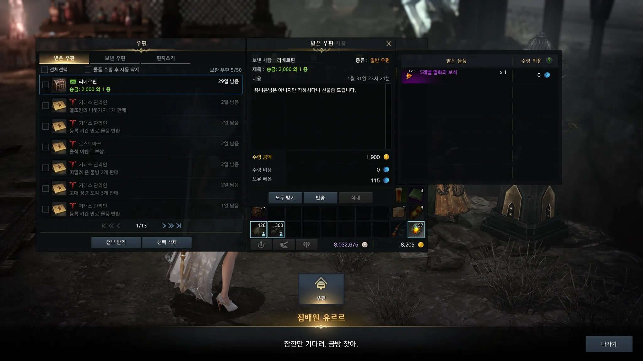 그리고! 욘 클리어해서 받은 장비 상자 열어보고! 장착해보니!!!