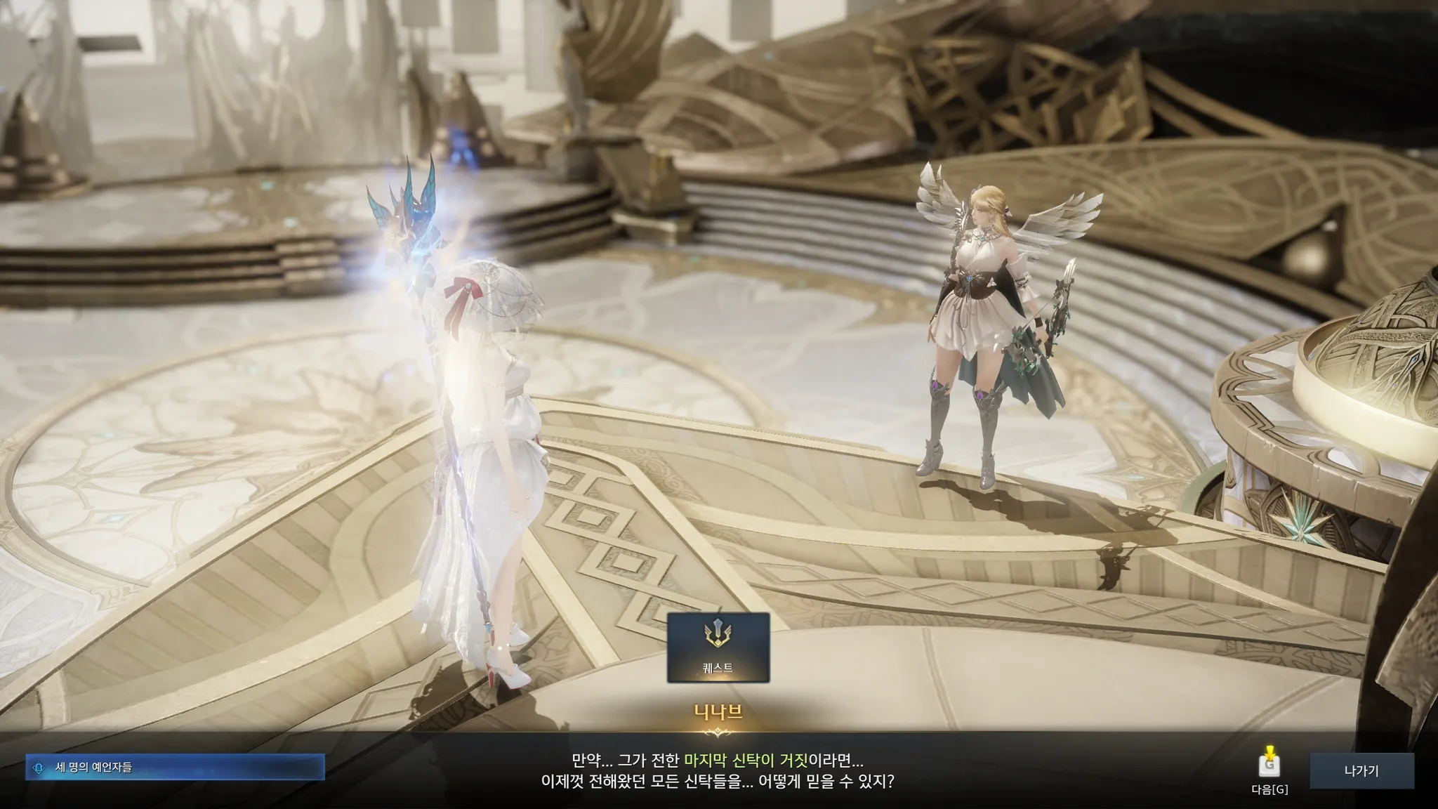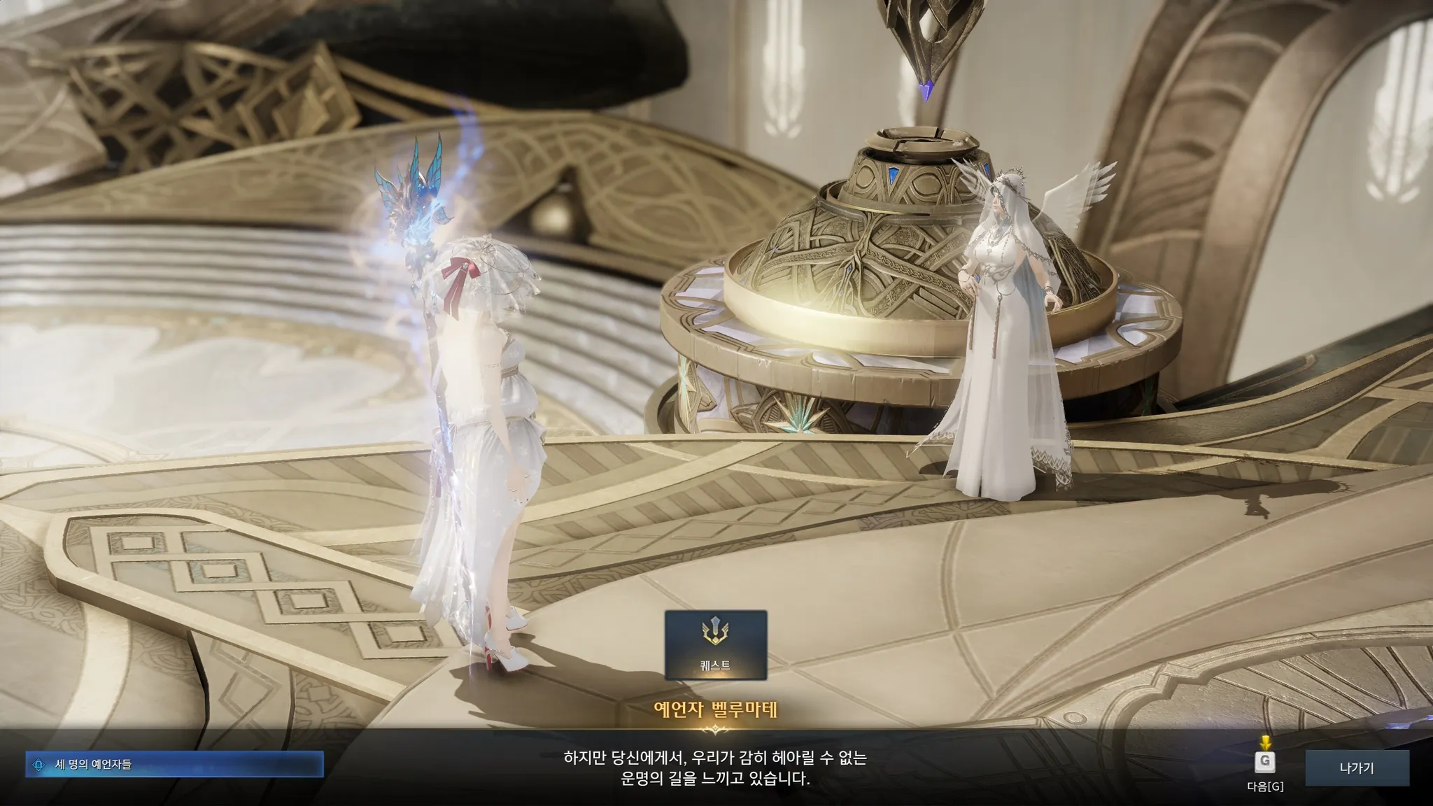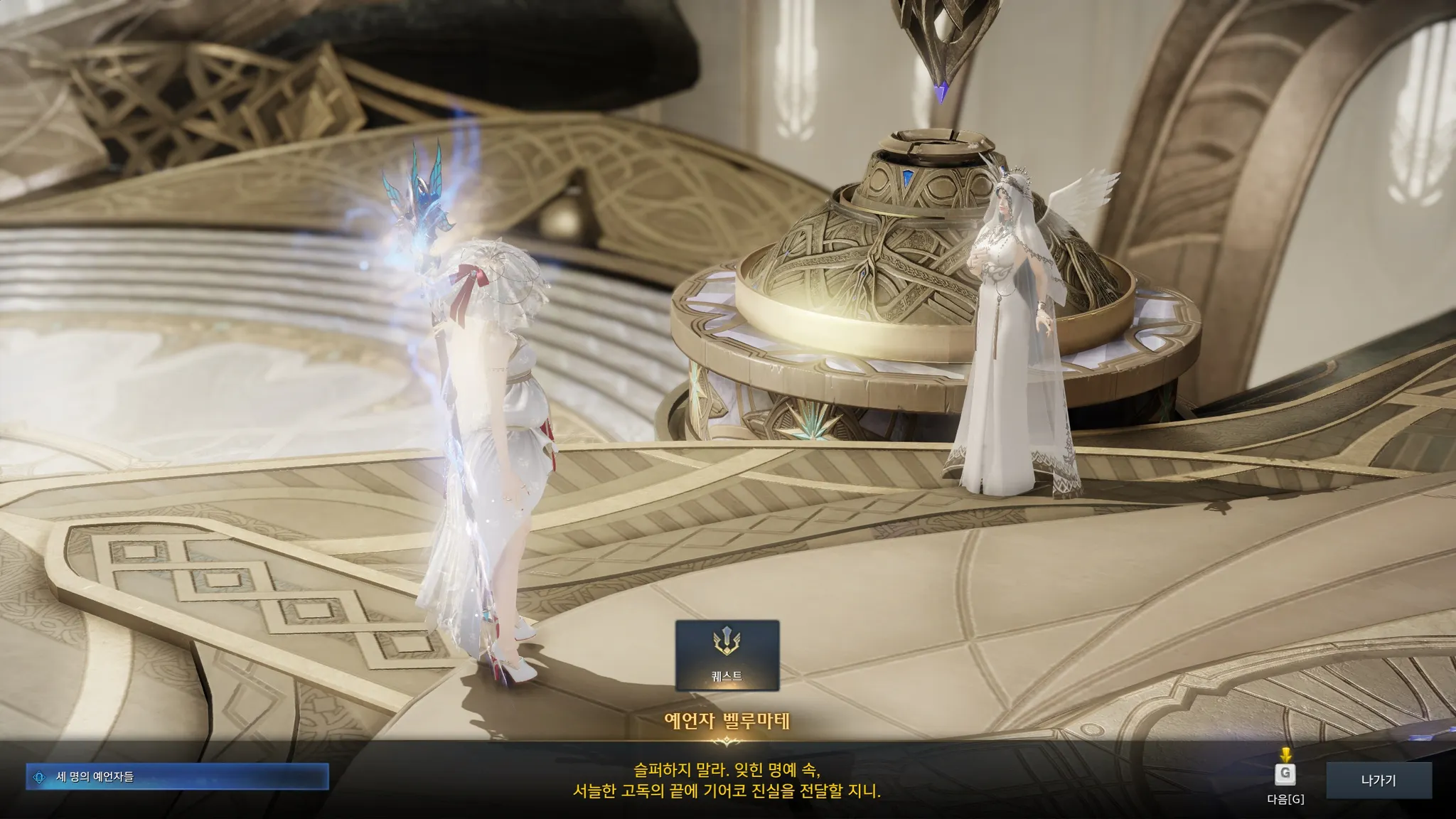 하지만 이상했던 점은, 신탁이 내려오는 물레가 오랜 세월 움직이지 않은 듯 먼지가 쌓여있던 것. 심지어는 거짓된 운명이 시작된 그 날부터 움직이지 않았다고 말하는 예언자 벨루마테. 그럼 도대체 검의 원탁에서 라우리엘이 보여준 신탁은 뭐지,,? 내 이럴 줄 알았어 라우리엘놈아.