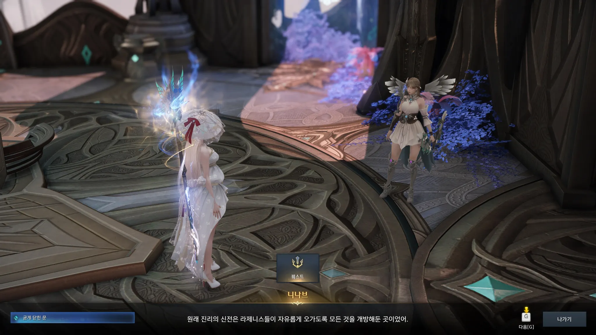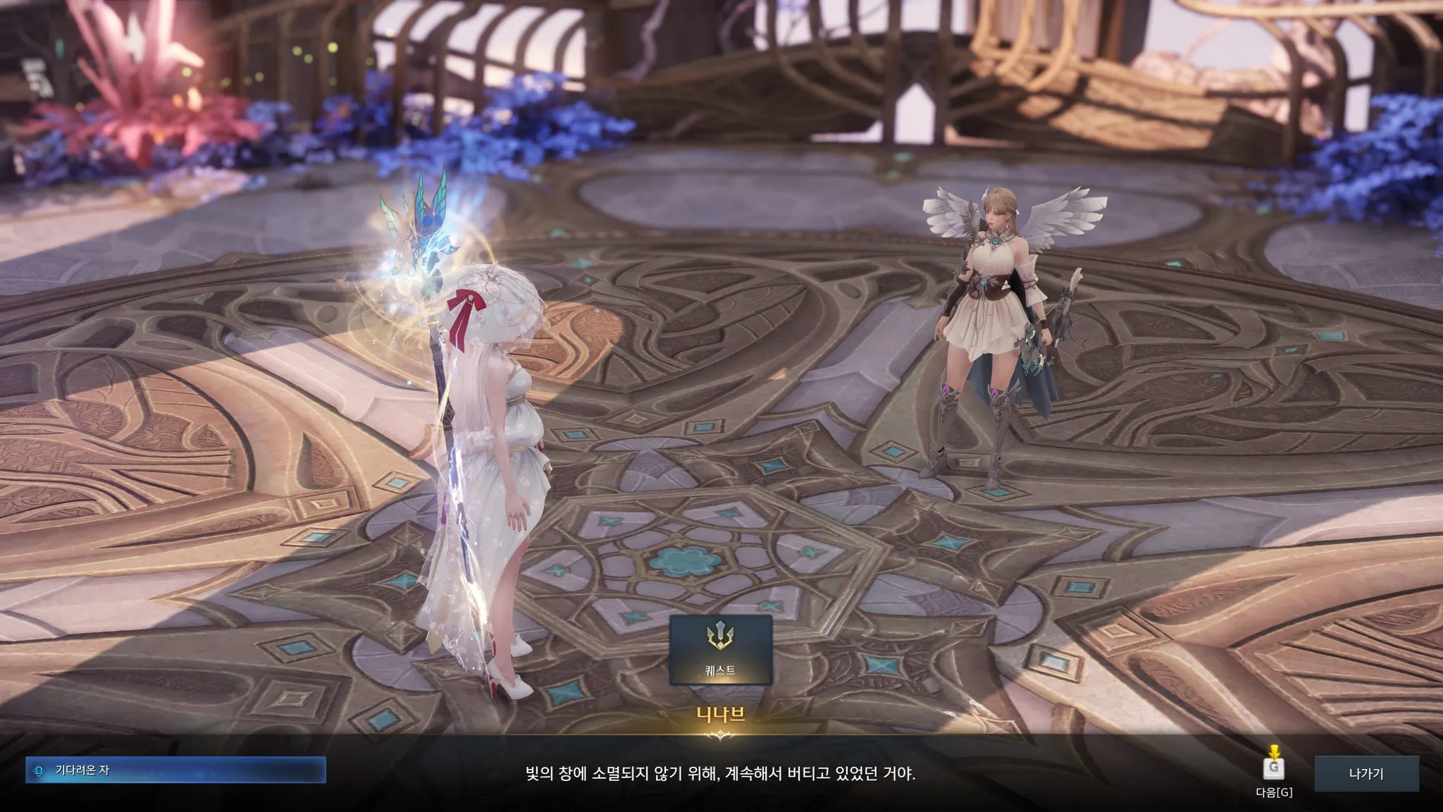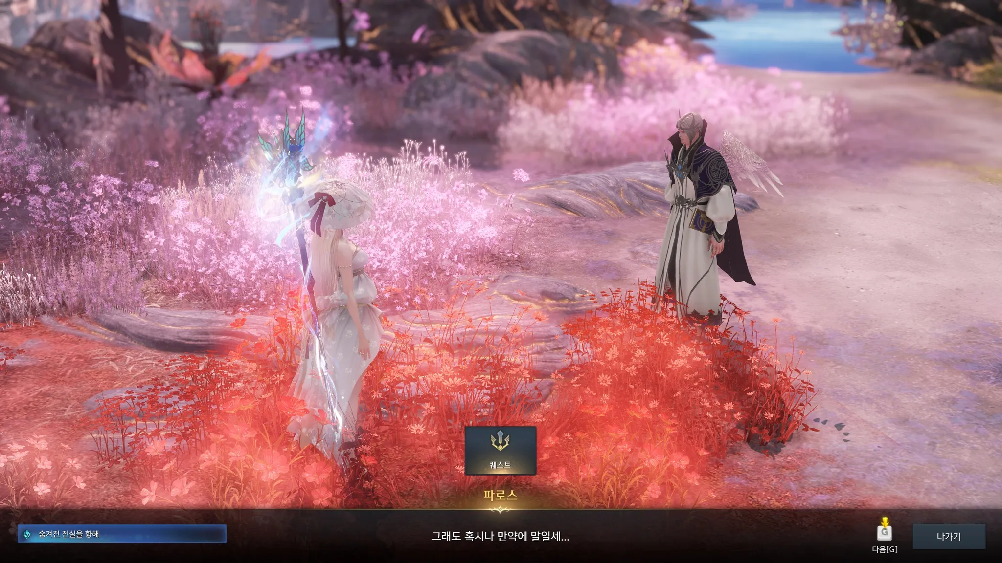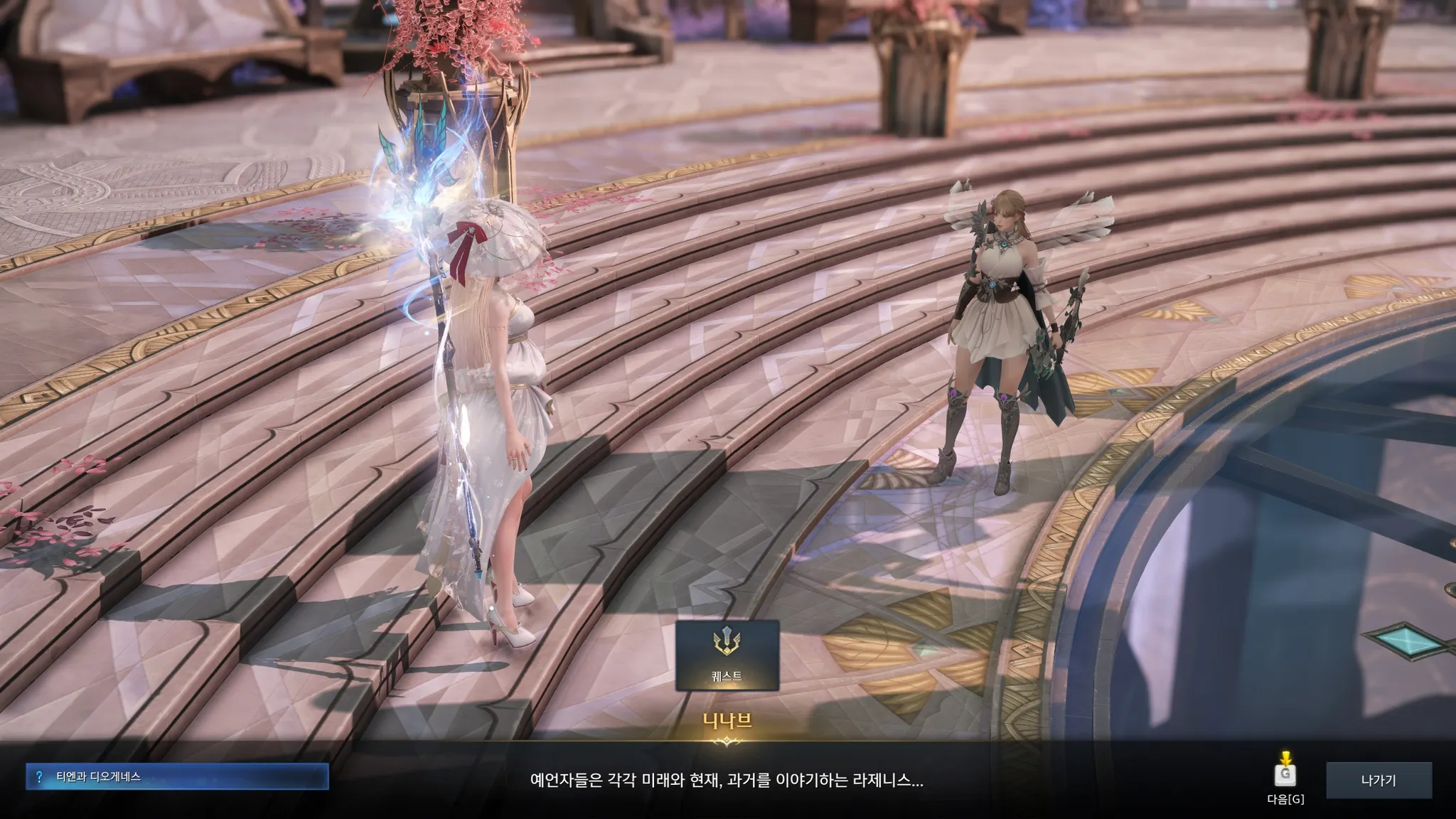 너무 예쁘고 평화로웠던 첫 인상과는 달리 뭔가 모종의 계획이 꾸며져가고 있는 것만 같은 엘가시아의 스토리. 점점 의심만 커져가는 라우리엘. 우선 니나브와 헤스테라 정원으로 가보았다.