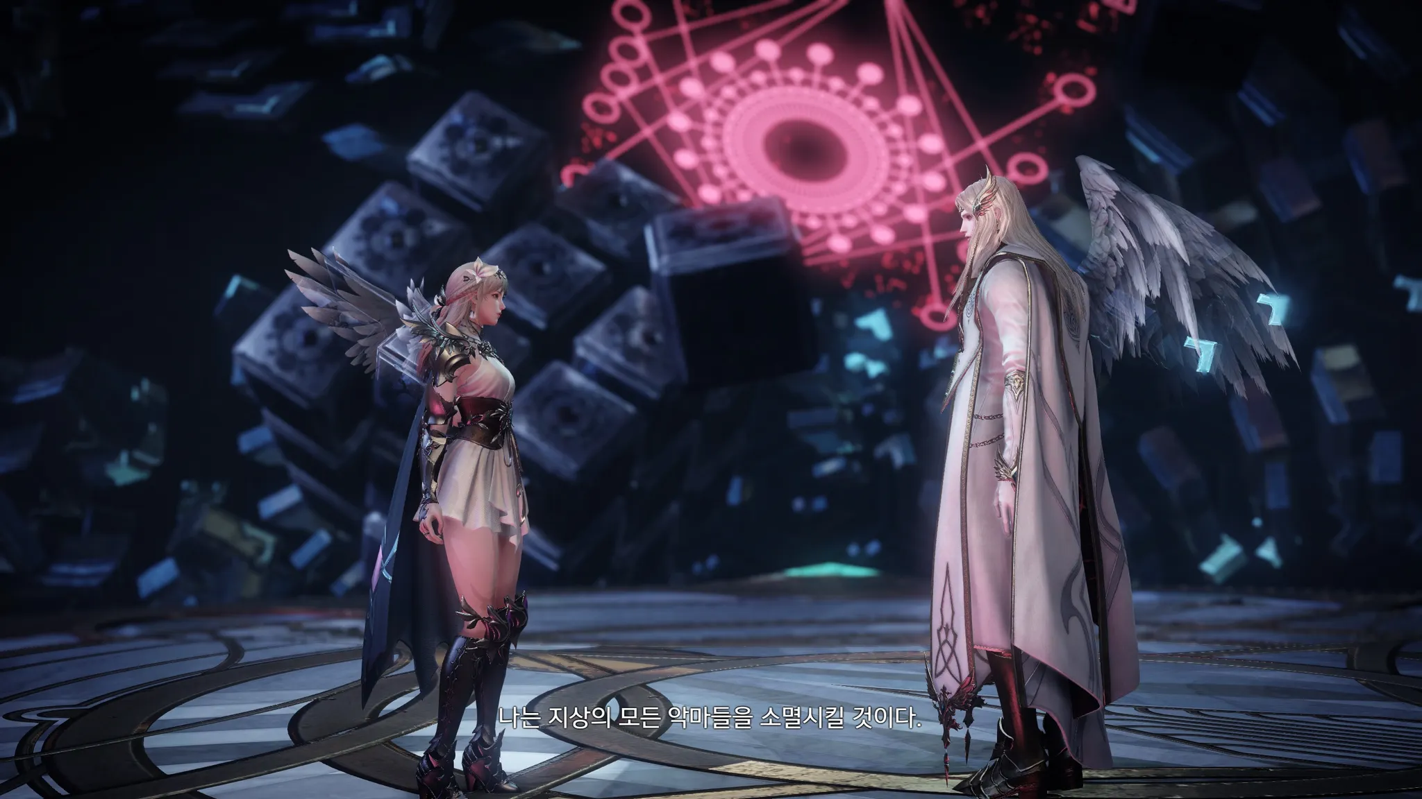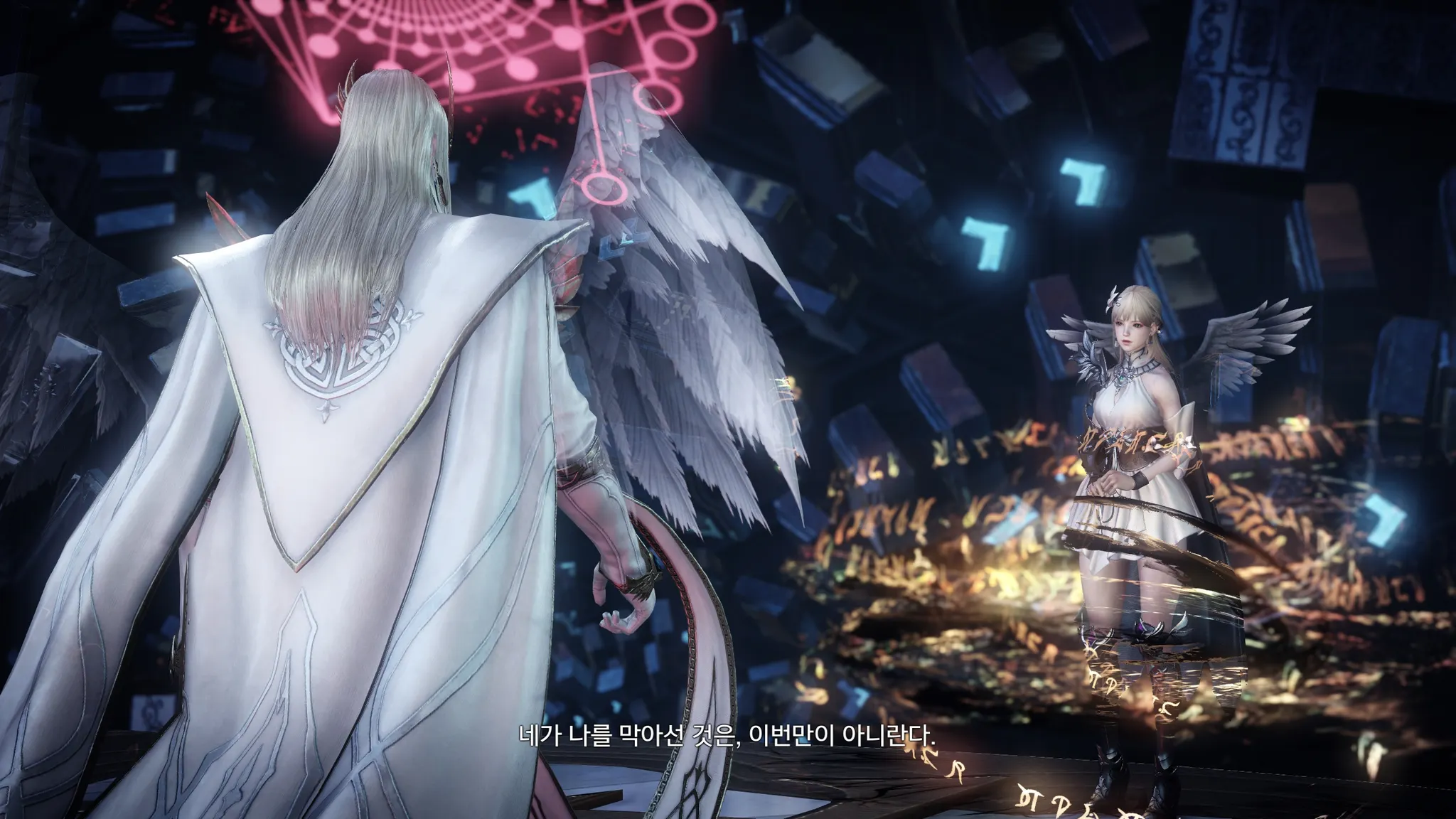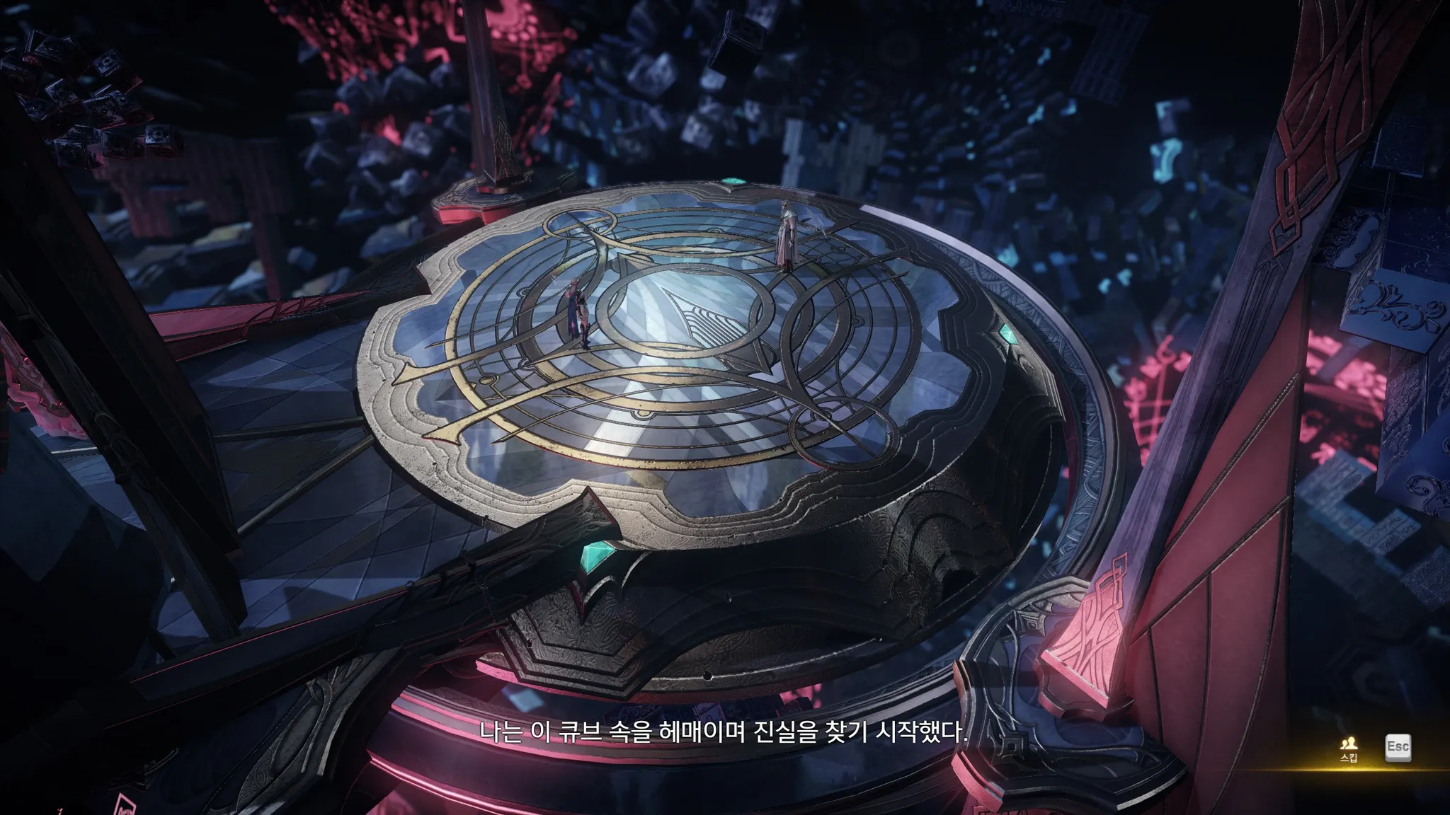어,,? 여기는,,…? 라우리엘이 카마인을 만났던 바로 그 공간. 할의 오래된 유산이라고 한다. 시공간을 넘나드는 곳이며 할은 여기를 큐브라고 불렀다는 라우리엘.