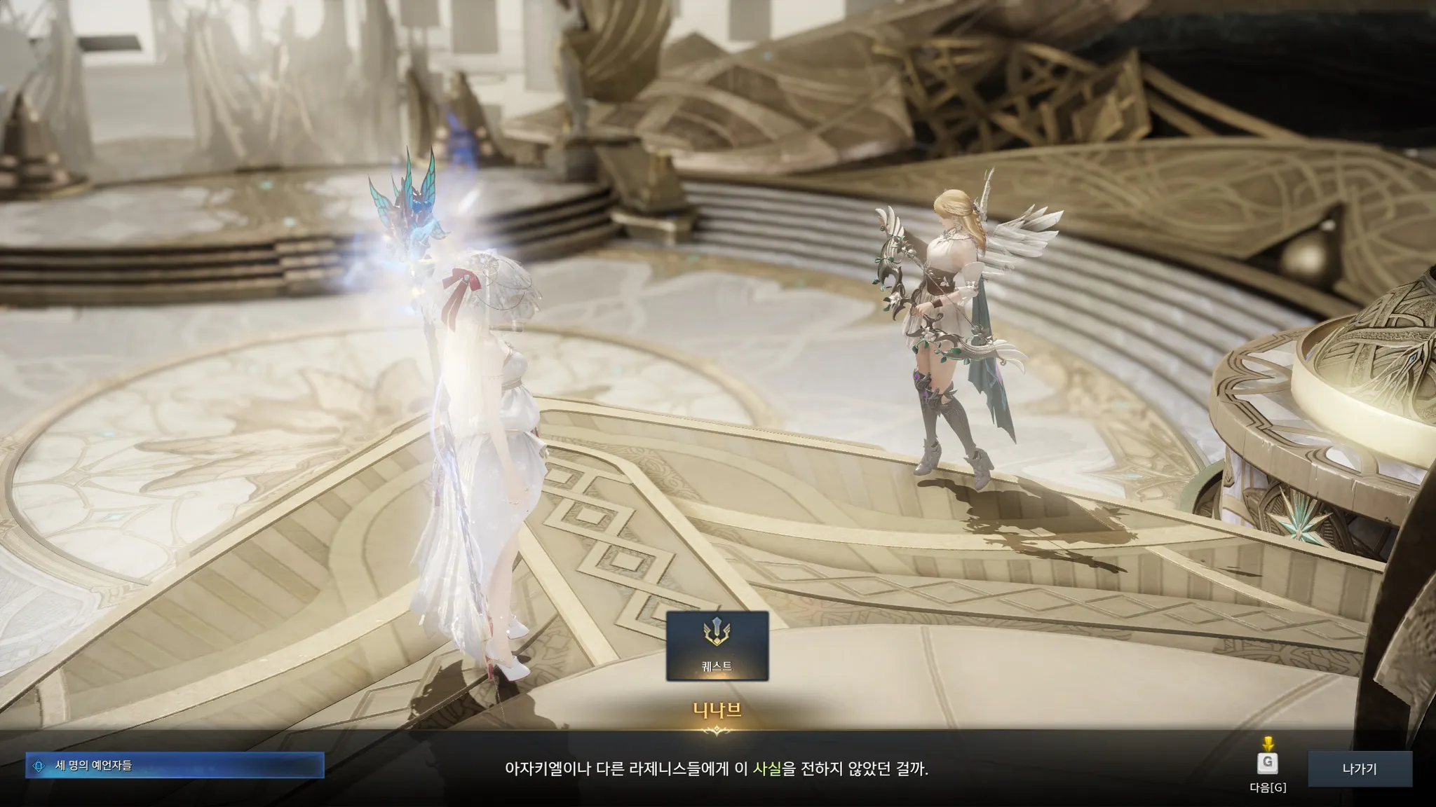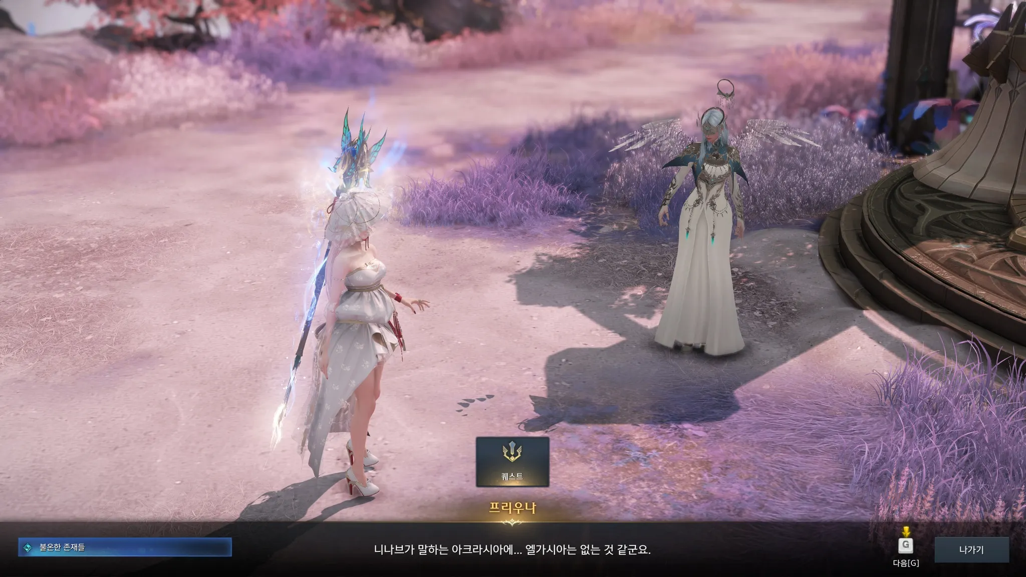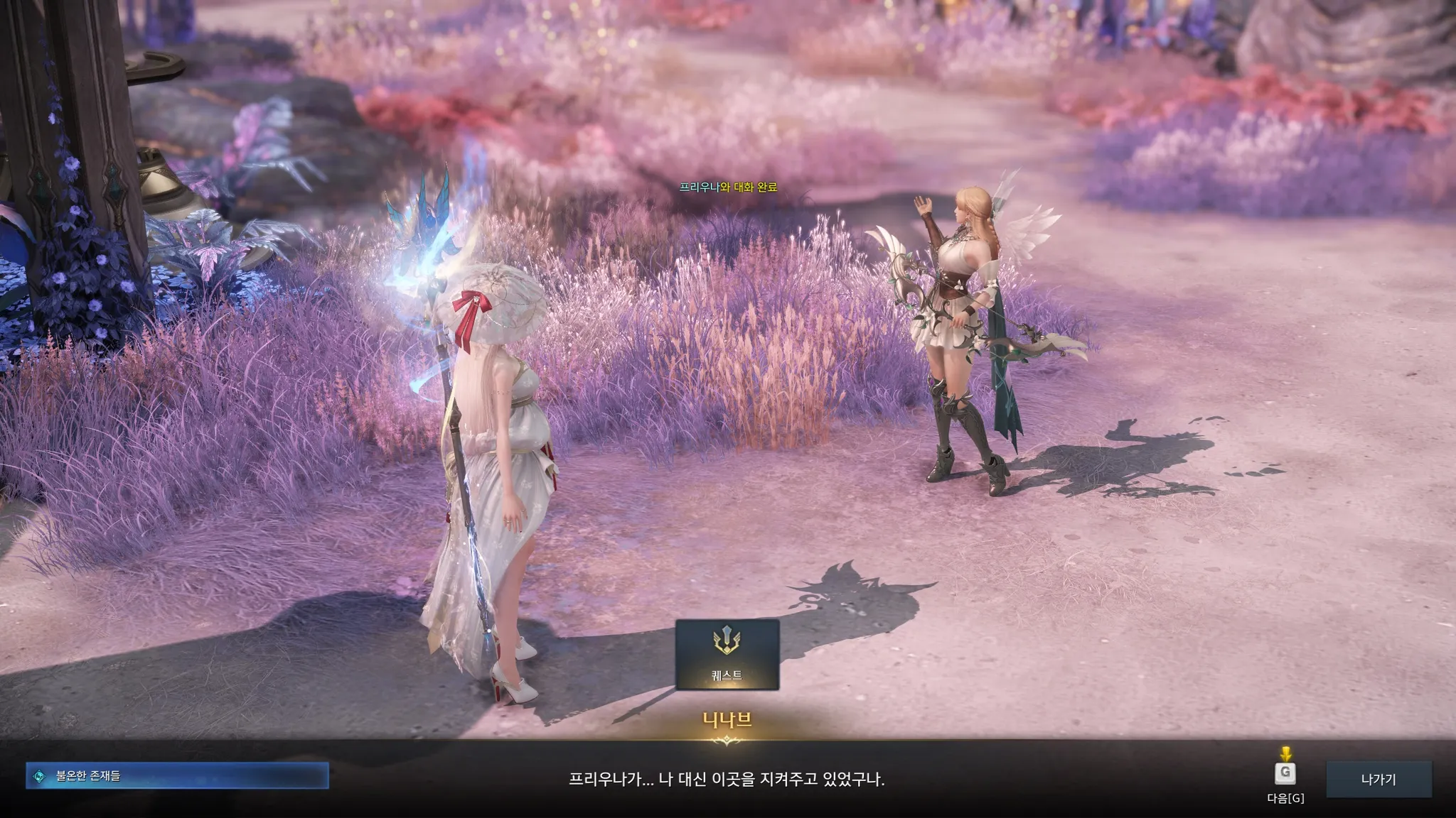 불온한 존재들이 라제니스를 위협할 때 니나브는 어디있었냐고 쏘아붙이는 프리우나. 흐으으으음 아무래도 자기들의 고향을 우선시하면 이해가 안 되지는 않는 것 같기도,,?