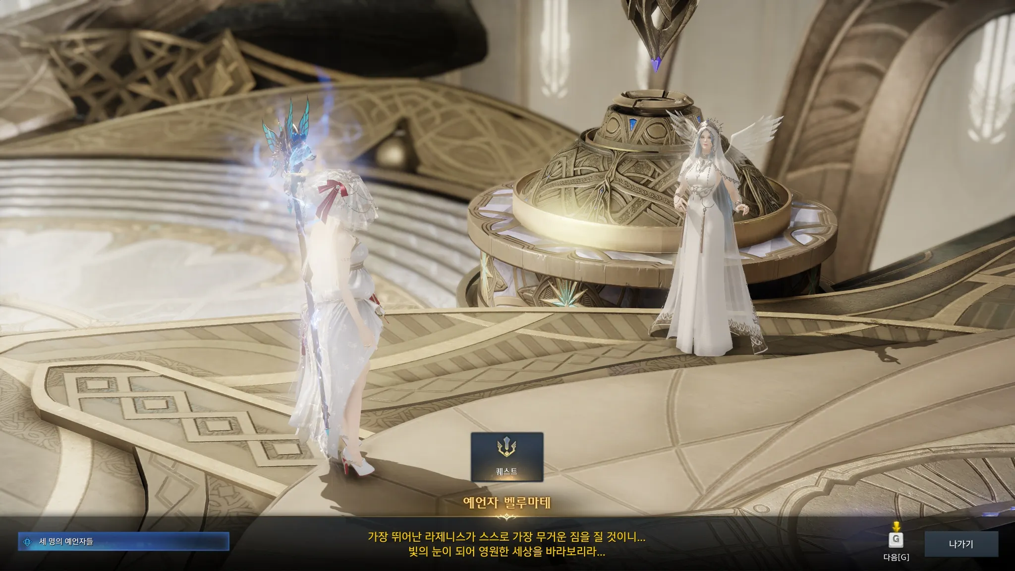 미래와 현재, 과거를 이야기하는 세 명의 라제니스가 바로 예언자들. 신의 목소리를 빛의 실로 엮어 신탁을 전하는 역할이라고 한다.