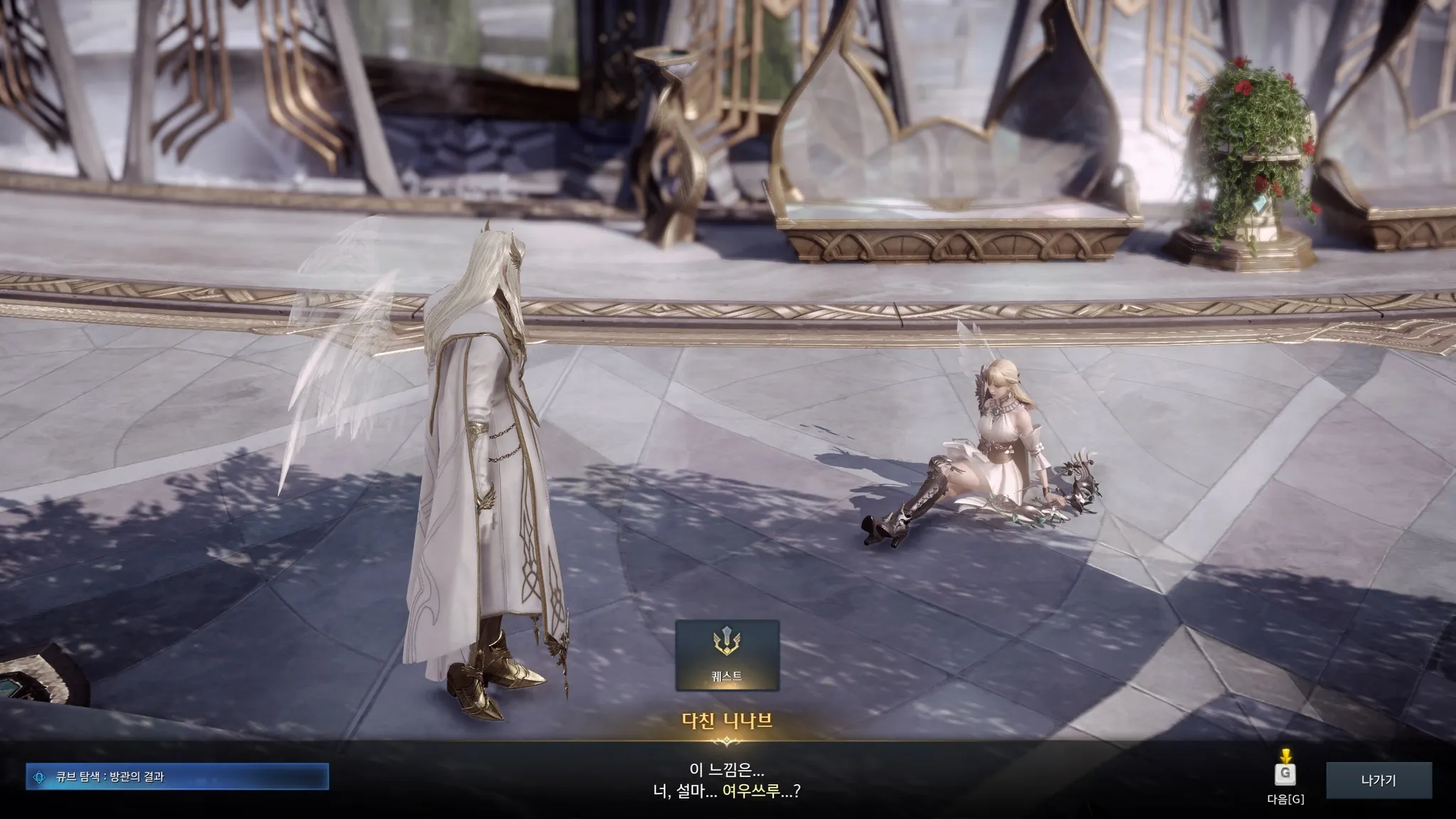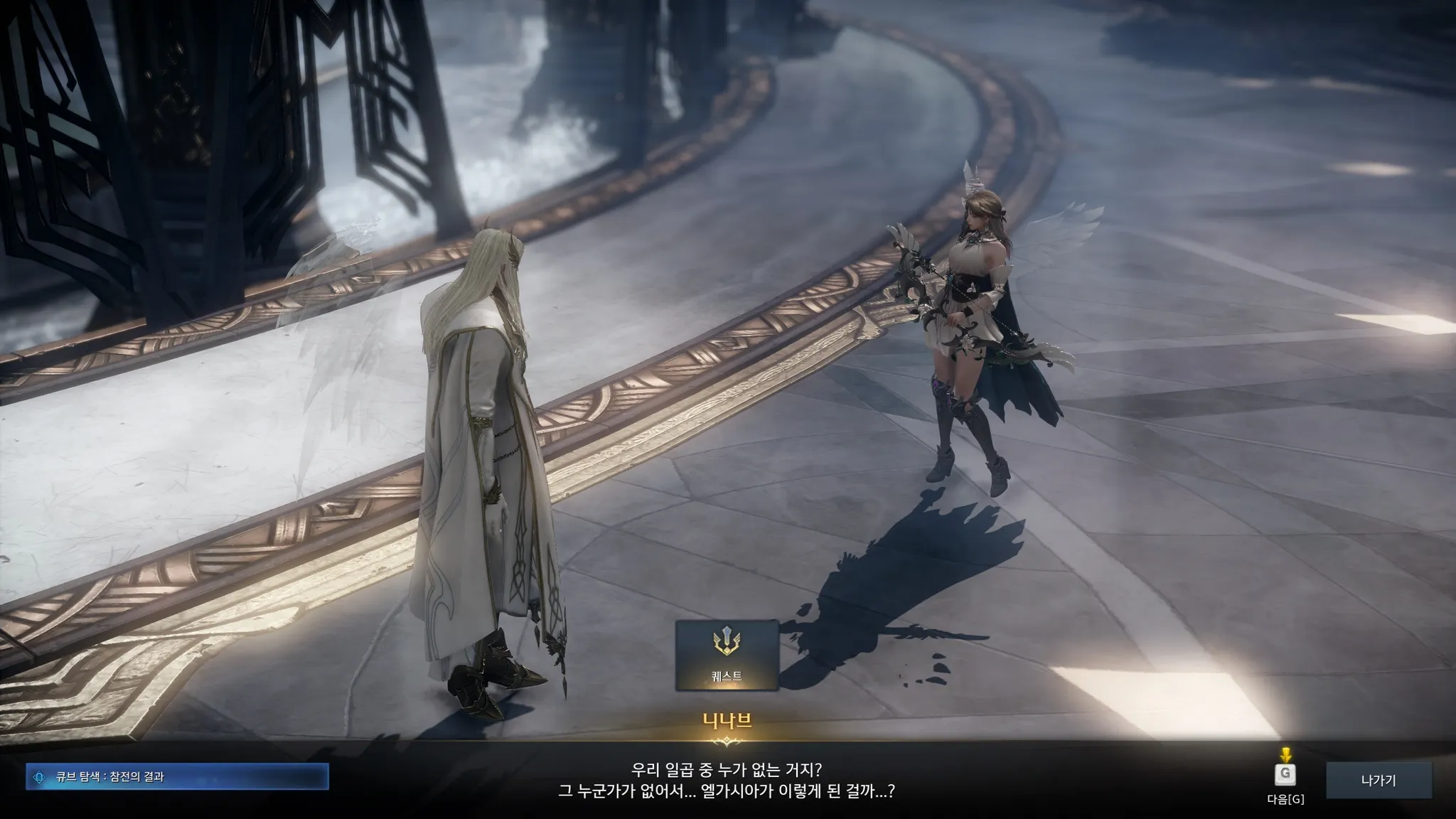 라우리엘에게 공격받고 추락하는 니나브를 따라 간 나. 너무 평화롭기만 한 엘가시아의 모습이 뭔가 가식적으로 느껴지긴 했으나 이런 스토리일 줄이야..!