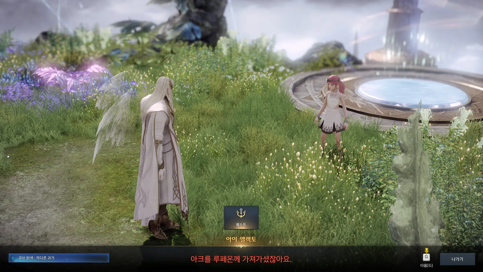 악! 나 여기에서 소름돋음 갑자기 커다란 빨간 글씨로 떠서 깜짝 놀라고 소름돋게 하려는 의도였다면 성공하셨습니다 기획자님들 어쨌든 라우리엘은 아크를 루페온에게 가져갔다는데…….