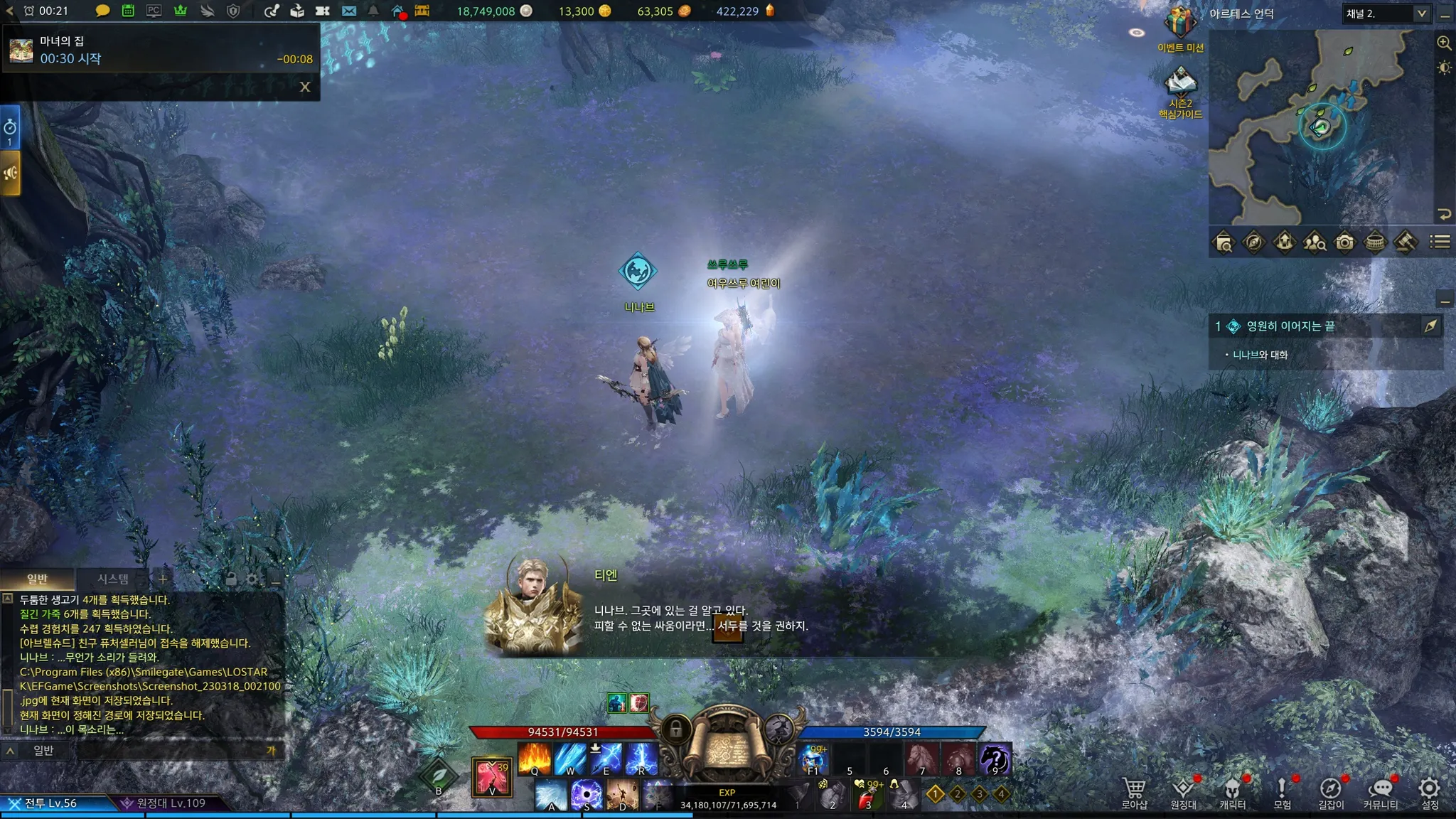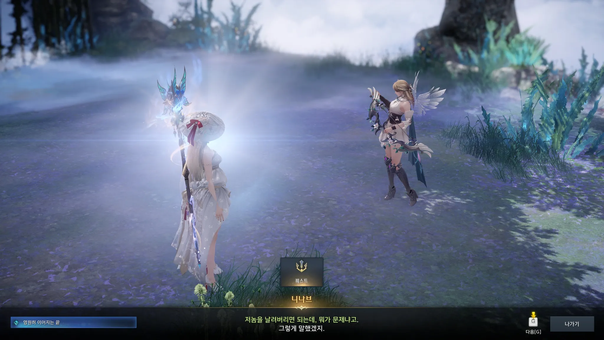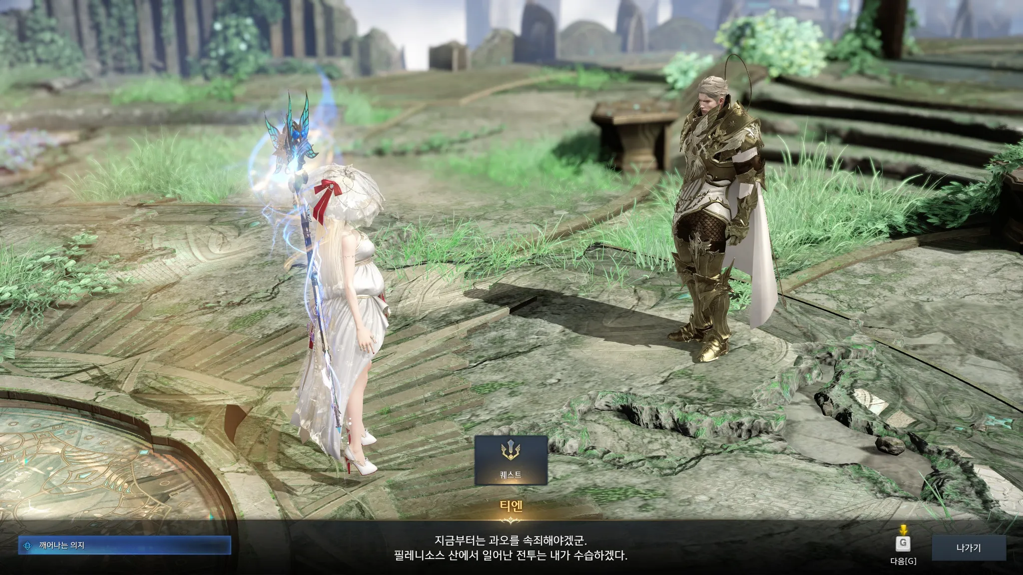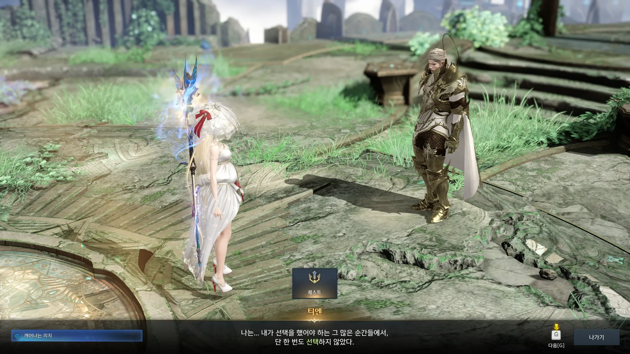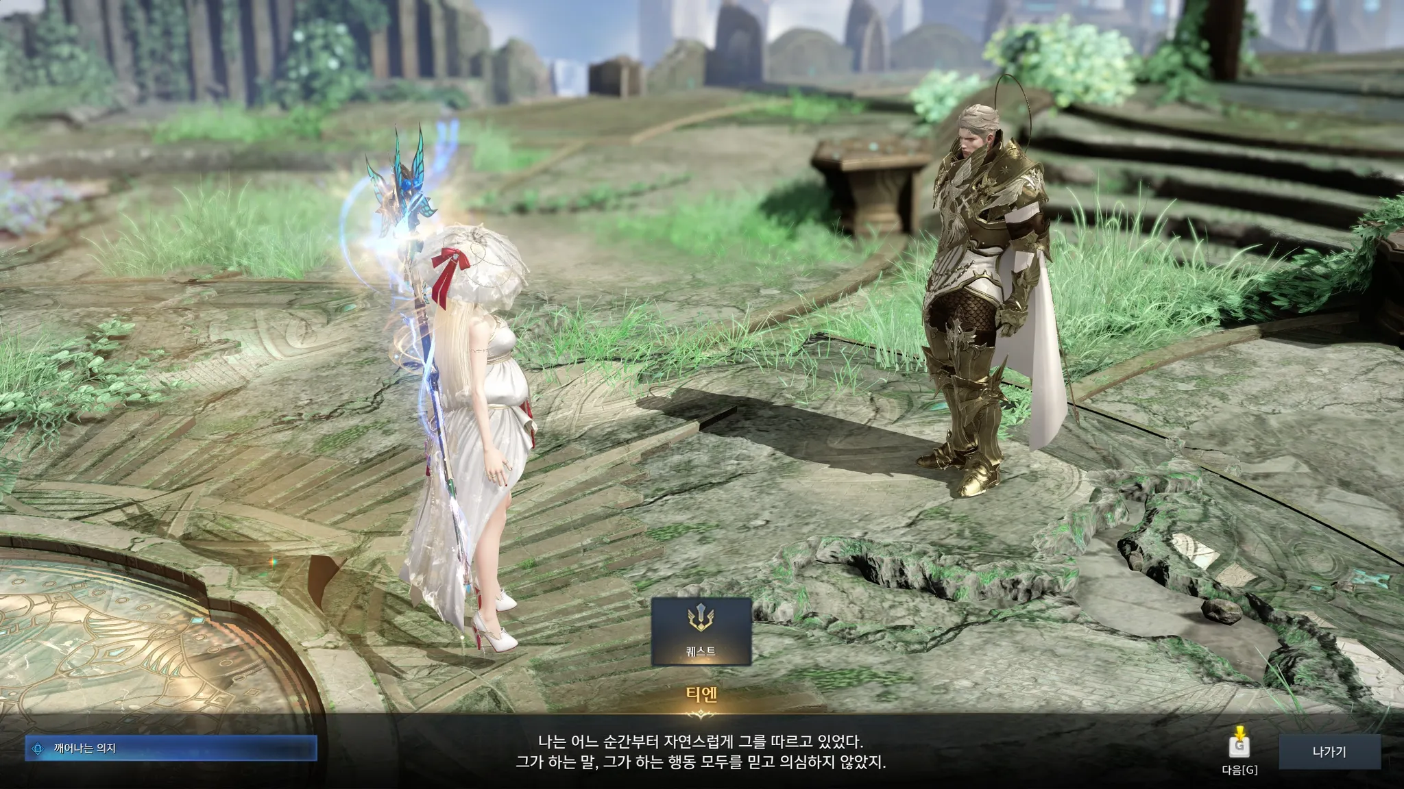 아자키엘에게 뒤를 맡기고 떠난 나와 니나브. 티엔이 우리를 막아서려는 듯 하다.