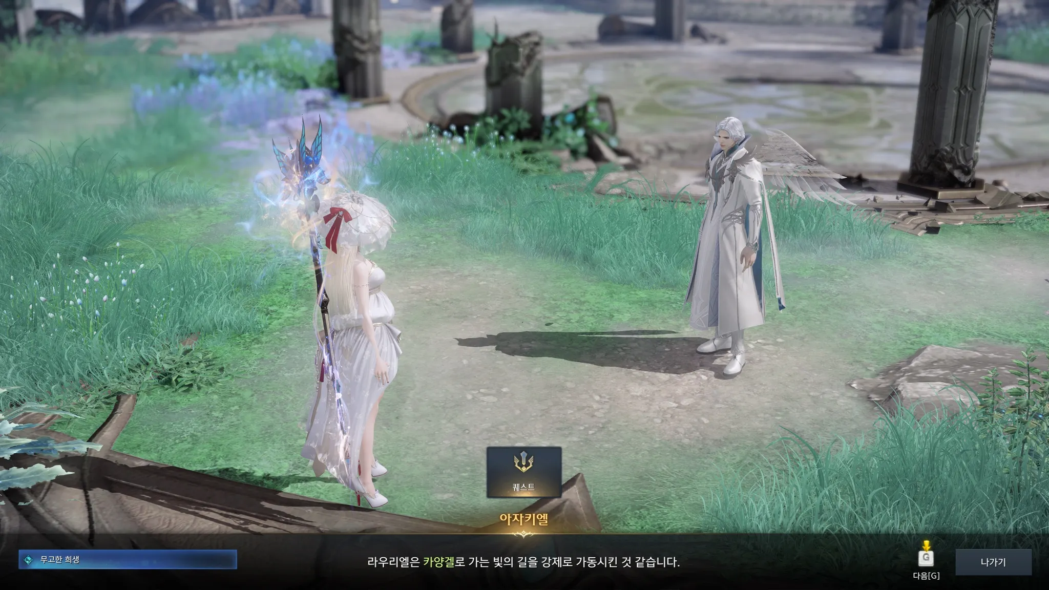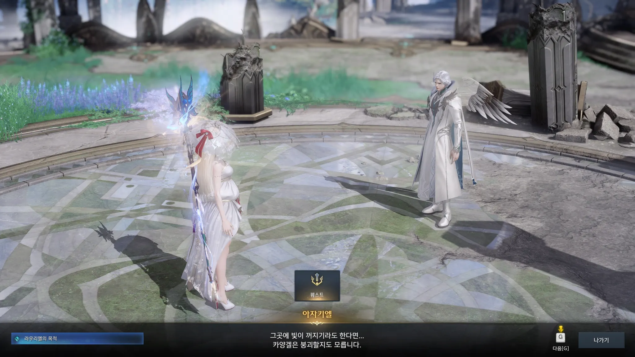 아크라시아를 정화하는 과정에서 수많은 종족들이 사라질 것을 알고 있는 라우리엘과는 다르게 어떻게든 마찰을 피하려는 나와 니나브, 아자키엘을 봐왔던 것.