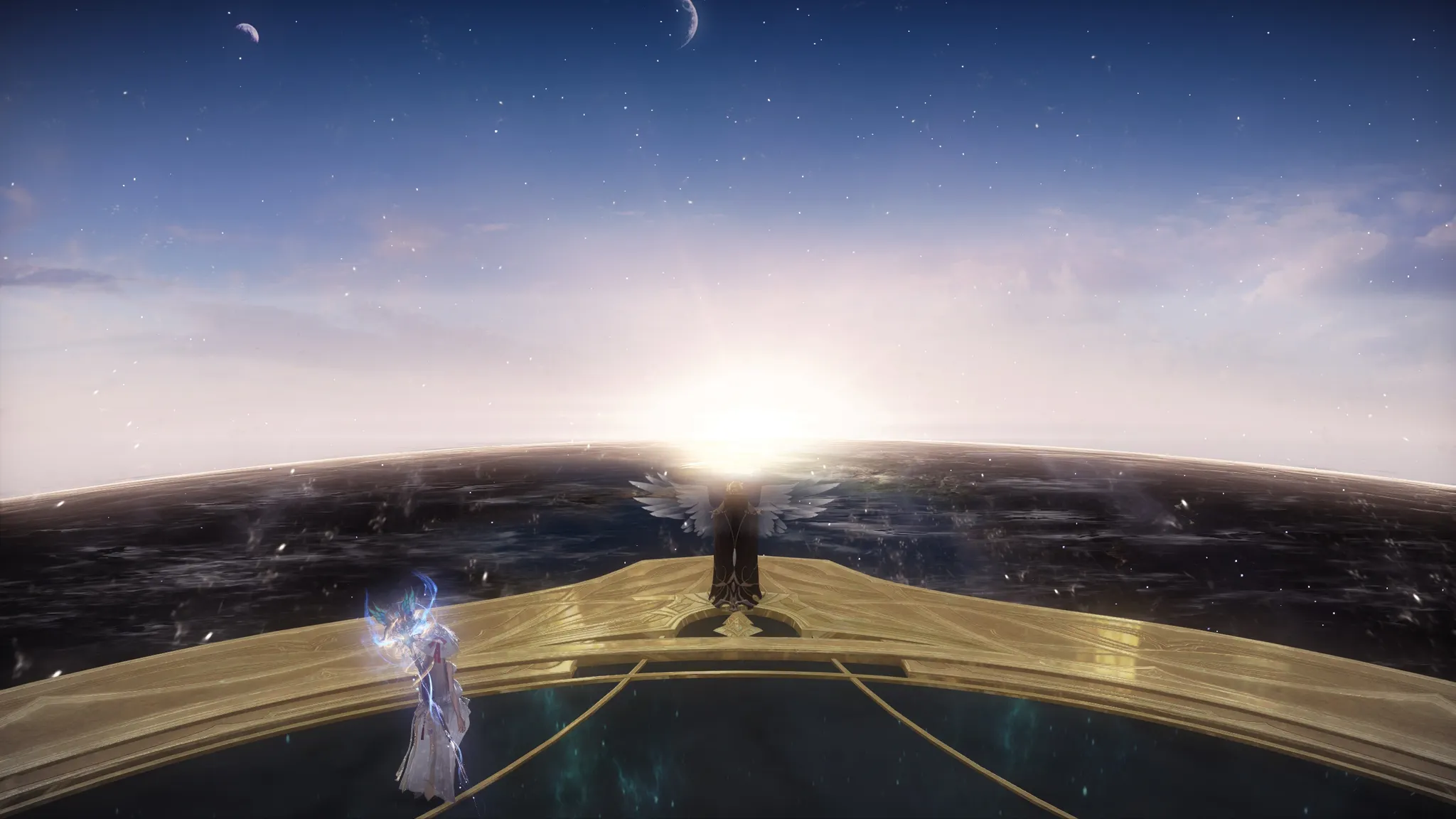 트리시온은 주시자가 머무는 세상의 끝이자 아크를 사용할 계승자를 위하여 준비된 곳이라고 하는 베아트리스. 저 말이 끝나자마자 저 멀리 지평선이 생겨나더니!