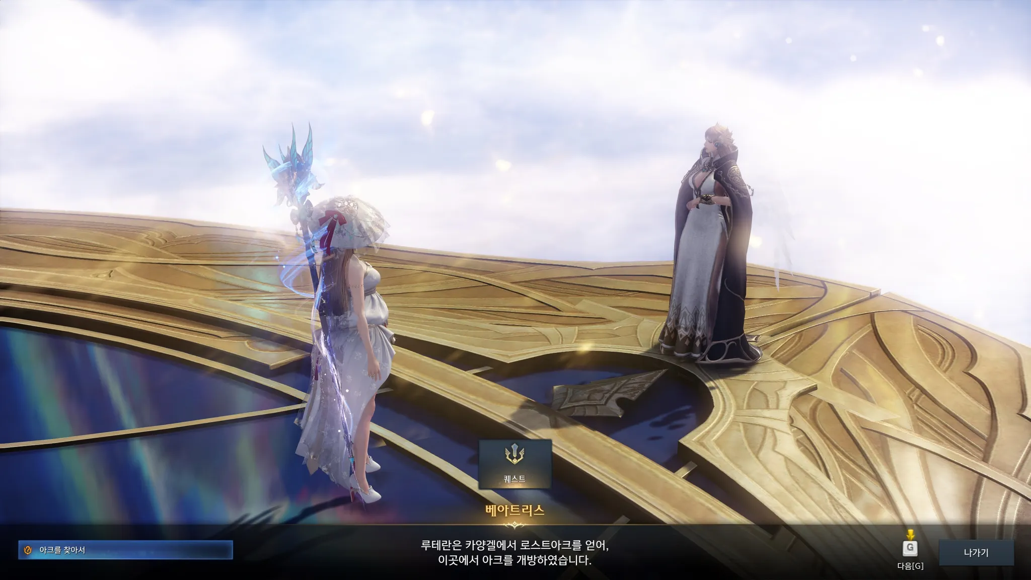 그리도 이어지는 베아트리스와의 대화. 과거 루테란은 트리시온에서 아크를 개방하였고, 그 이후로 로스트아크가 사라졌다고 한다.