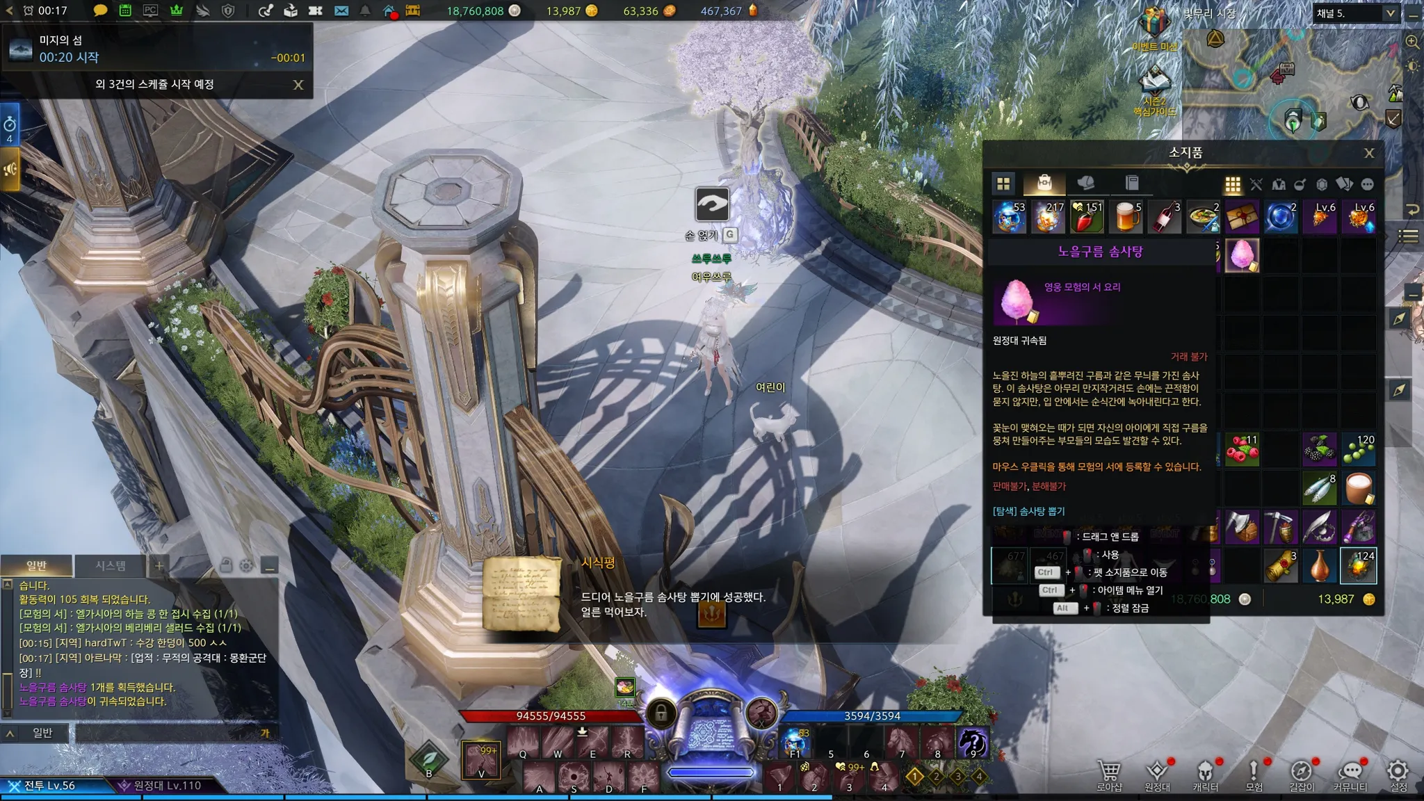 그리고 모험의 서 요리 하려고 하늘정원지기 잡는 중. 머리 위에 있는 꽃밭에 베리들이 나나보다. 아니 근데 나는 왜 파수꾼 잡으면 이렇게 죄책감이 드는걸까? 누구 아시는 분